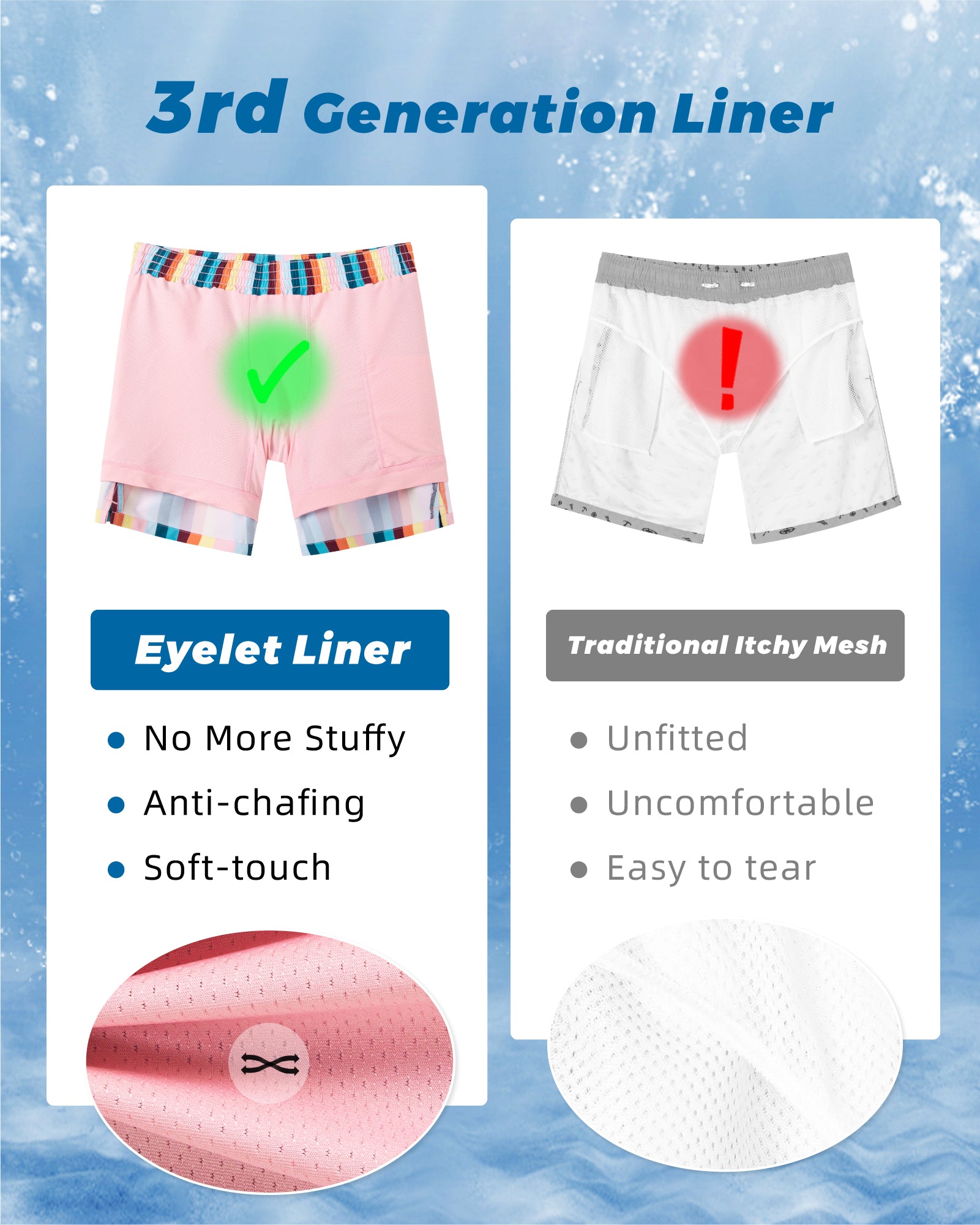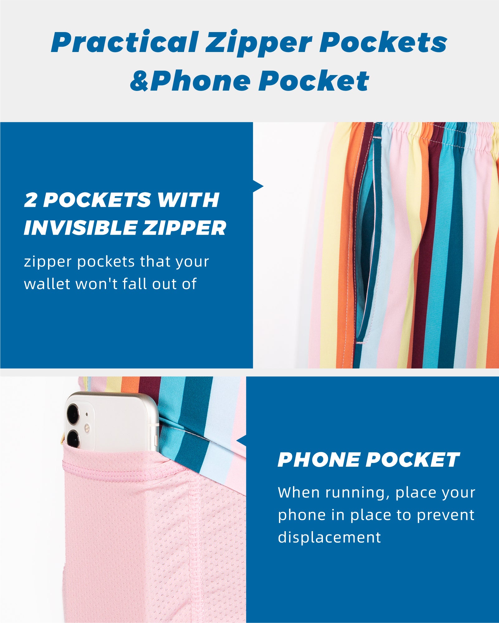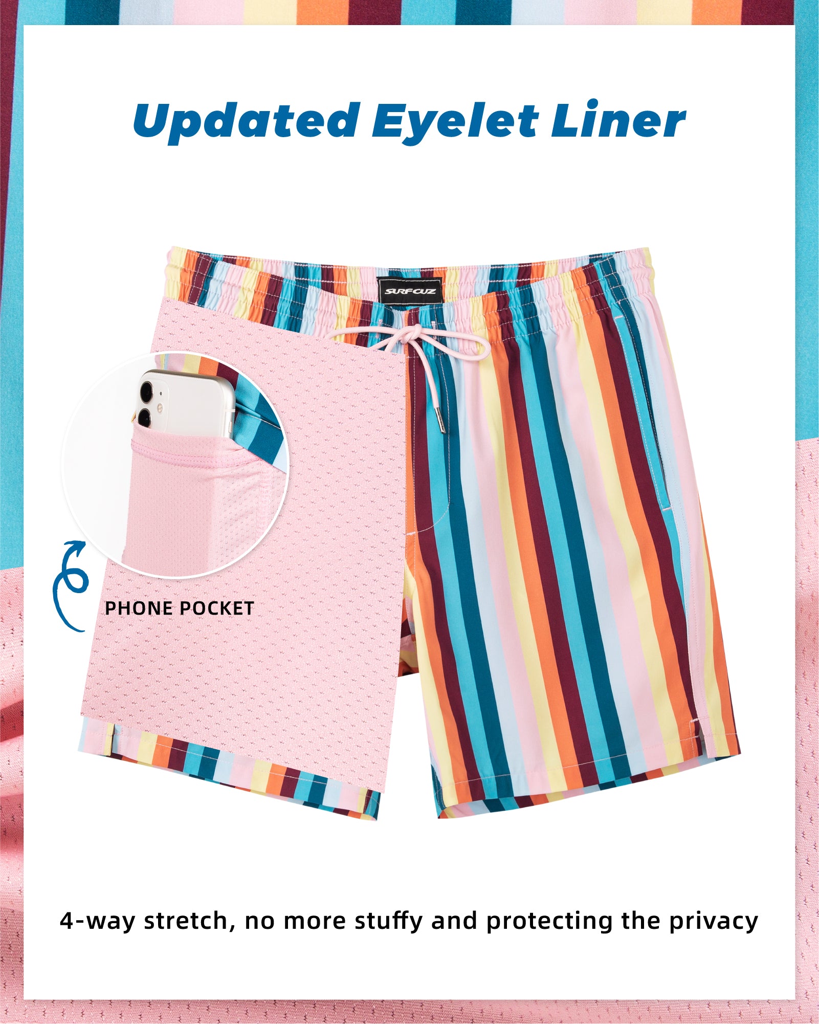 7 ‘’ 4 way Stretch 2 in 1 pink stripe print swim trunks