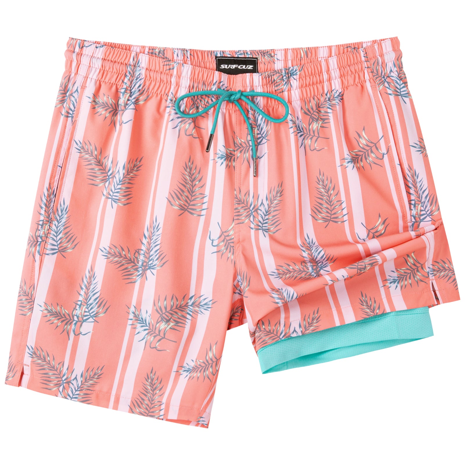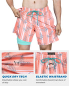 7 ‘’ 4 way Stretch 2 in 1 orange red stripe print swim trunks