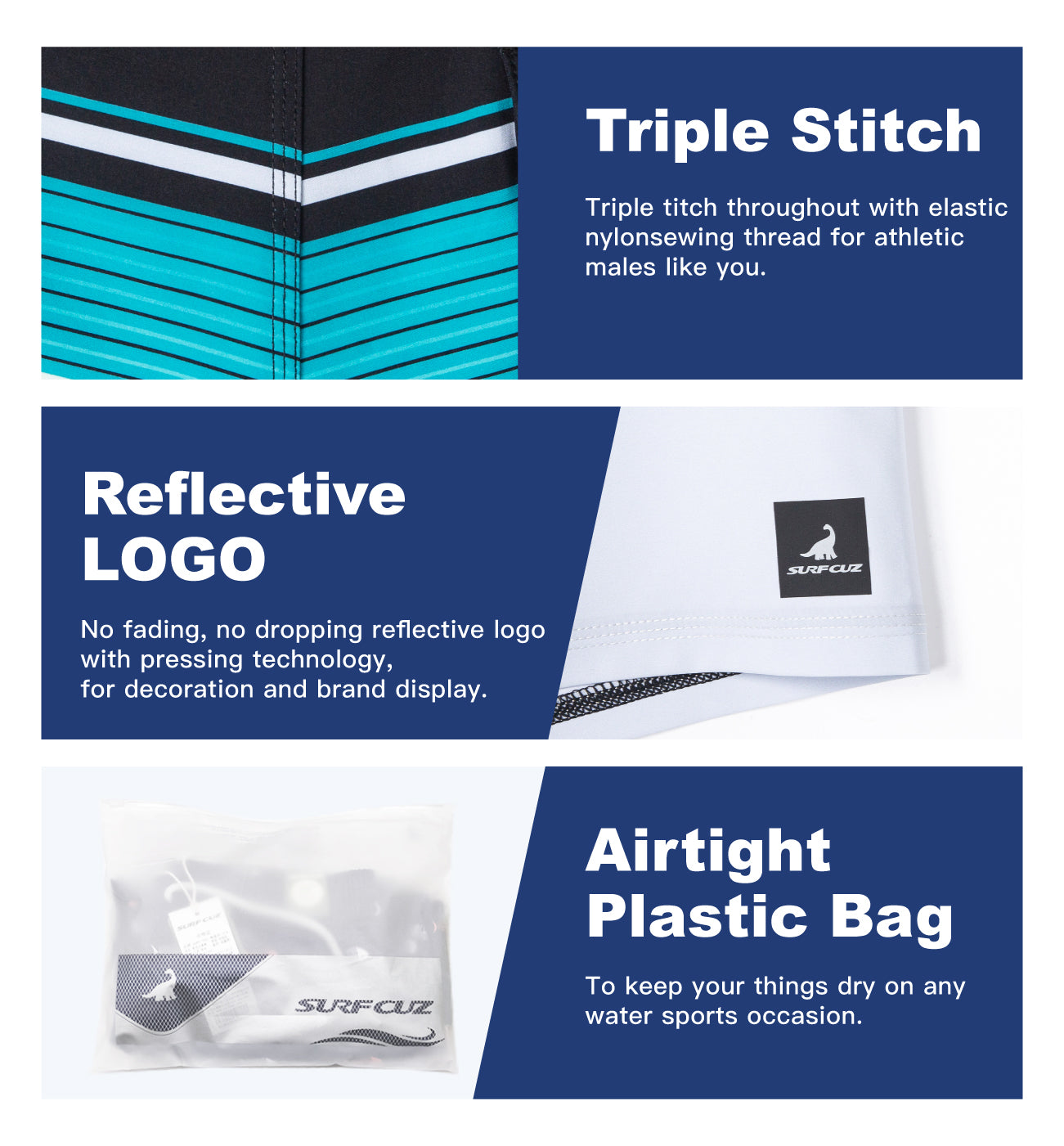 • 【Quick Dry Fabric】Men's board shorts swimwear fabric with 4-way stretch for maximum comfort.