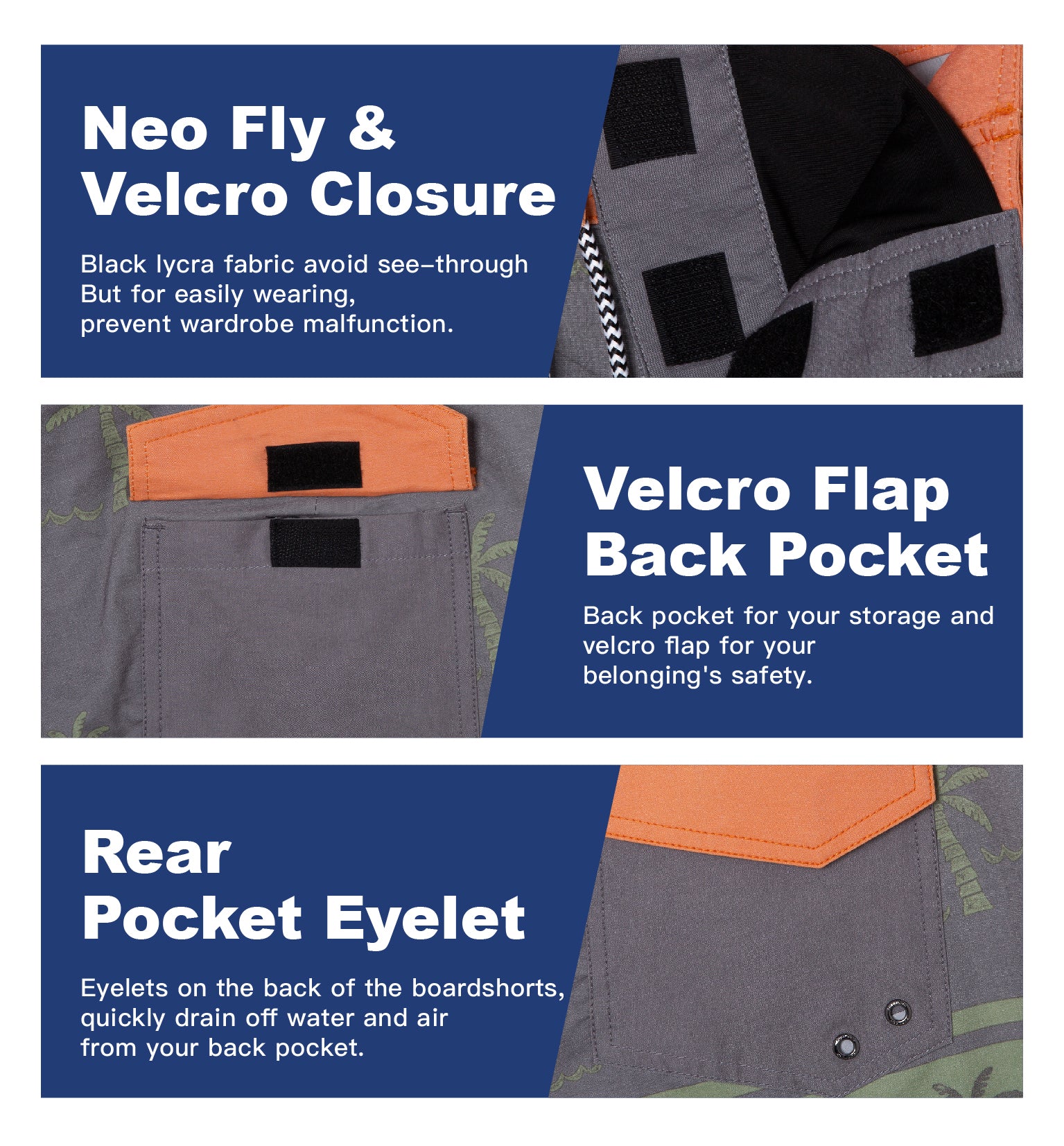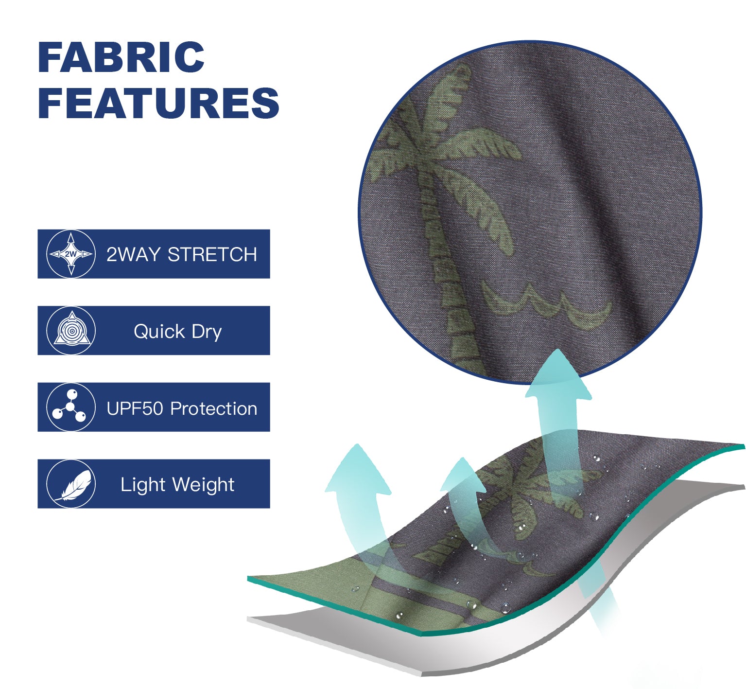 Men's 9" Coconut Tree Print 2-way Stretch Cotton Blend Board Shorts