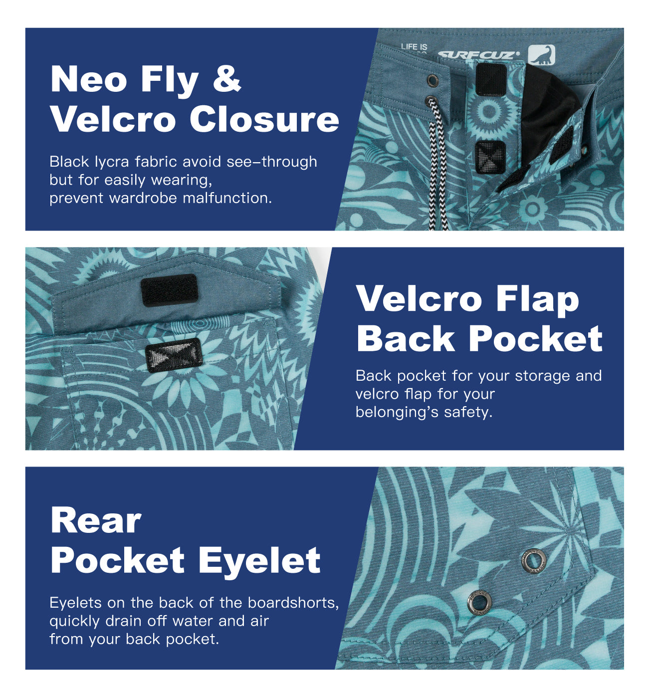 Men's 9" Geometry Print 2-way Stretch Side Pockets BoardShorts