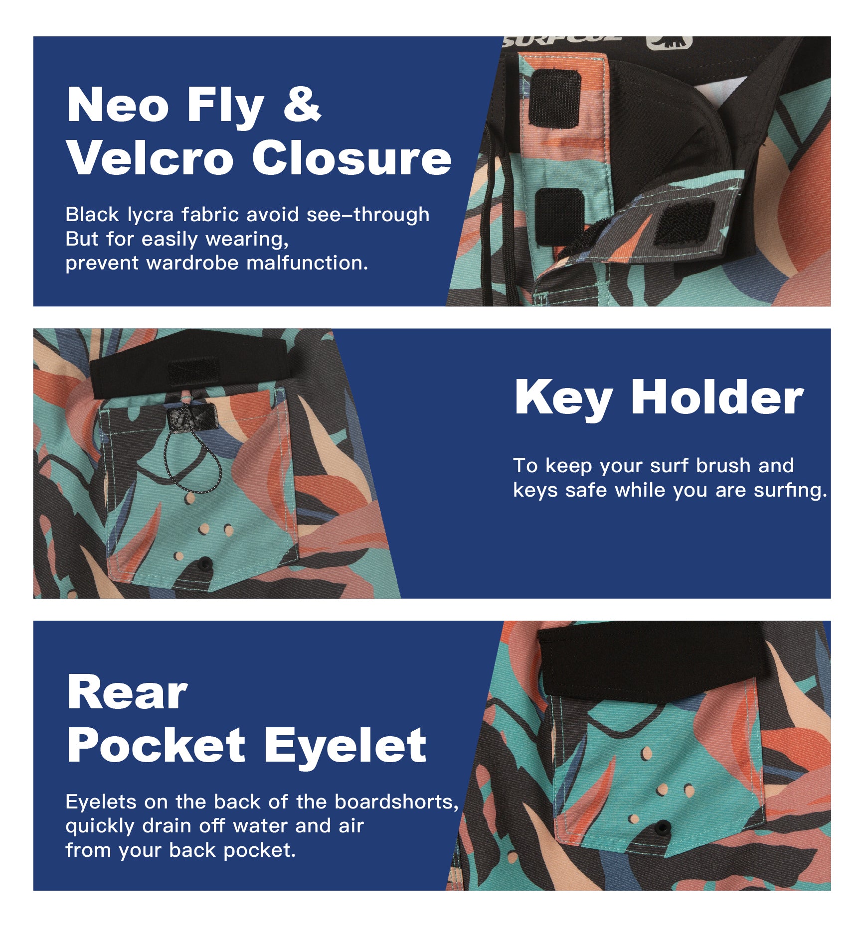 Men's 9" Leaves Blue 4-way Stretch Board Shorts