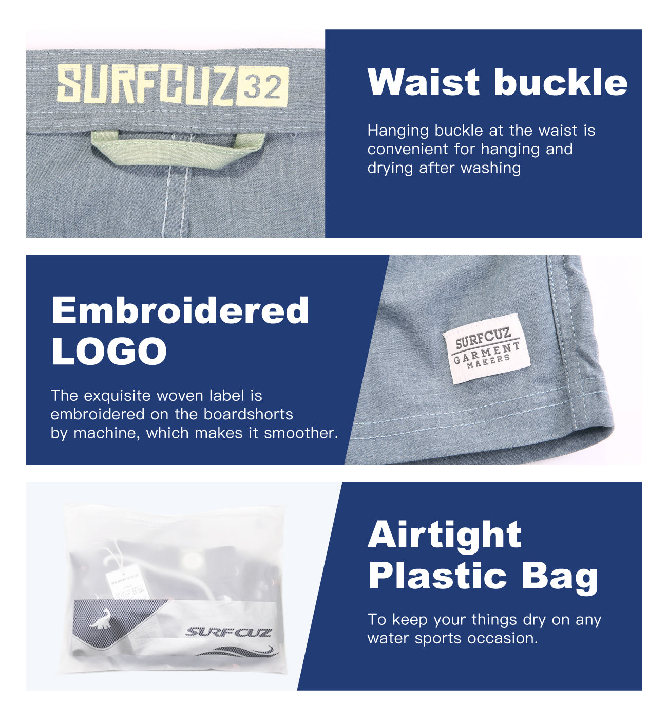 Men's 9" Solid Grey 2-way Stretch Cotton Blend Board Shorts