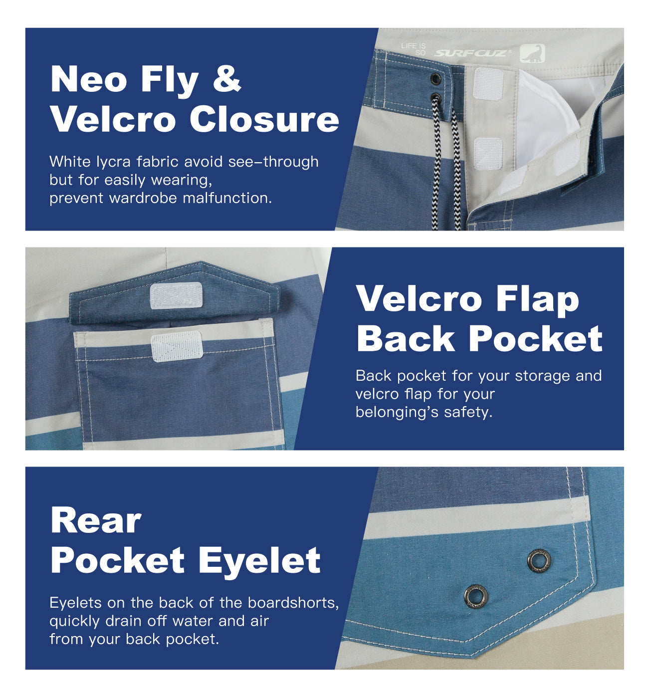 Men's 9" Striped Print 2-way Stretch Side Pockets BoardShorts