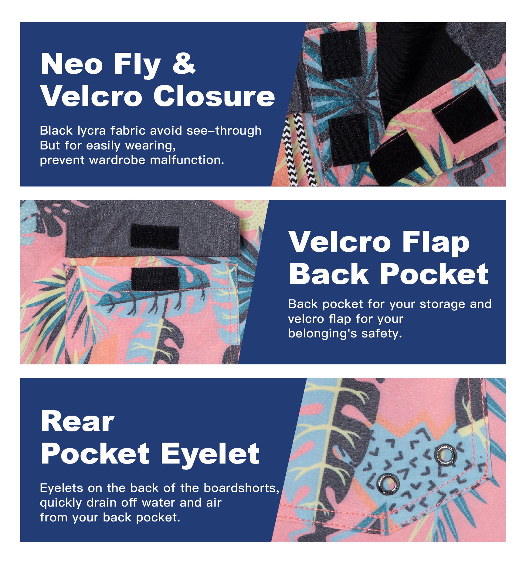 Men's 9" Tropical Print 2-way Stretch Cotton Blend Board Shorts
