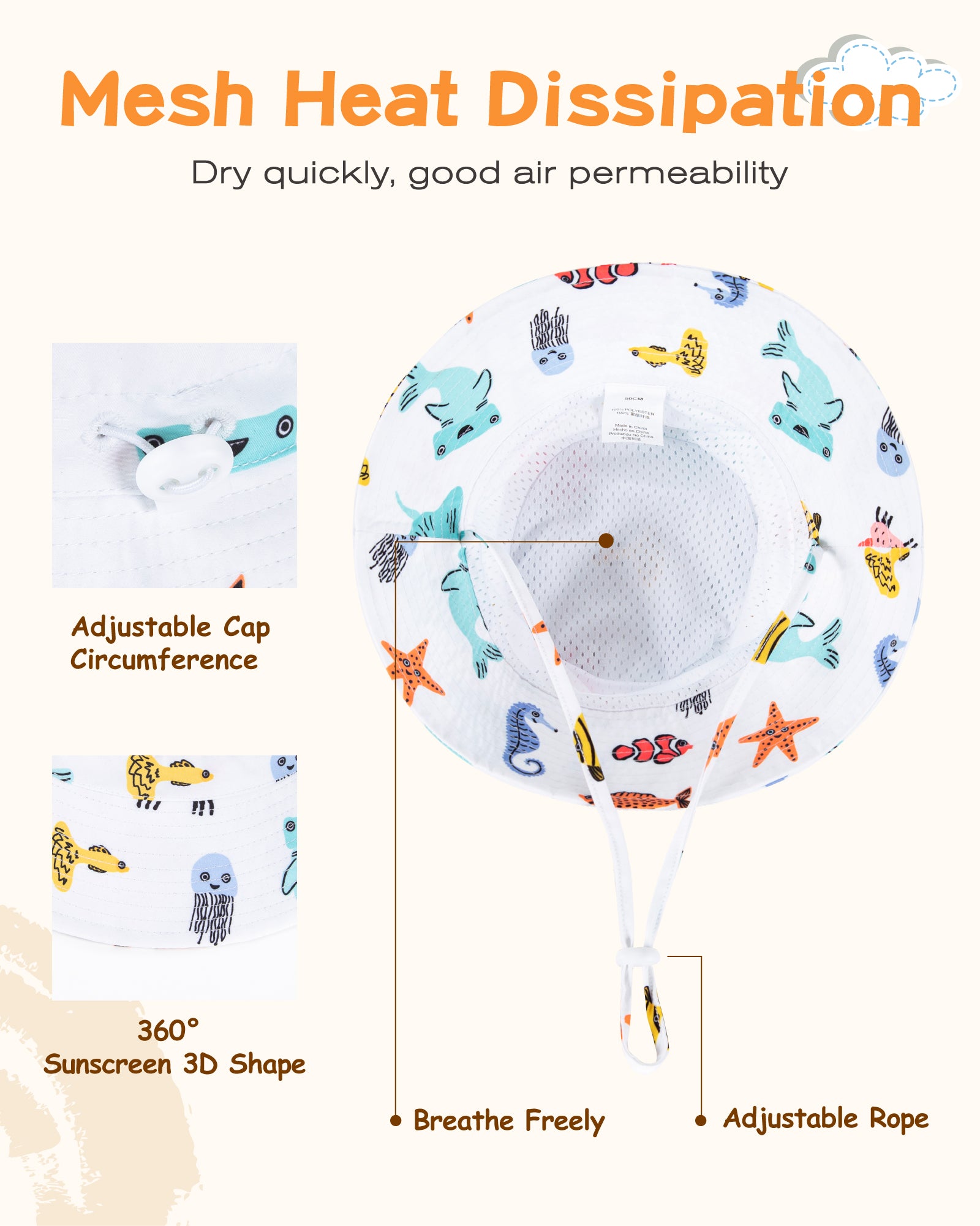 Protect your little one from the sun with our Baby Sun Hat. Made with 100% polyester fabric, it's soft and comfortable for your baby's delicate skin. The drawstring closure ensures a secure fit. Machine washable for easy care. Imported for quality you can trust.