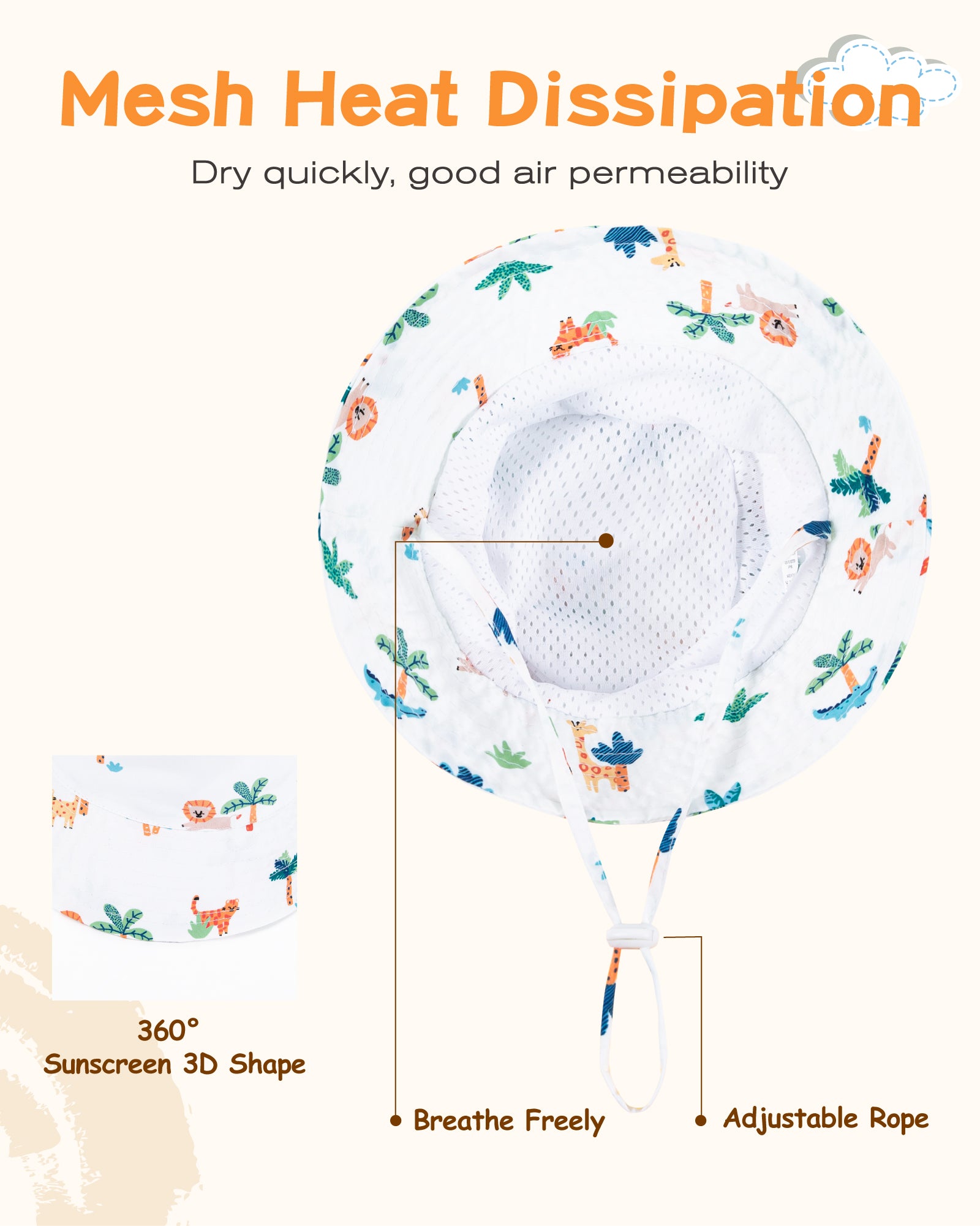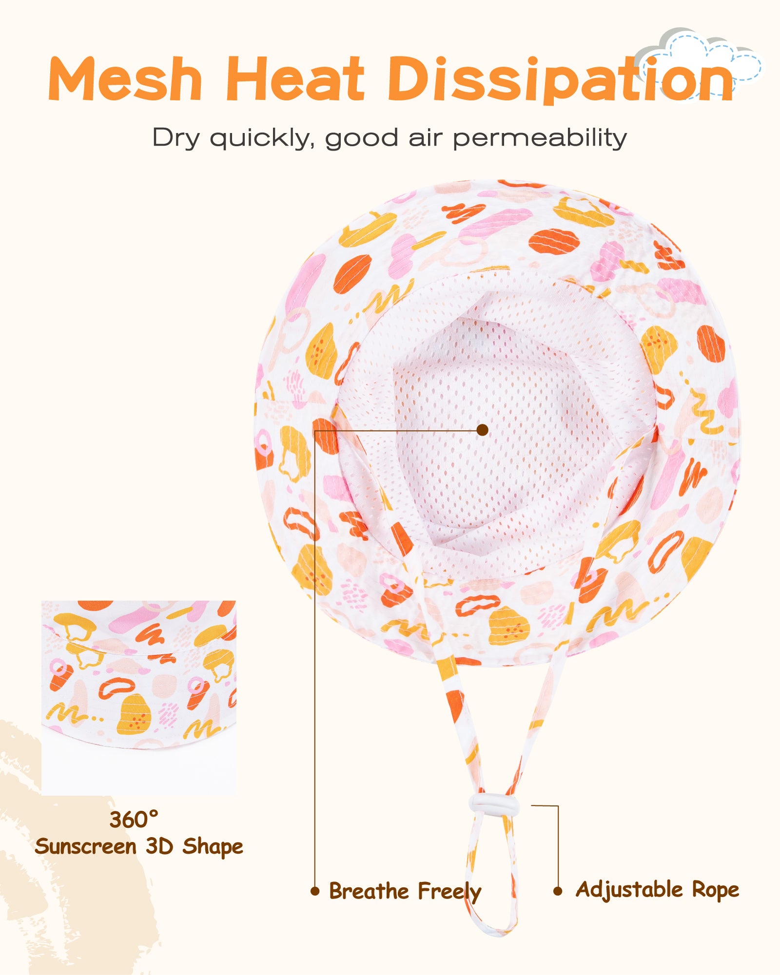 Protect your little one from the sun with our Baby Sun Hat. Made with 100% polyester fabric, it's soft and comfortable for your baby's delicate skin. The drawstring closure ensures a secure fit. Machine washable for easy care. Imported for quality you can trust.