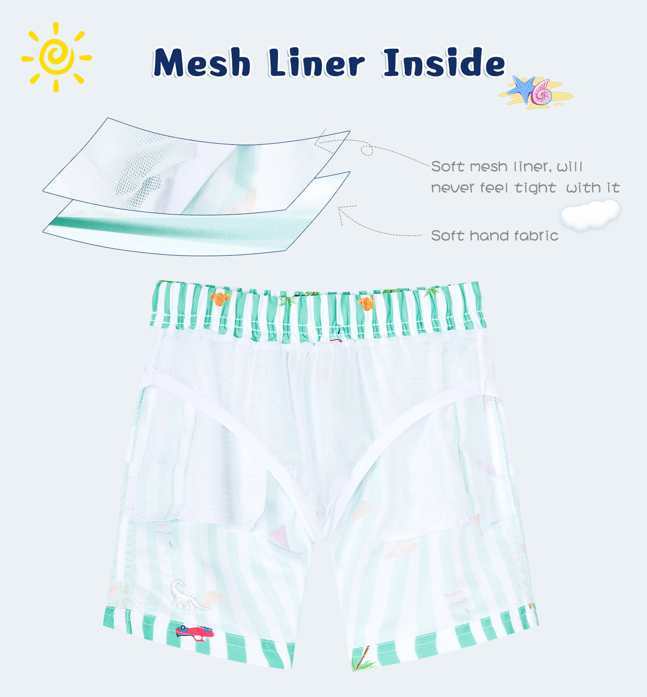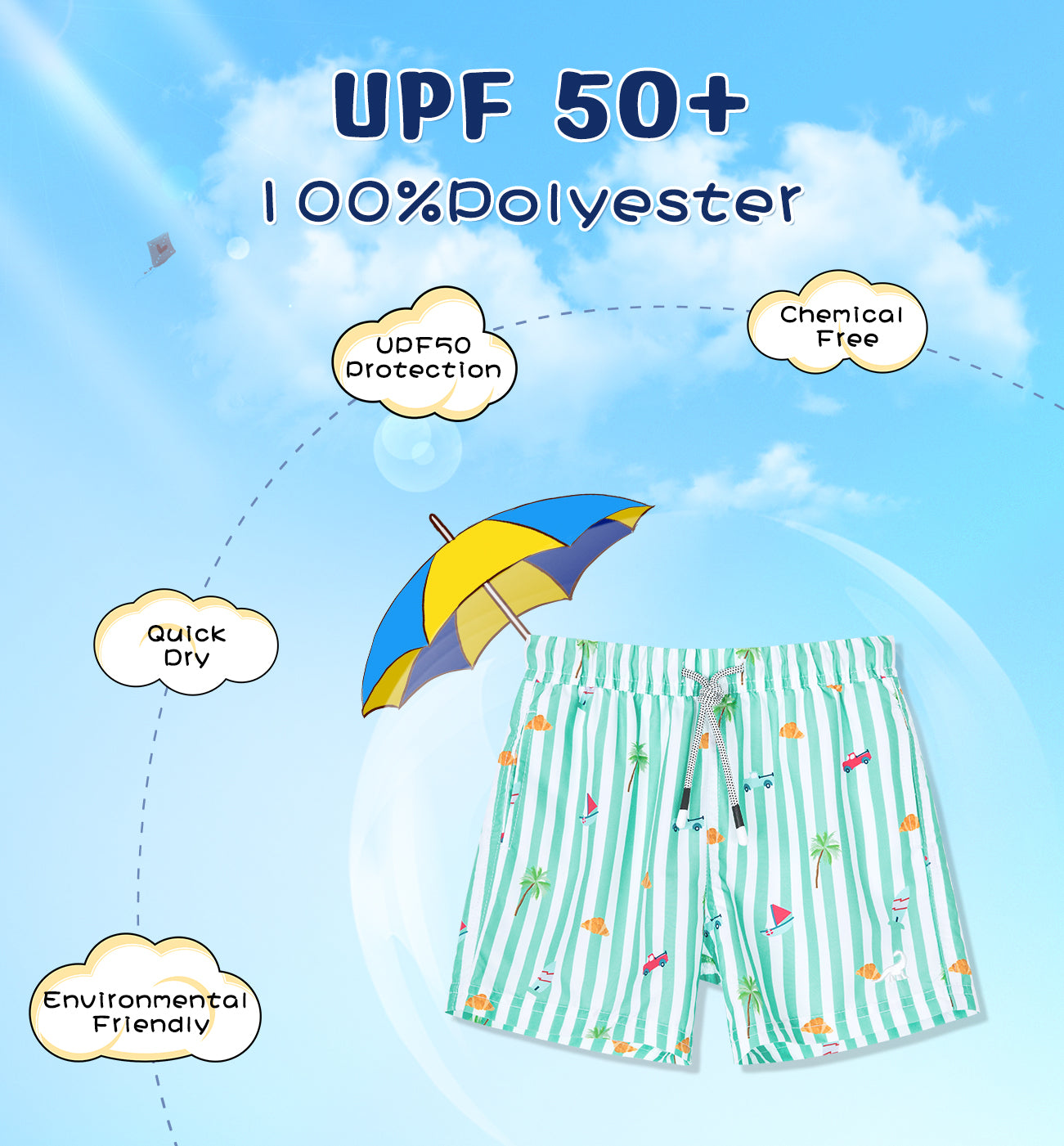 - 🌴Material: The boys swim trunks are made of 100% polyester with silky smooth mesh lining offers all the extra support your boys. UPF 50+ blocks 90% of the sun's harmful ultraviolet rays. The smooth polyester fabric is lightweight, comfortable, and quick dry. The silky smooth mesh lining offers all the extra support your boys need during any activity.