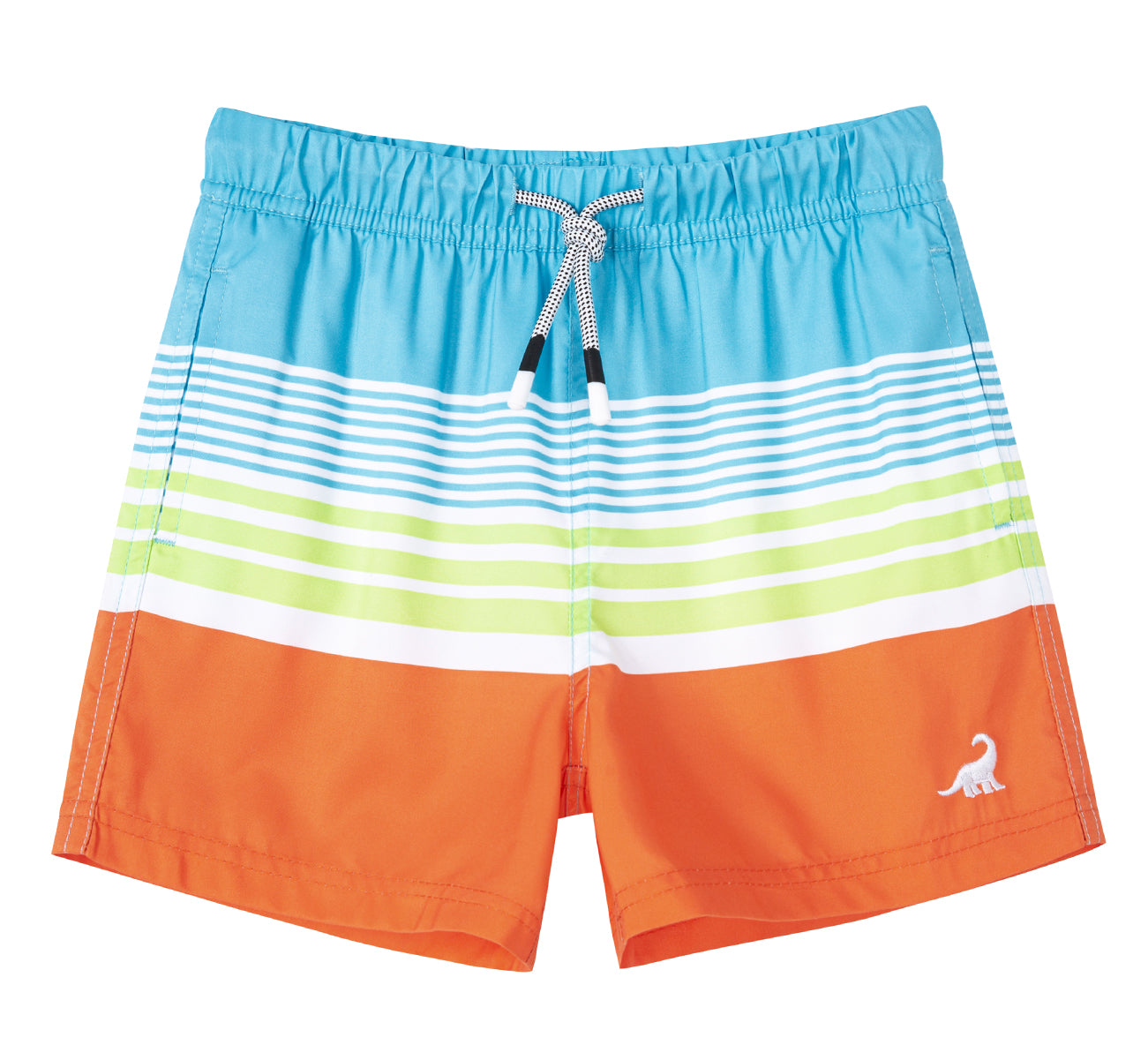 Boy's blue orange Stripe Print Quick Dry Swim Trunks