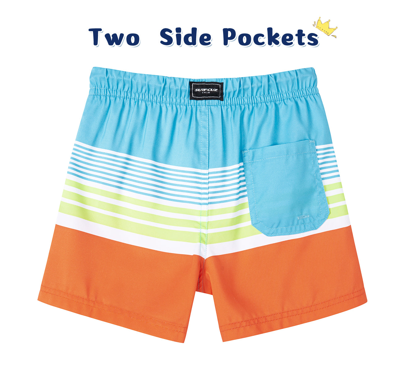 - 🌴Feature: Boys swim shorts are designed with elastic waistband and adjustable drawstring. Two side pockets and one back pocket with nicely embroidered drain hole. And the side seam pockets adopt mesh fabric to facilitate water and sand drain quickly, allowing kids to move freely in the pool, or beach, without restraint.