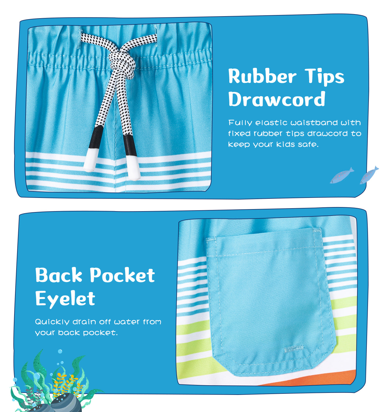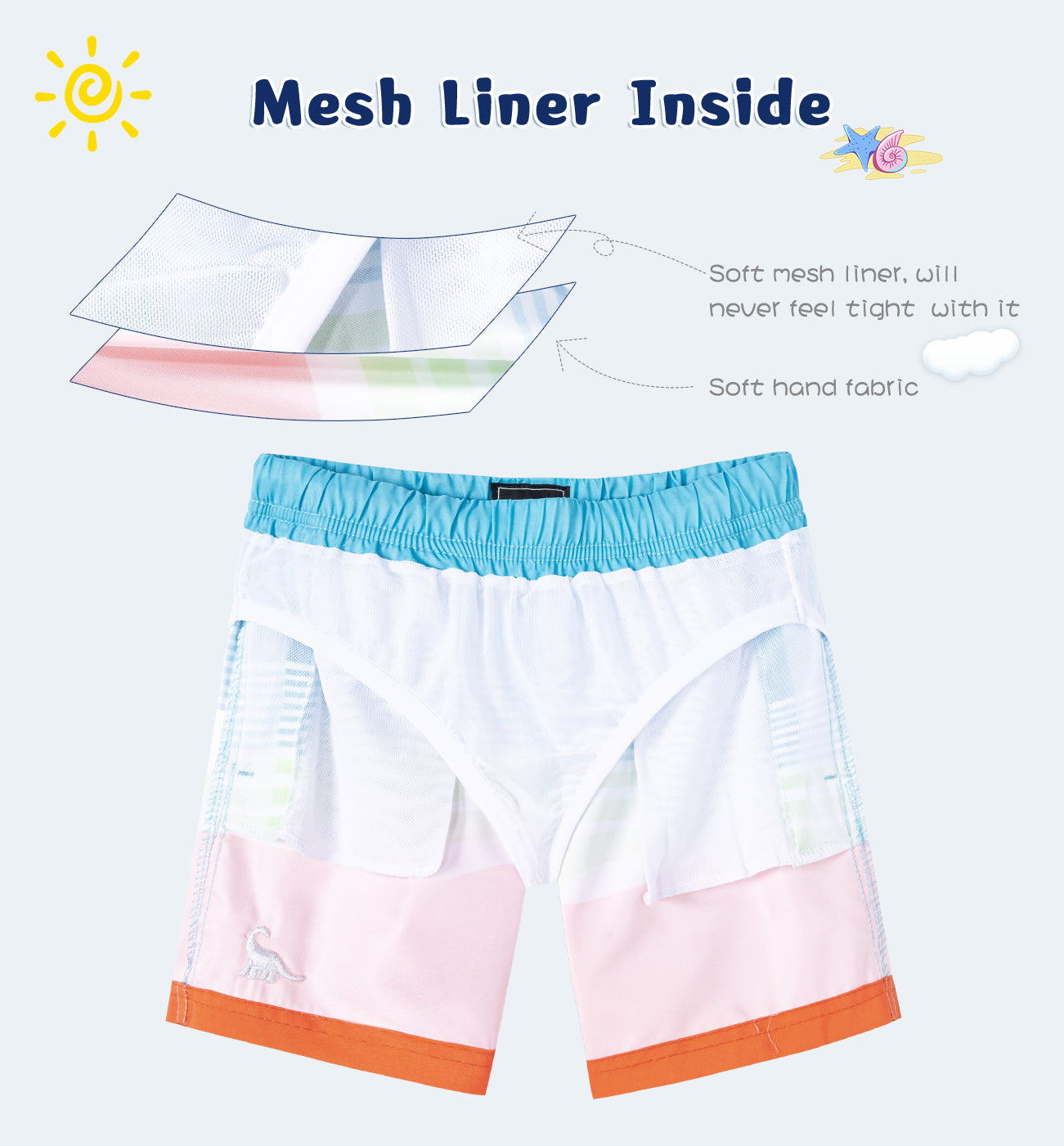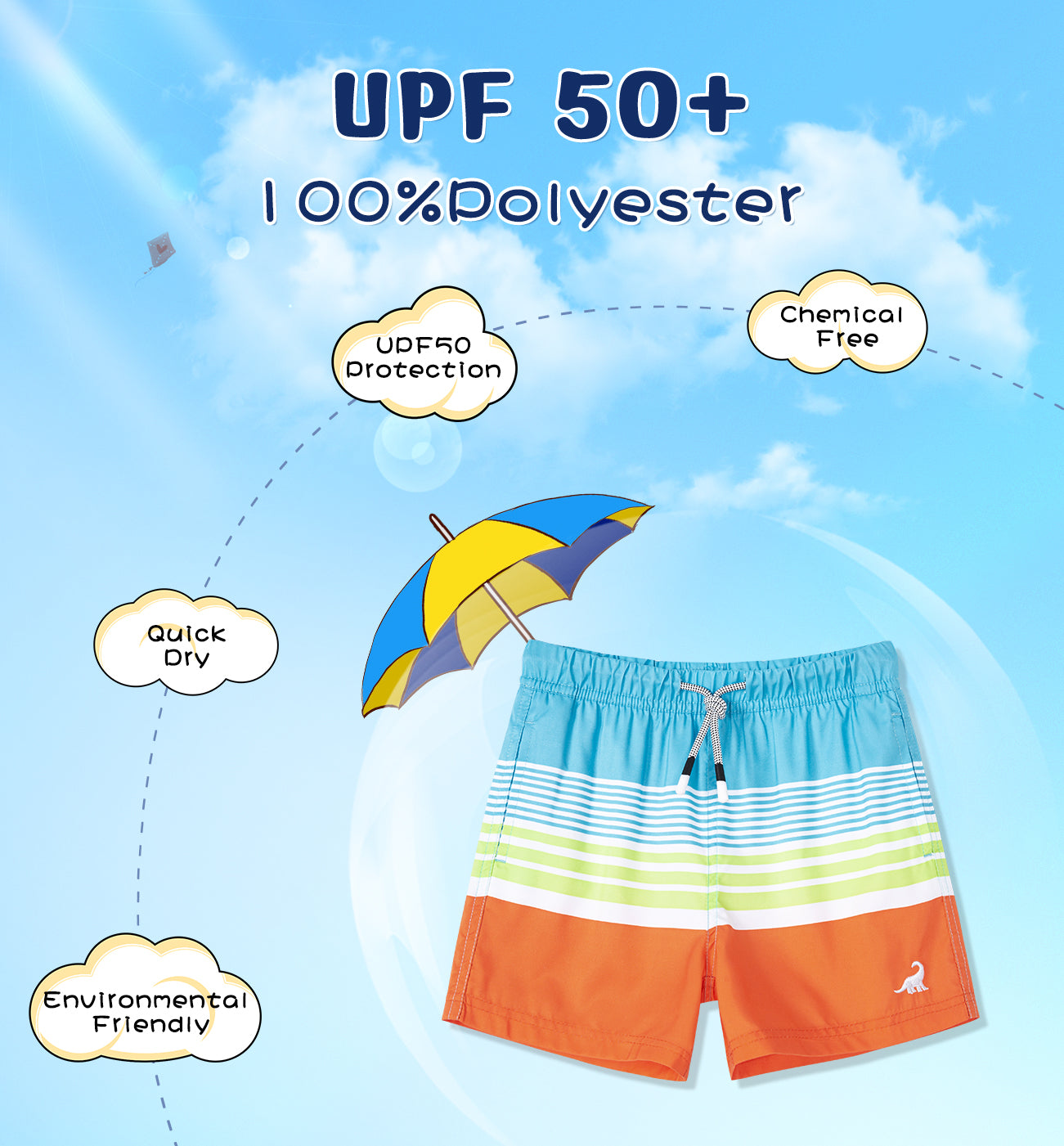 - 🌴Material: The boys swim trunks are made of 100% polyester with silky smooth mesh lining offers all the extra support your boys. UPF 50+ blocks 90% of the sun's harmful ultraviolet rays. The smooth polyester fabric is lightweight, comfortable, and quick dry. The silky smooth mesh lining offers all the extra support your boys need during any activity.