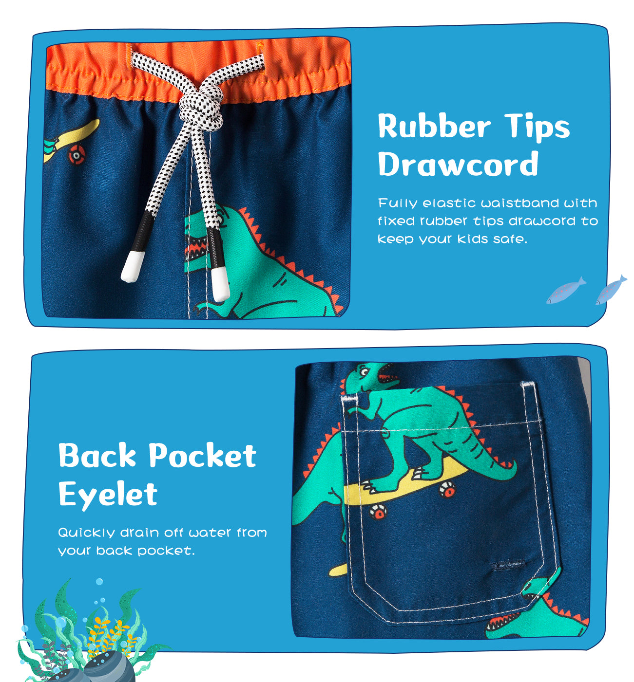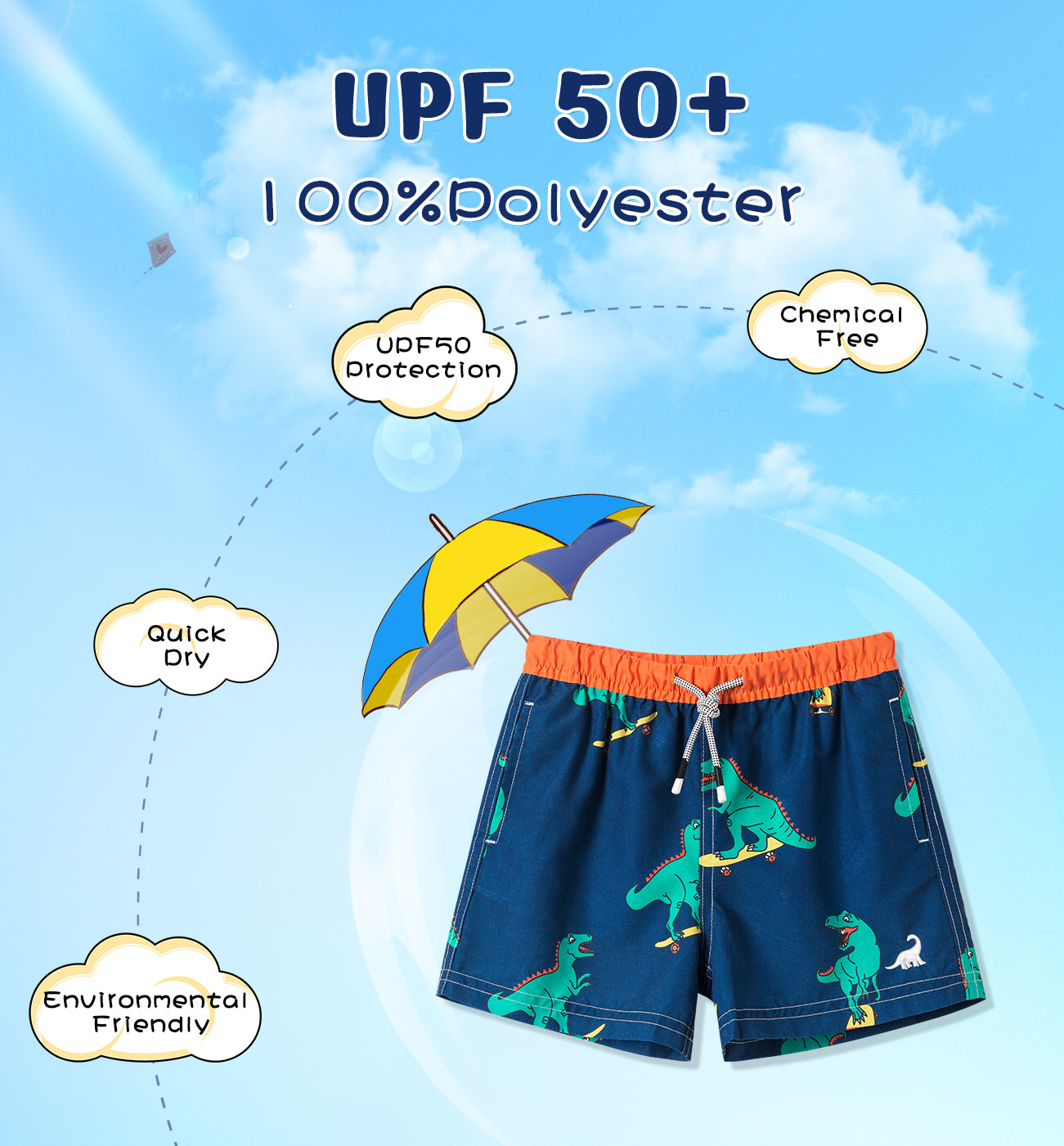 Boy's Dinosaur skateboard Print Quick Dry Swim Trunks