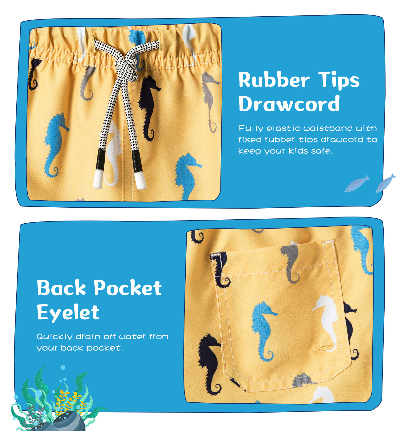 Boy's Hippocampus Print Quick Dry Swim Trunks
