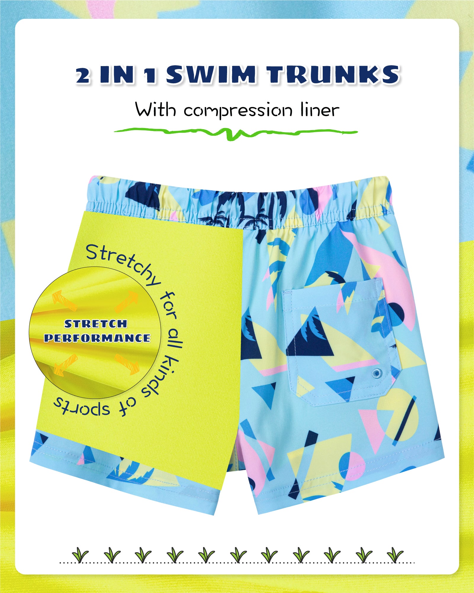 Kid's Quick-Dry 2-in-1 Swim Trunks With Stretch Soft Fabric