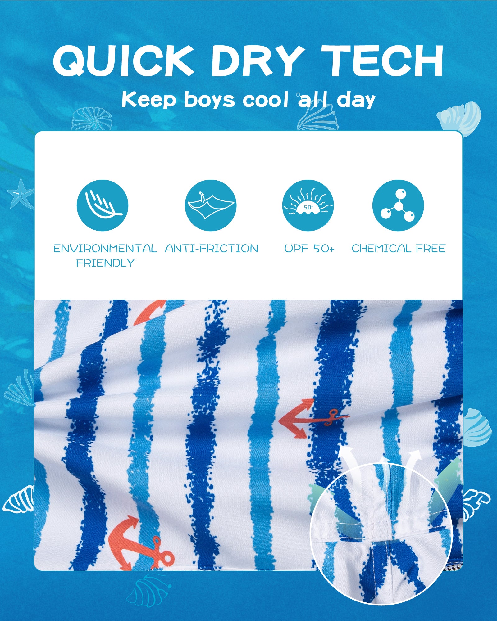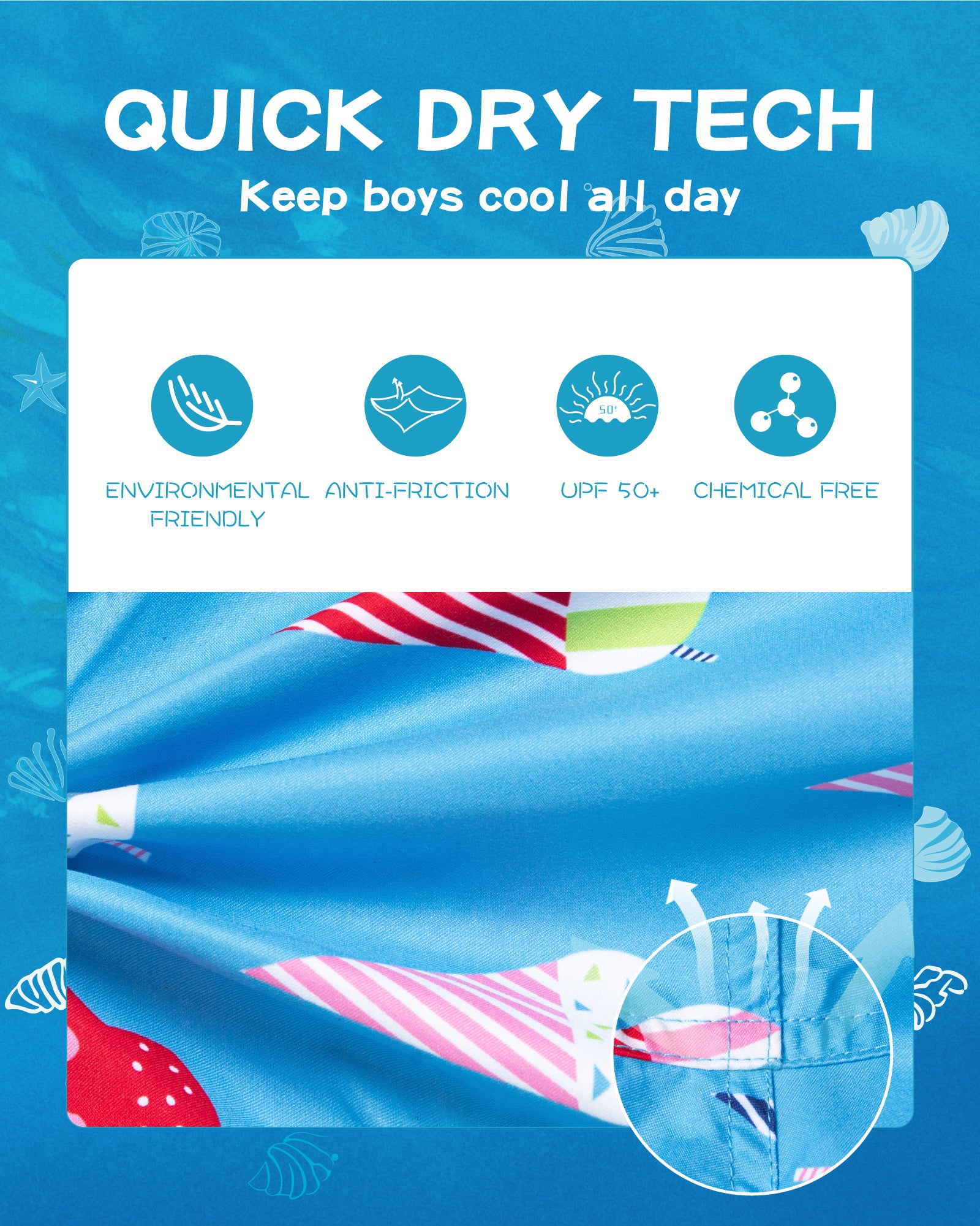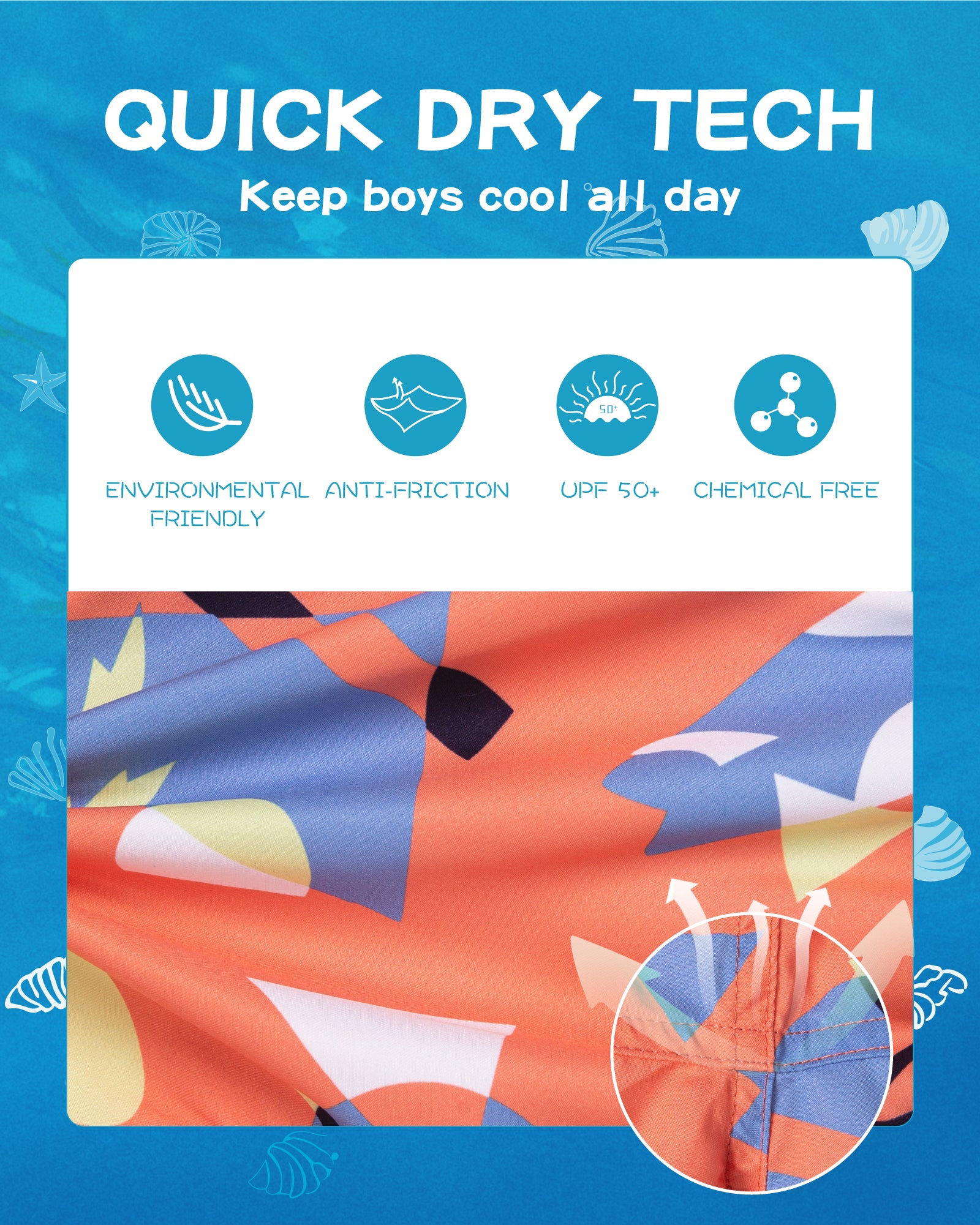 Boys Swim Trunks UPF 50+ Quick Dry With Mesh Liner & Pockets