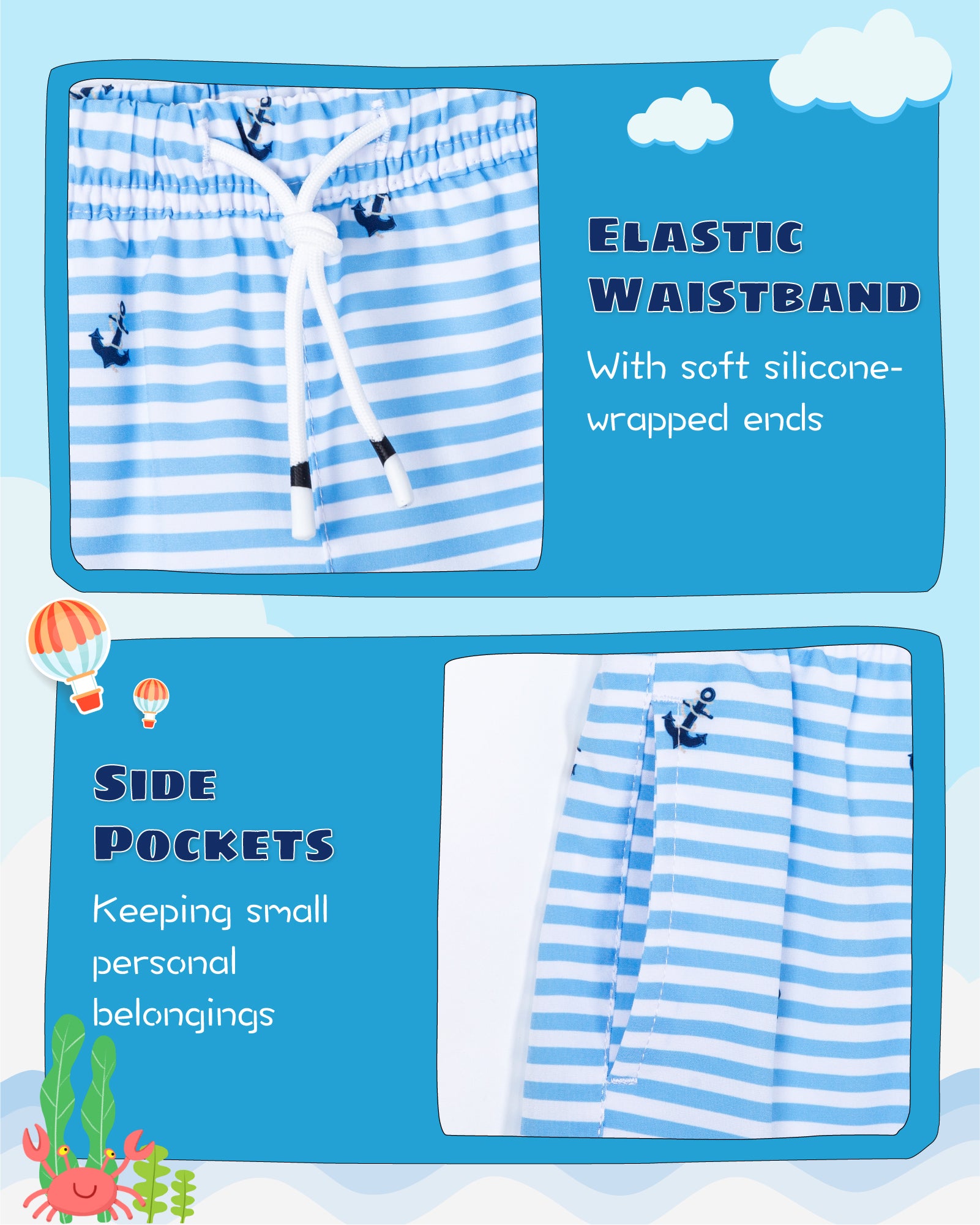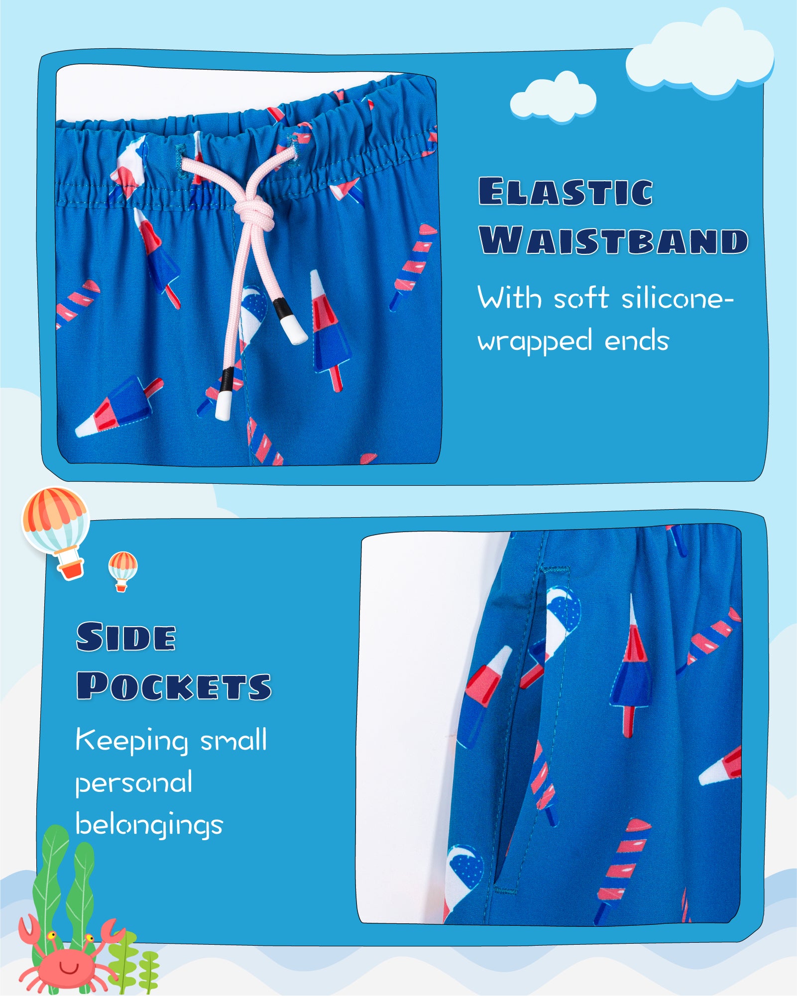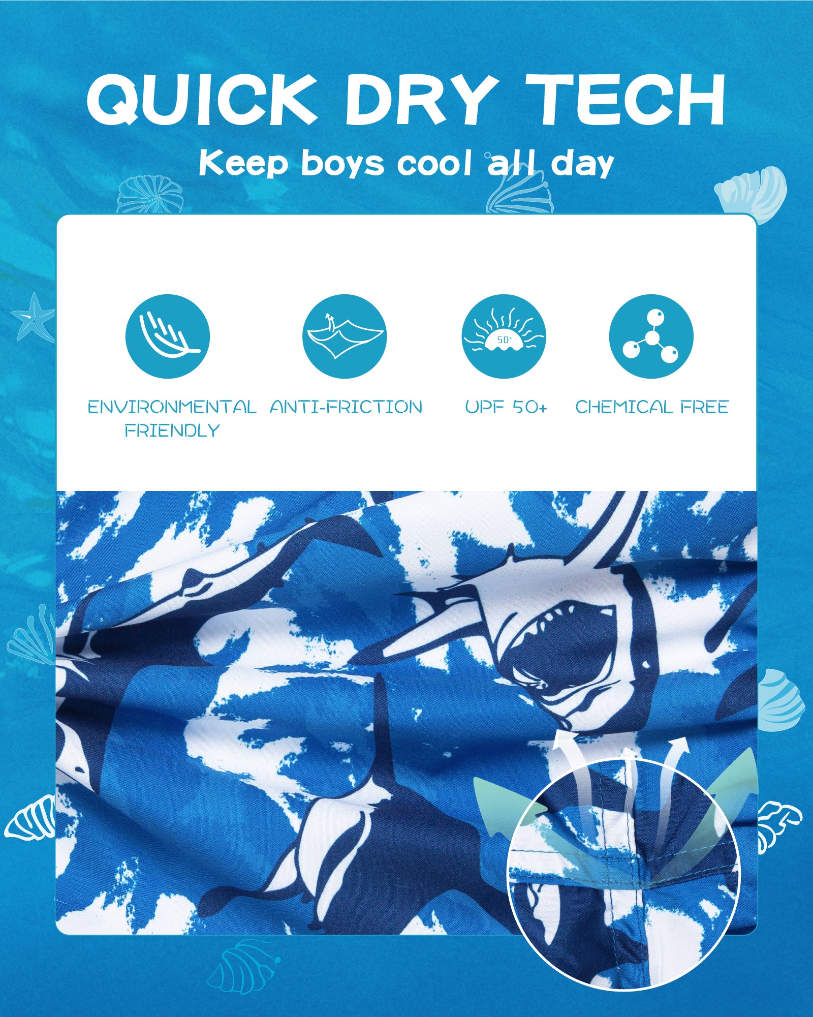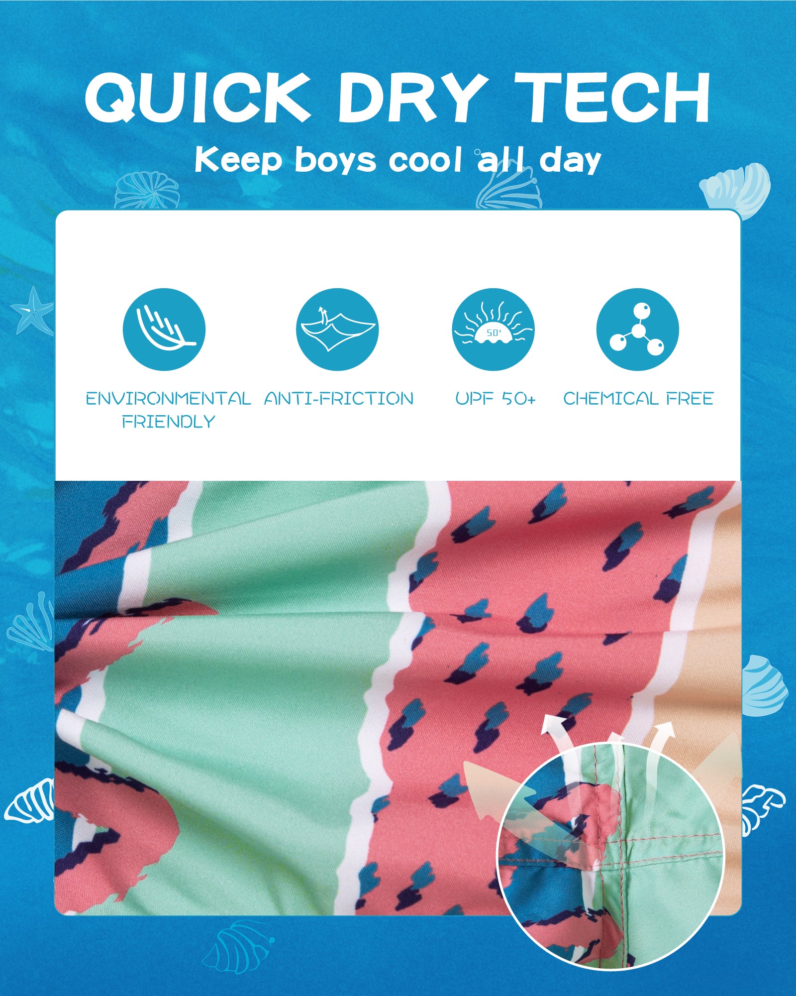 Boys Swim Trunks UPF 50+ Quick Dry With Mesh Liner & Pockets
