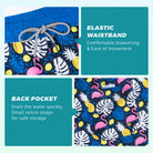 Includes two side pockets for daily essentials and one Velcro back pocket for secure storage. All pockets feature drainage holes to eliminate trapped water and avoid waterlogging.Secure, Adjustable Fit