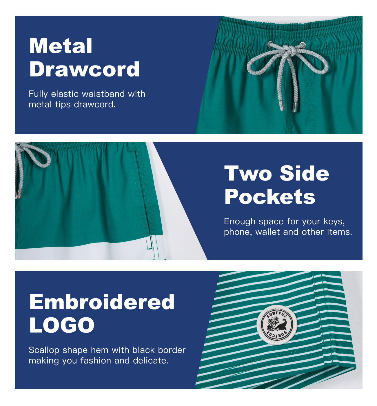 Men's 7" Dark Green Striped quick-drying Swim Trunks