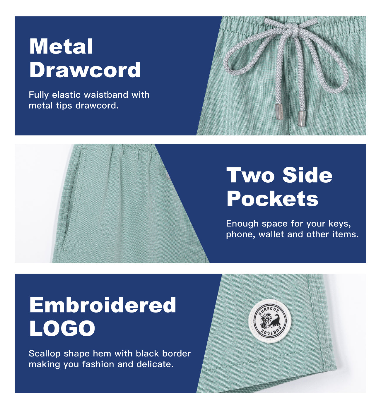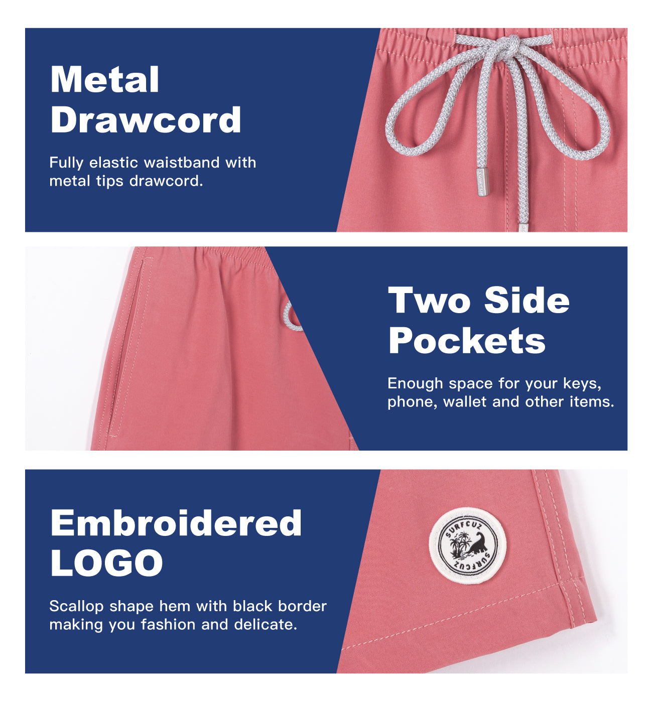 - Fashion board shorts : elastic waistband with drawstring, drawstring can be used freely adjustable tightness according your waist
