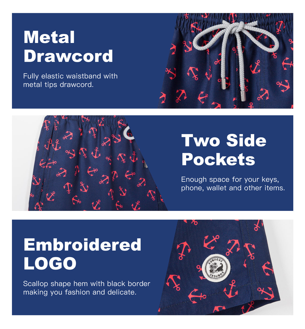 Men's 7" AnchorDark Blue quick-drying Swim Trunks
