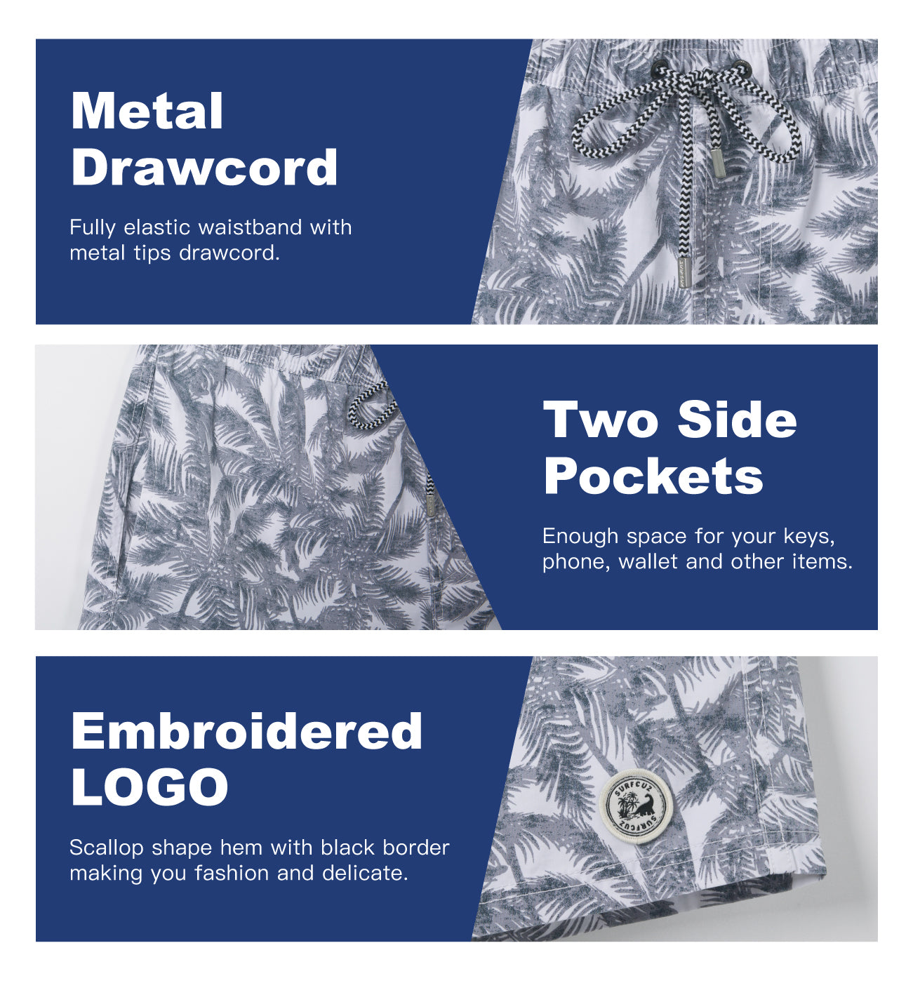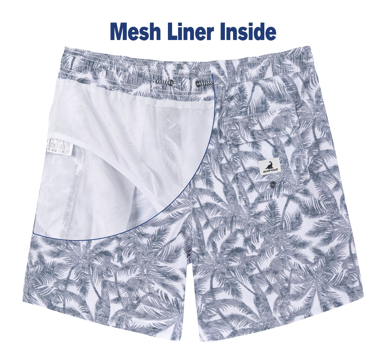 Men's 7" coconut tree Light Washed Vintage Swim Trunks