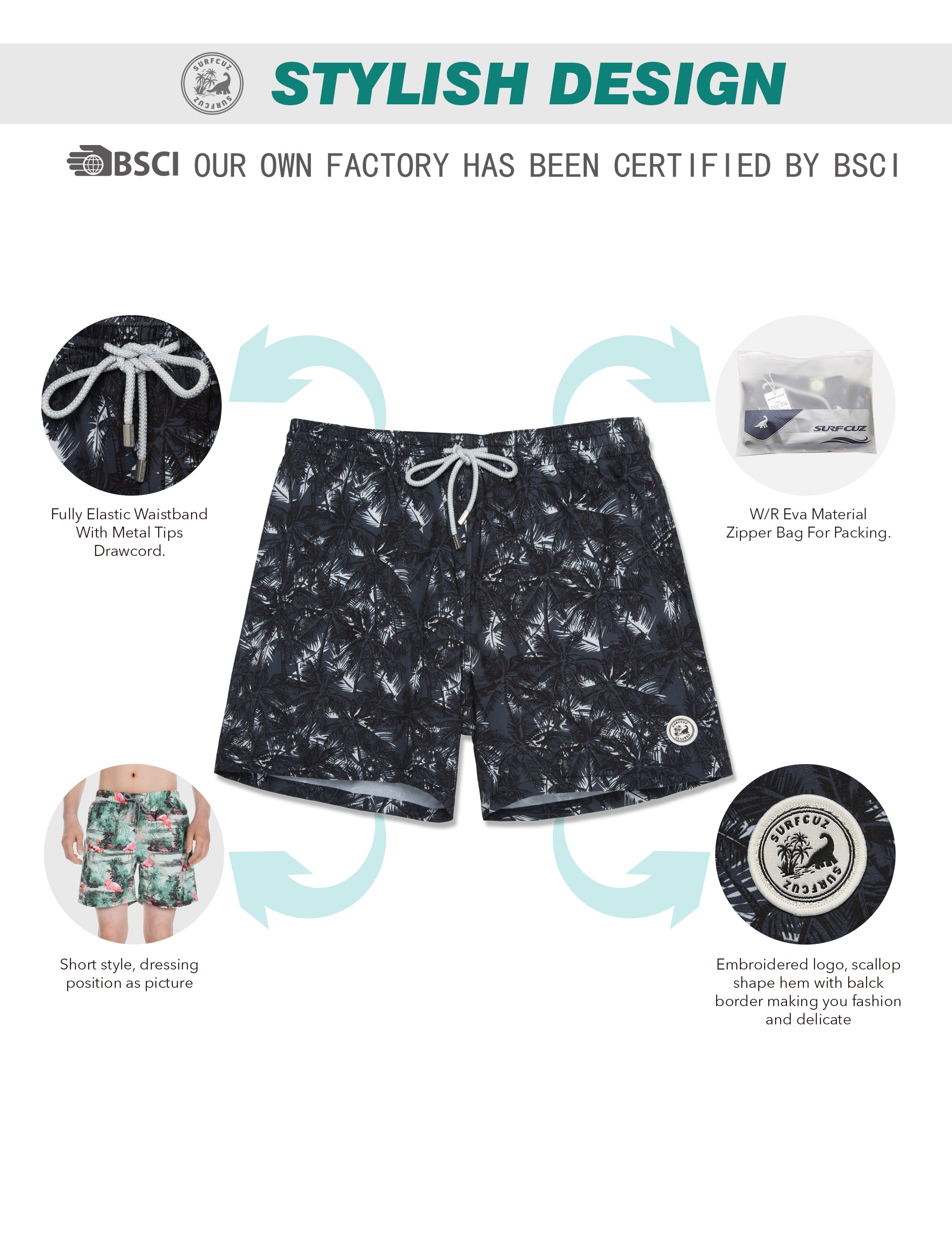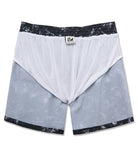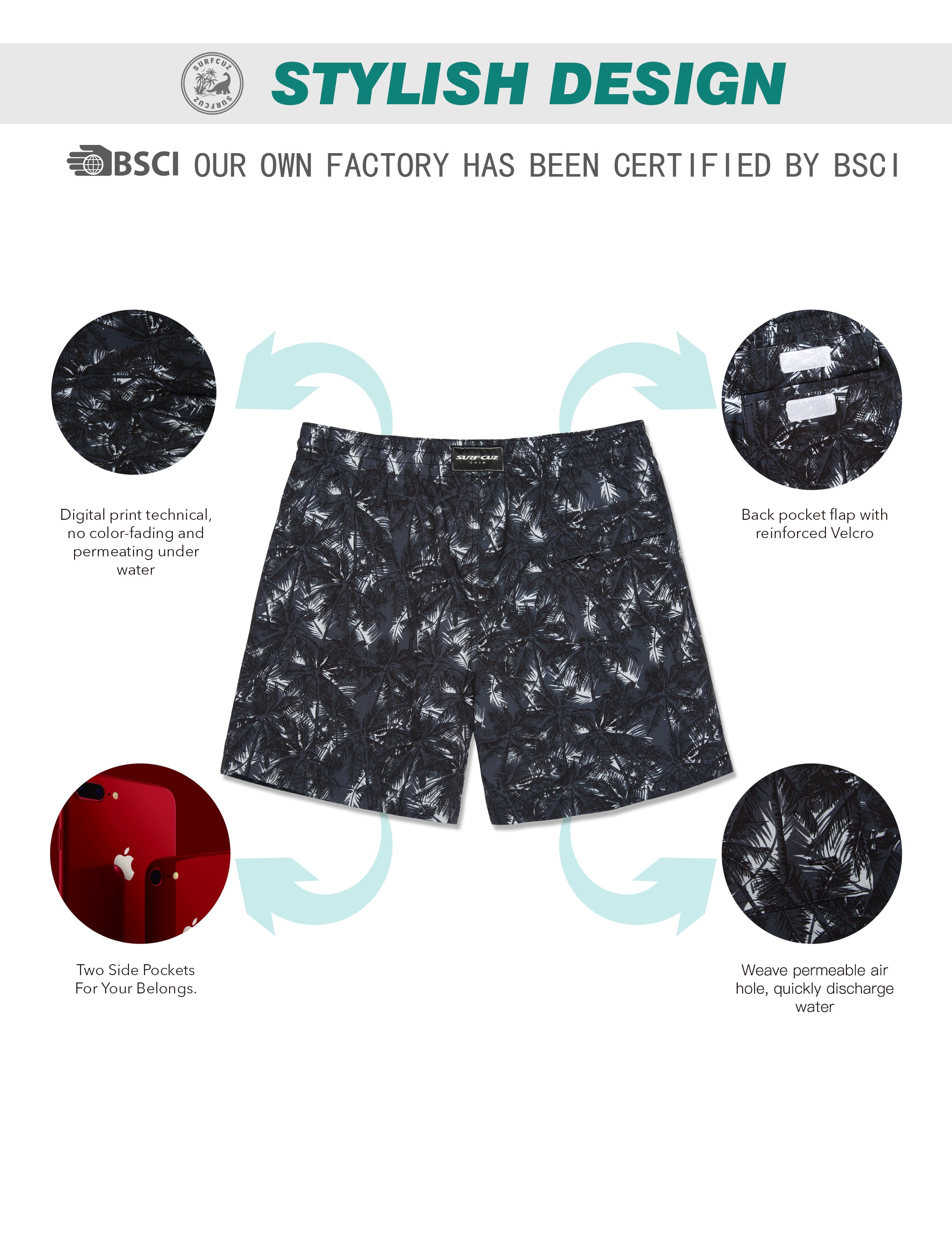 Men's 7" Geometric black 4 way stretch Swim Trunks