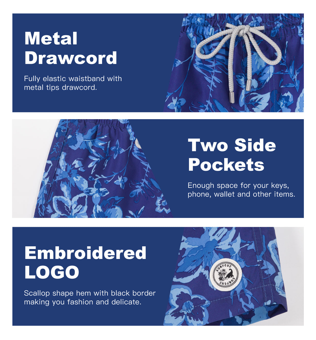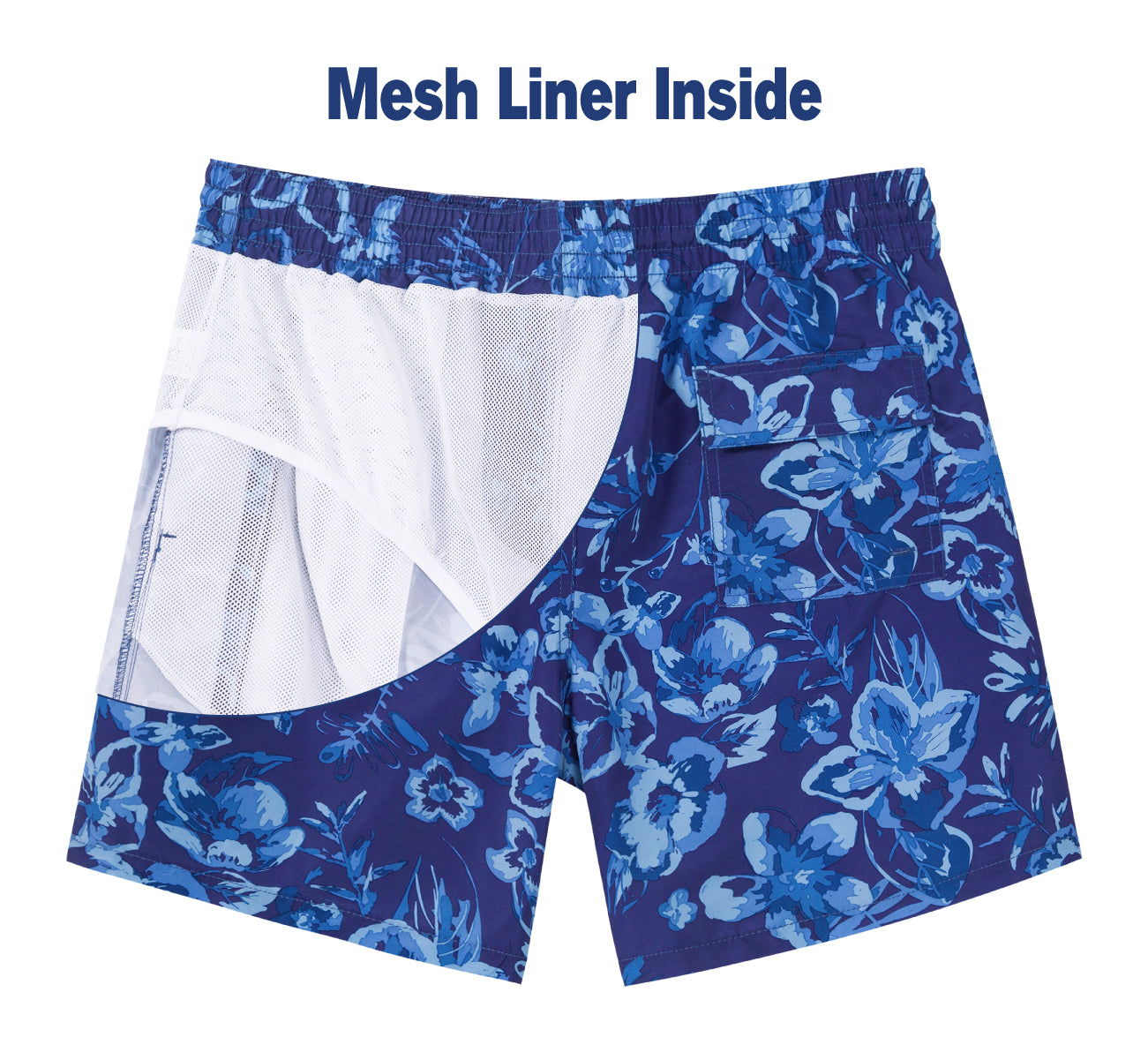 Men's 7" Tropical Floral Dark blue quick-drying Swim Trunks