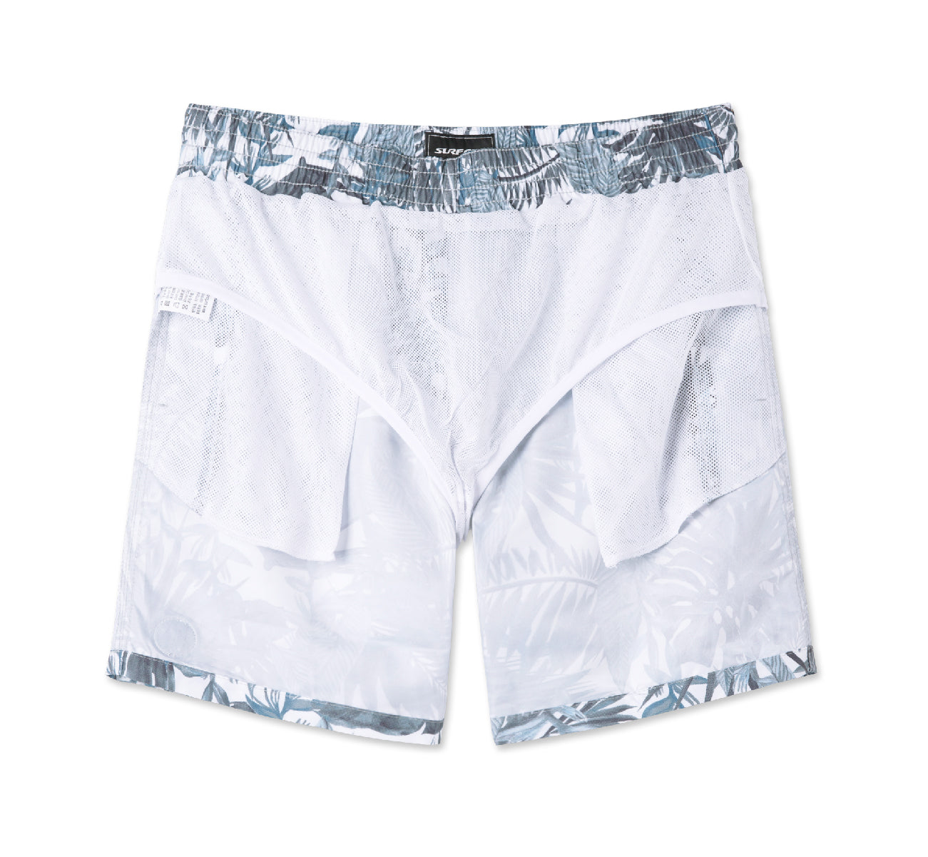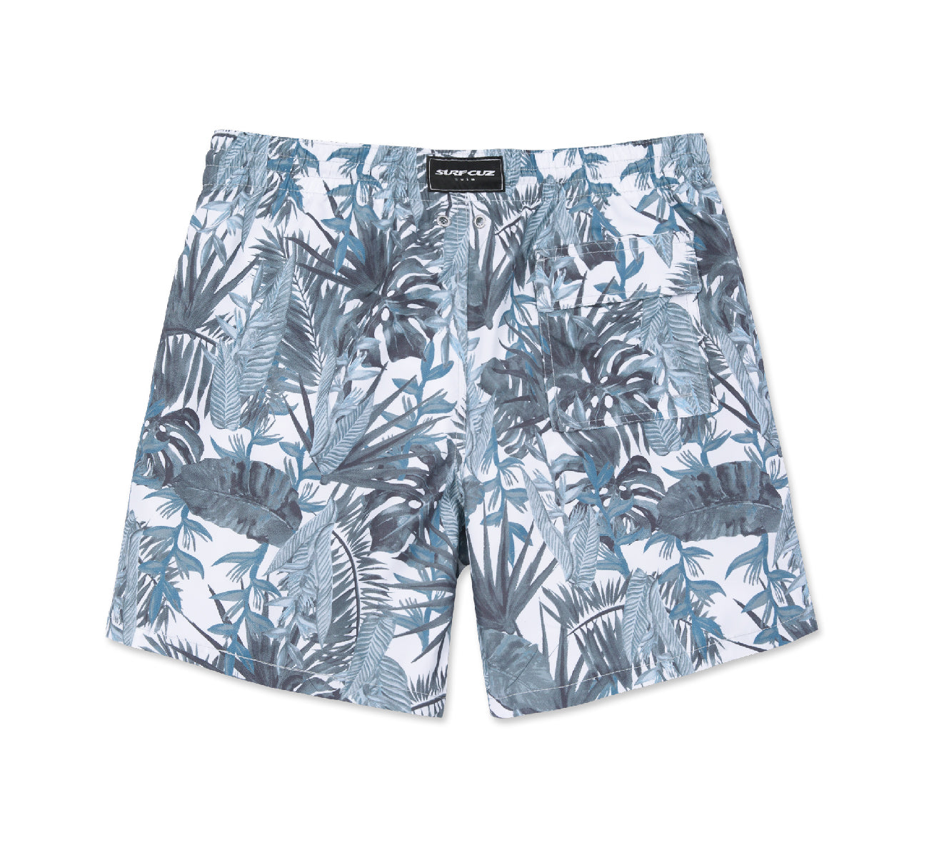 Men's 7" Tropical Leaves Grey Blue quick-drying Swim Trunks