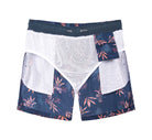 Men's 7" Tropical Leaves Blue quick-drying Swim Trunks