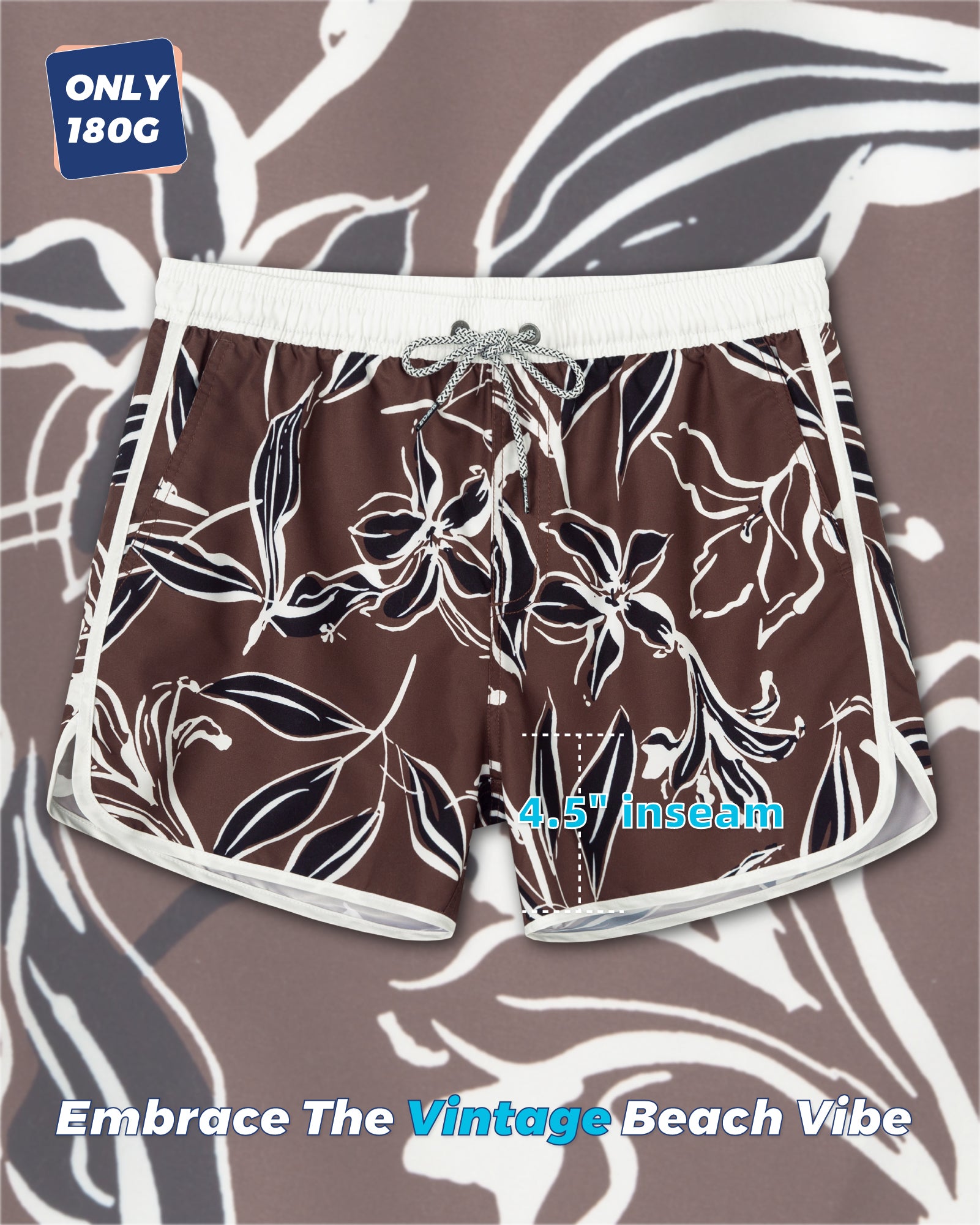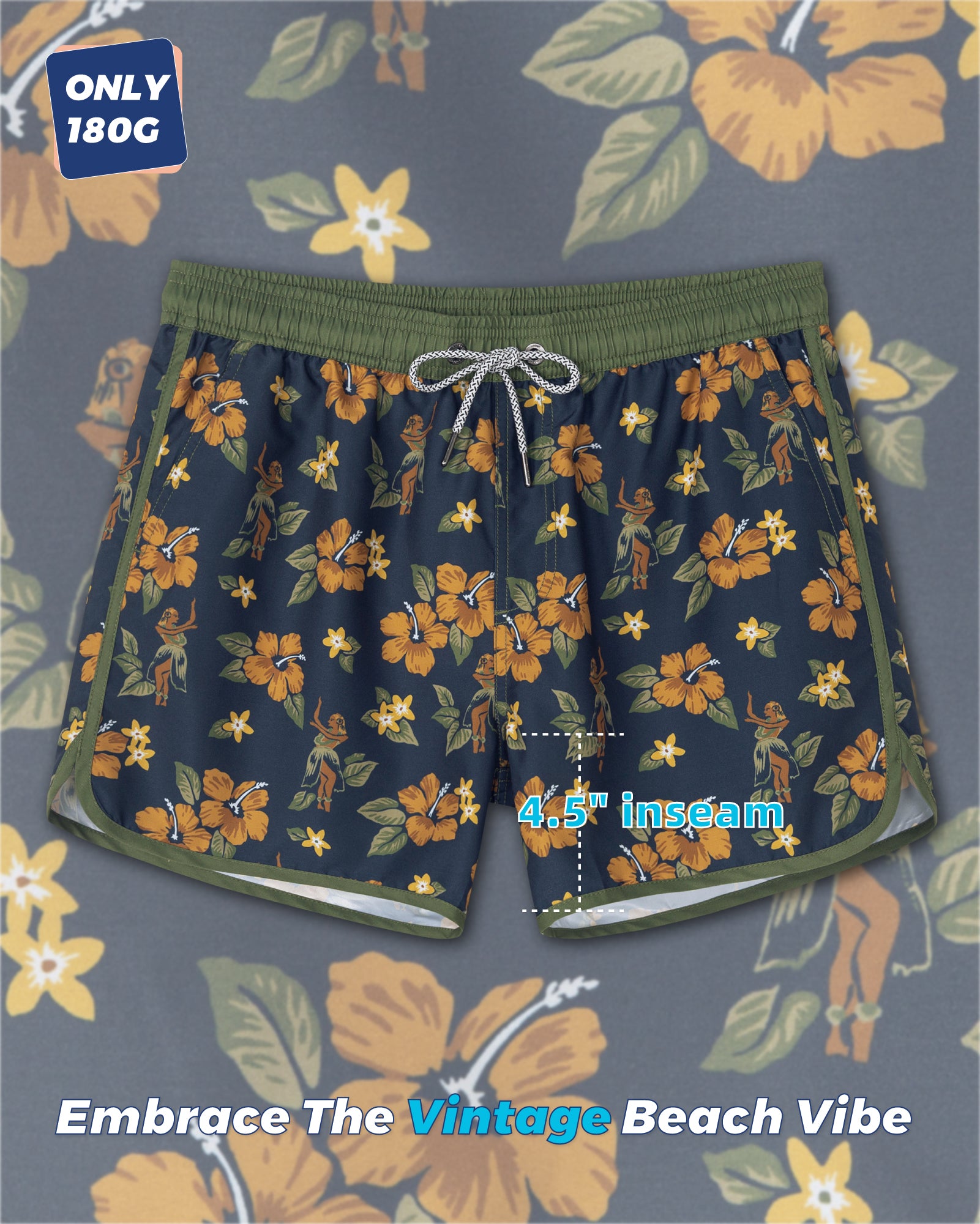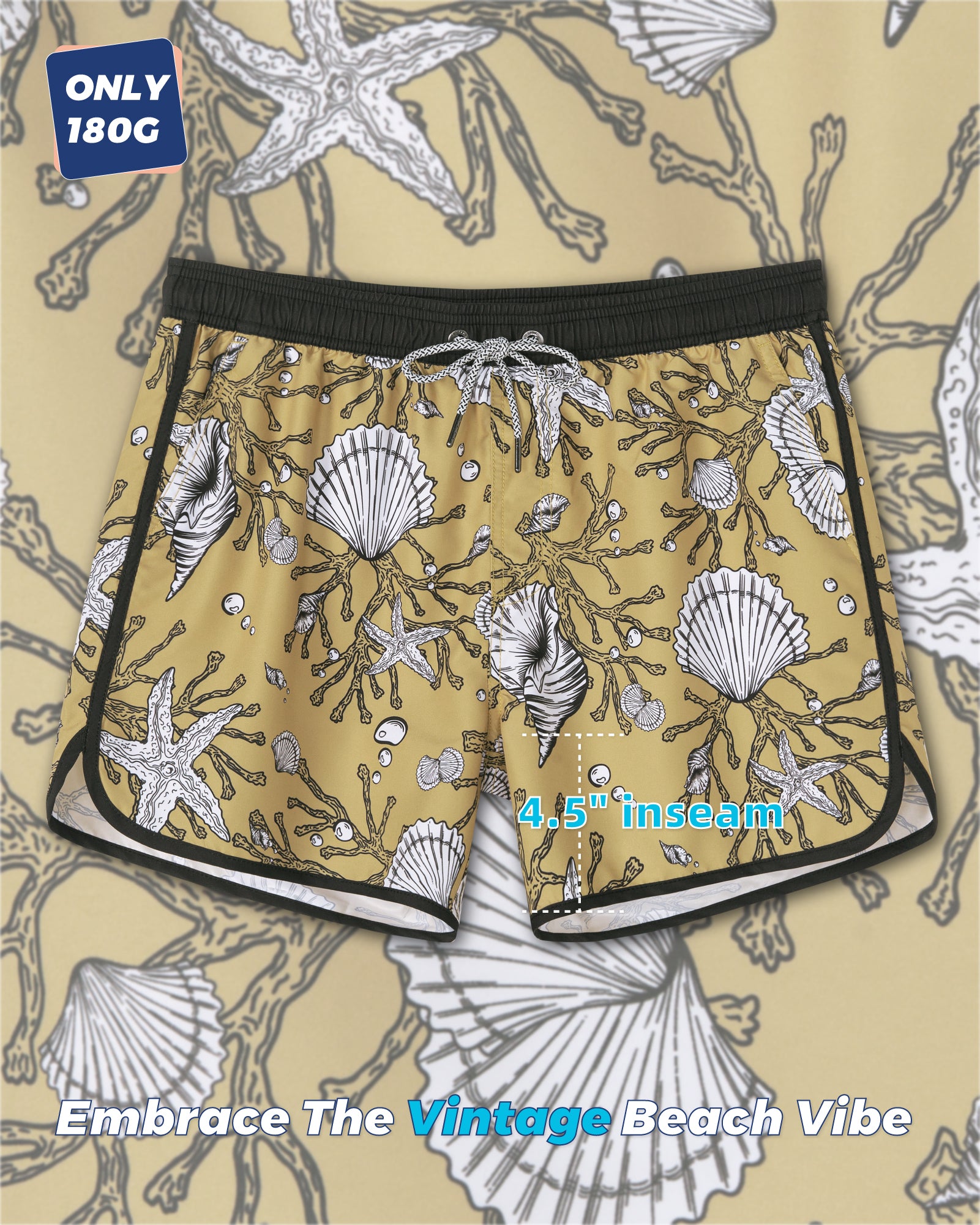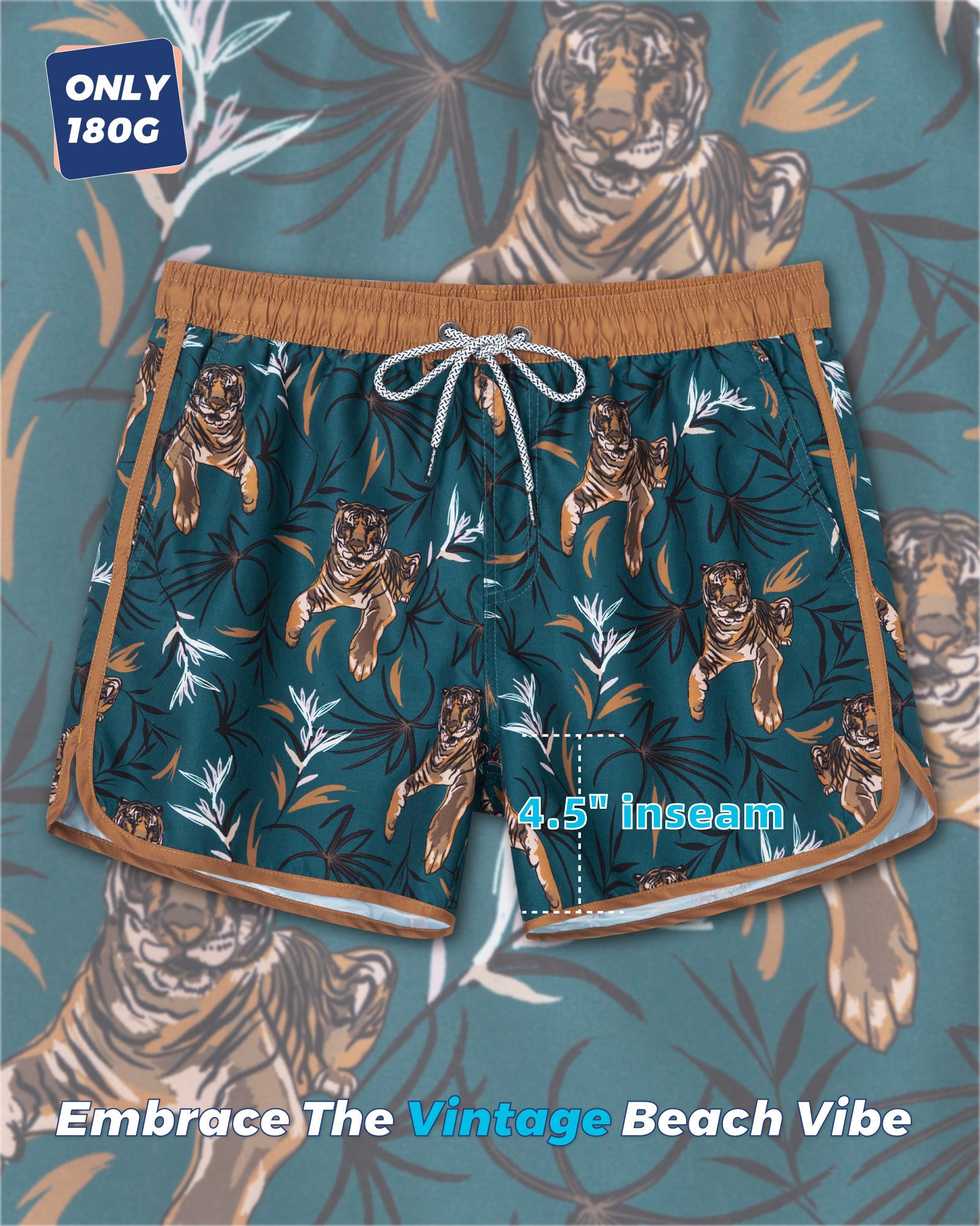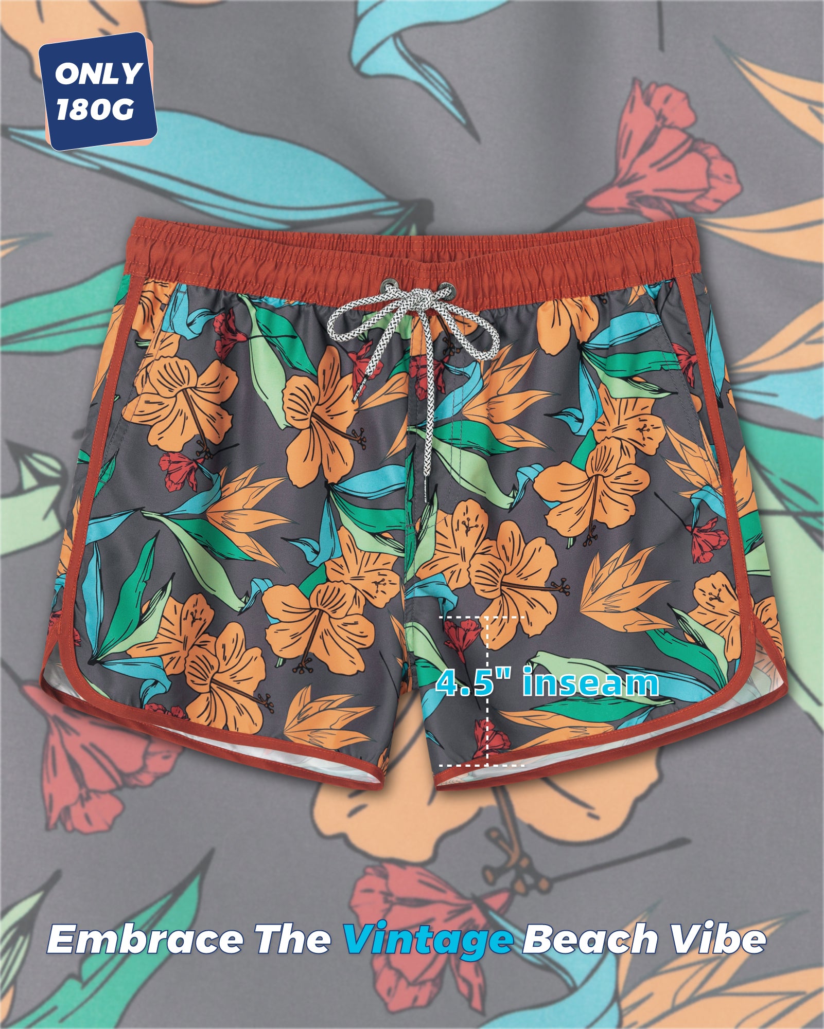 Men‘s Inseam Vintage Swim Trunks With Mesh Lining