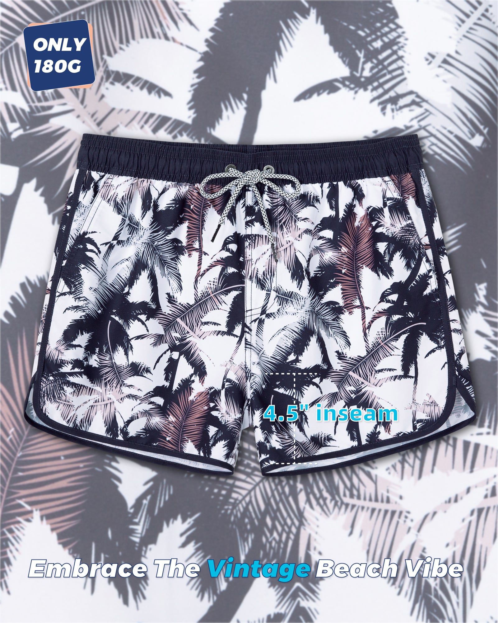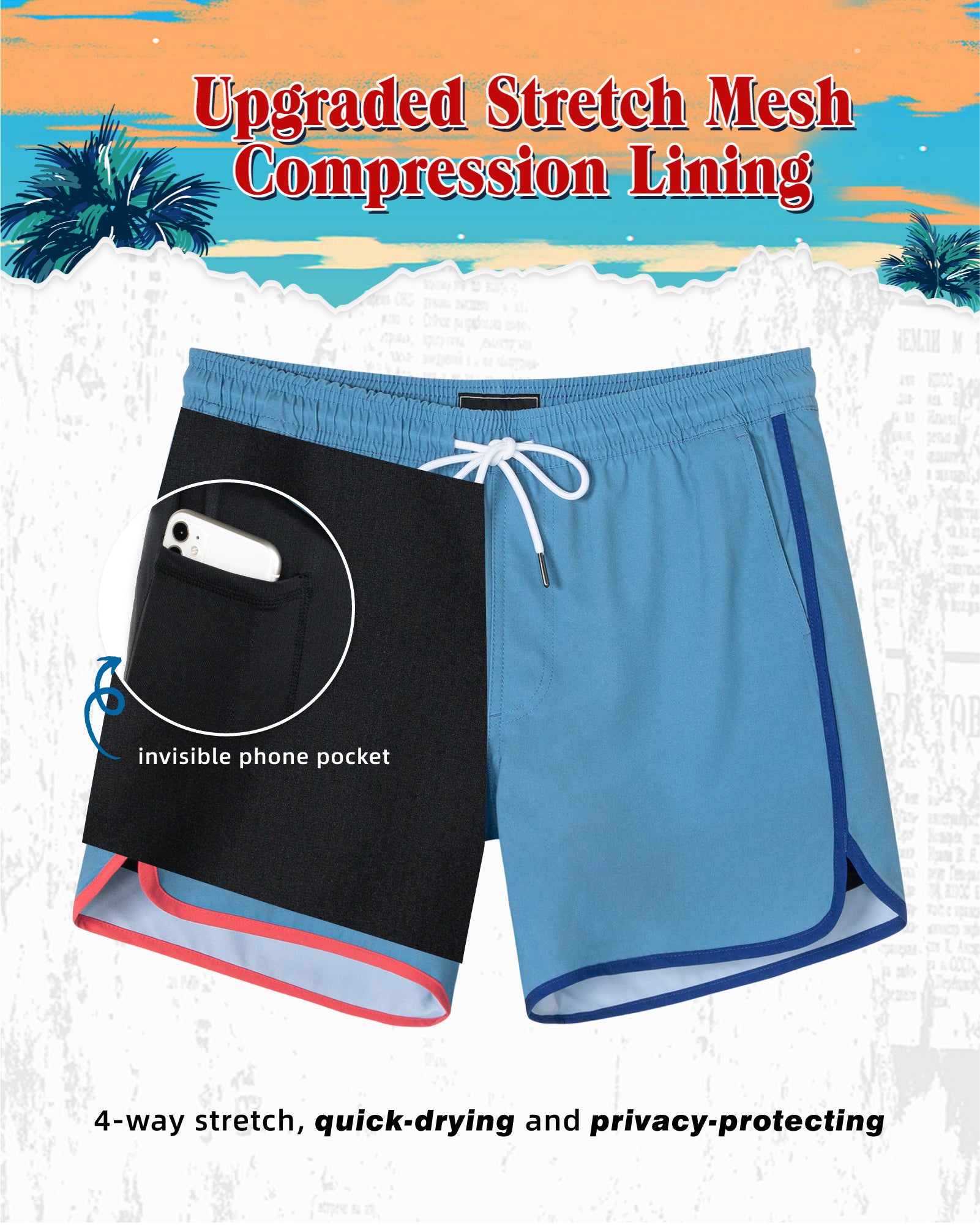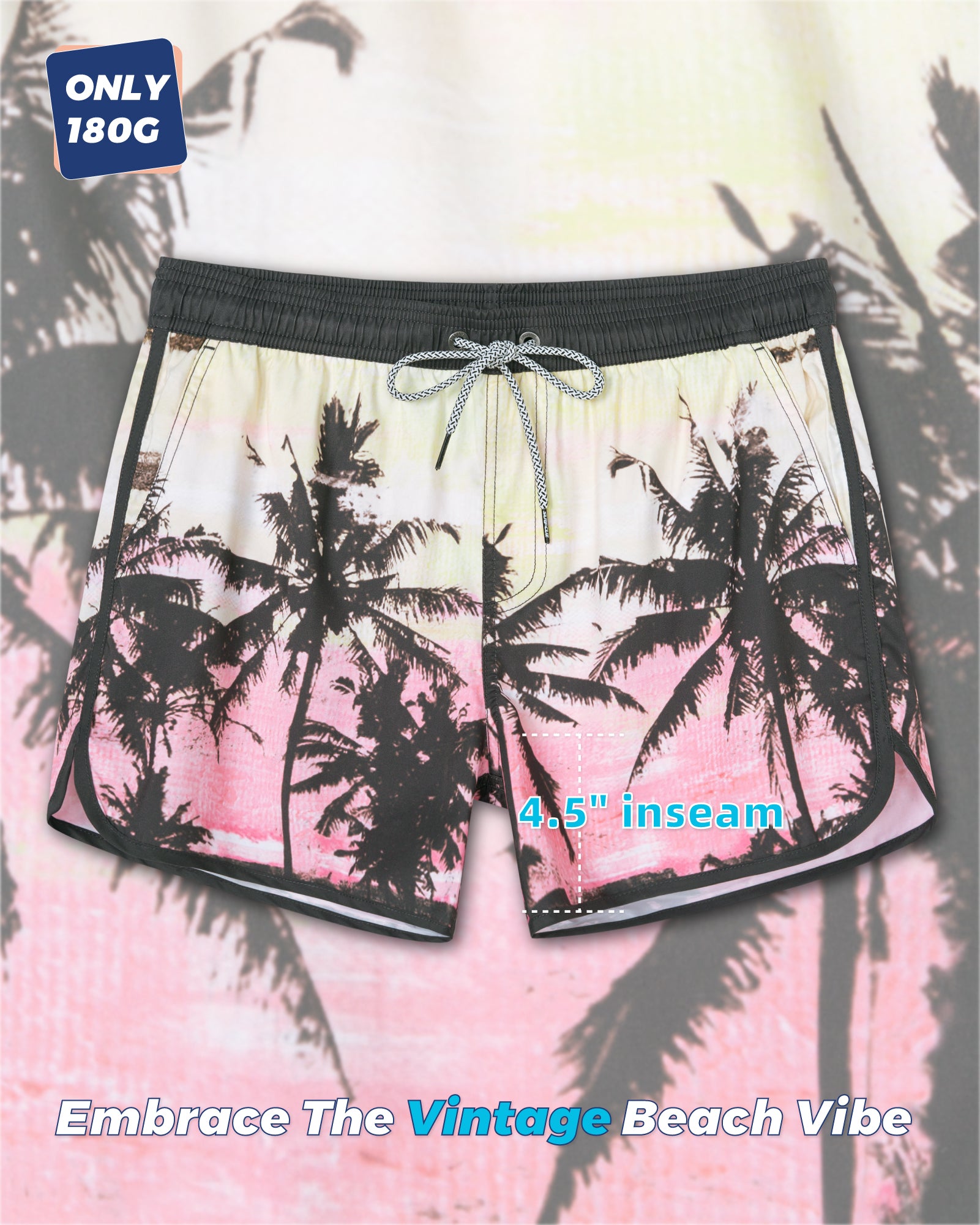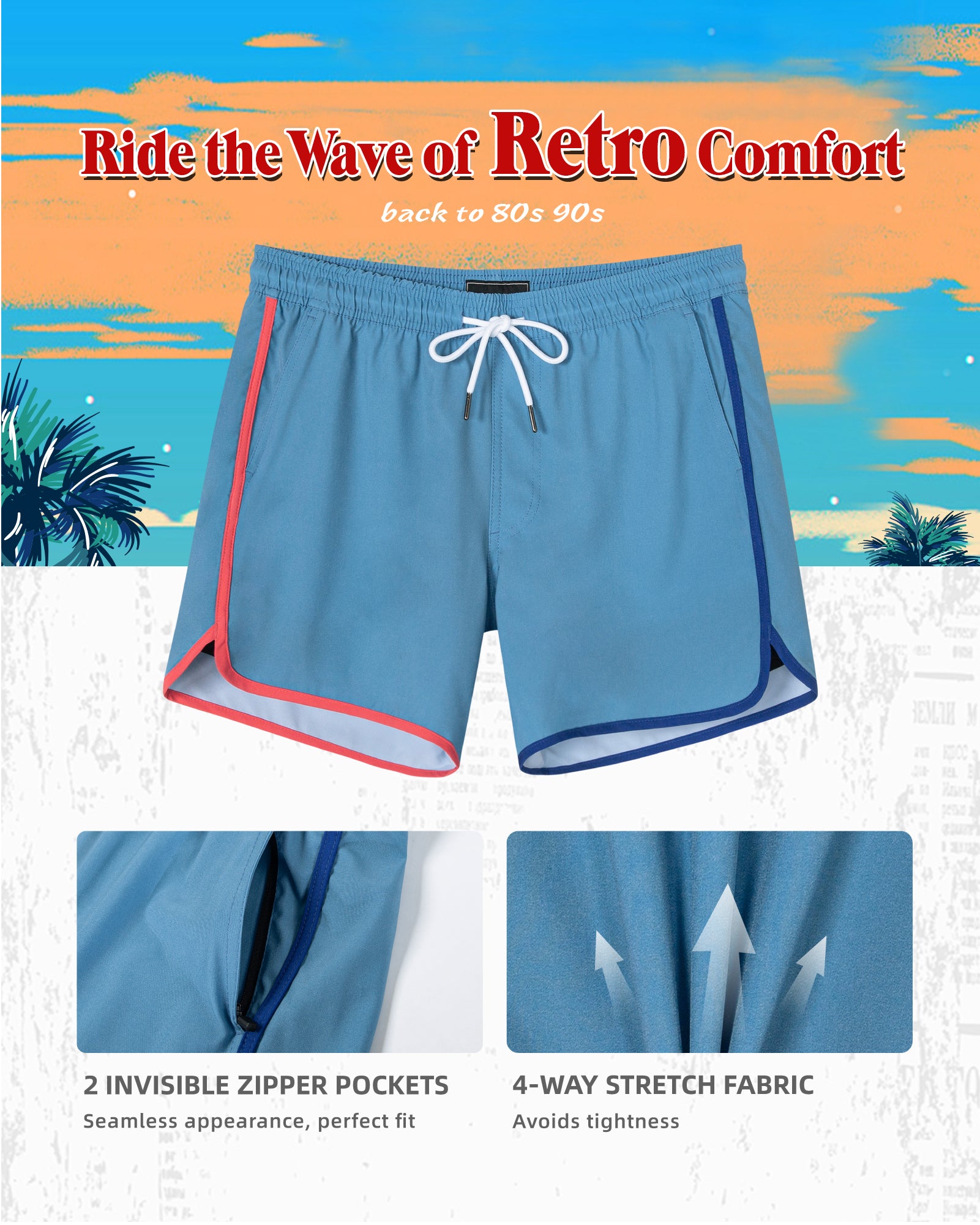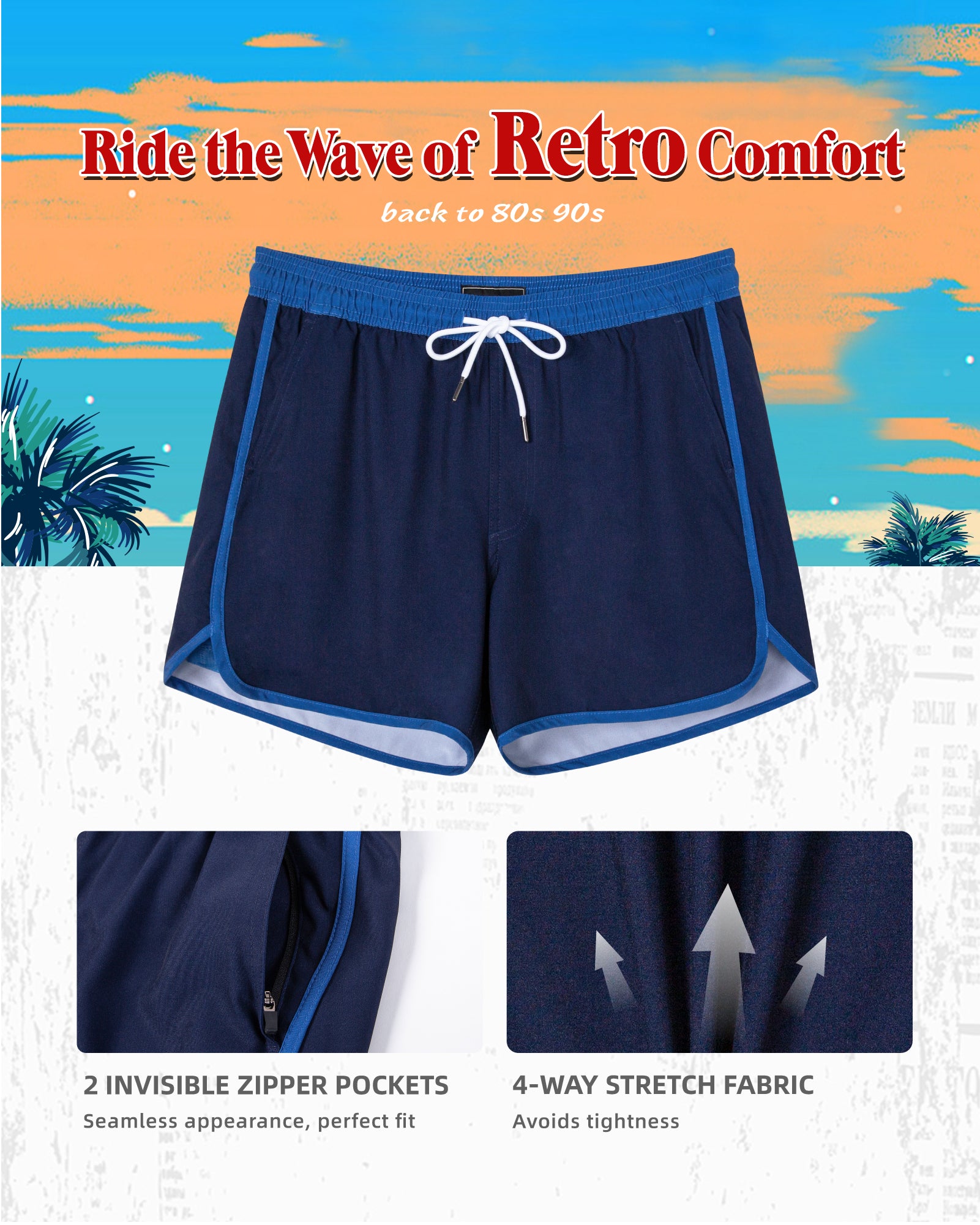 Men‘s Inseam Vintage Swim Trunks With Mesh Lining