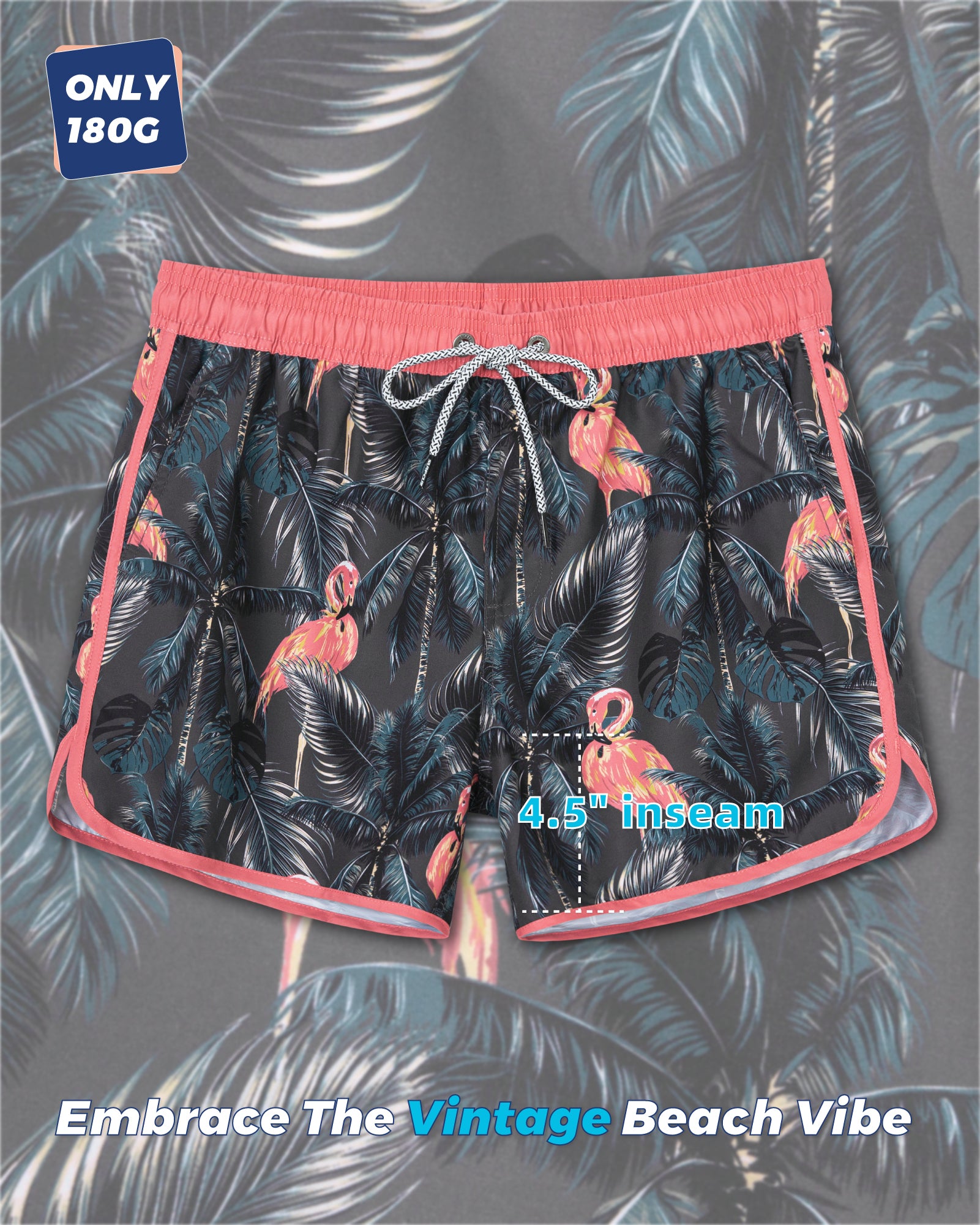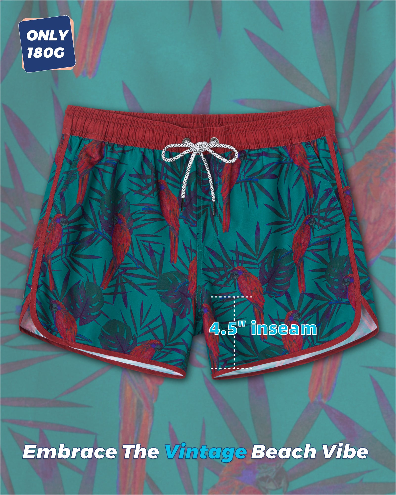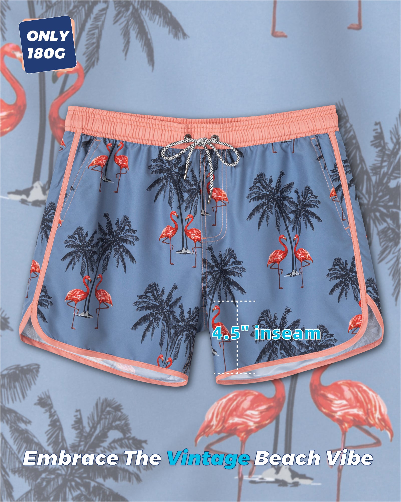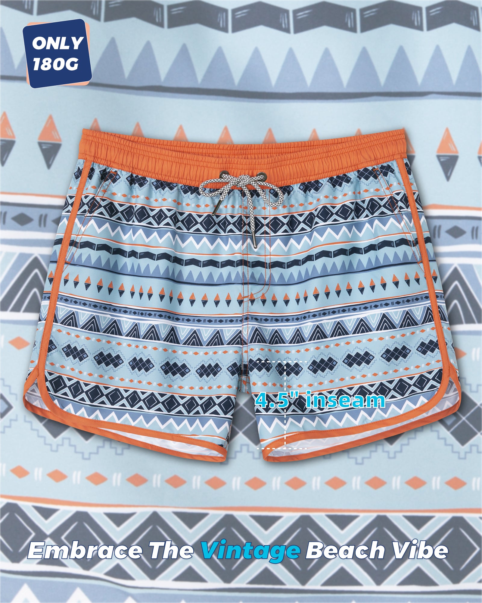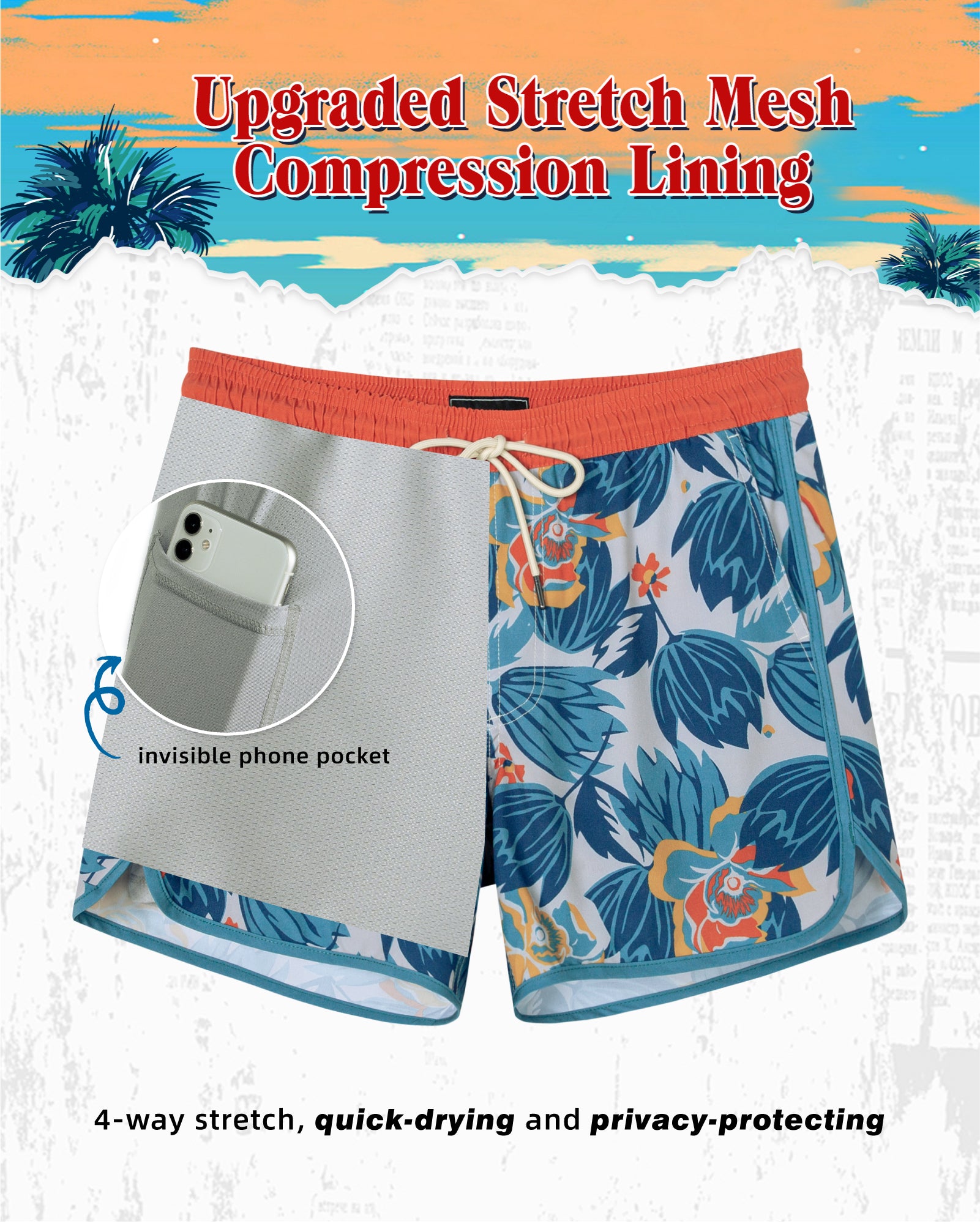 Men‘s Inseam Vintage Swim Trunks With Mesh Lining