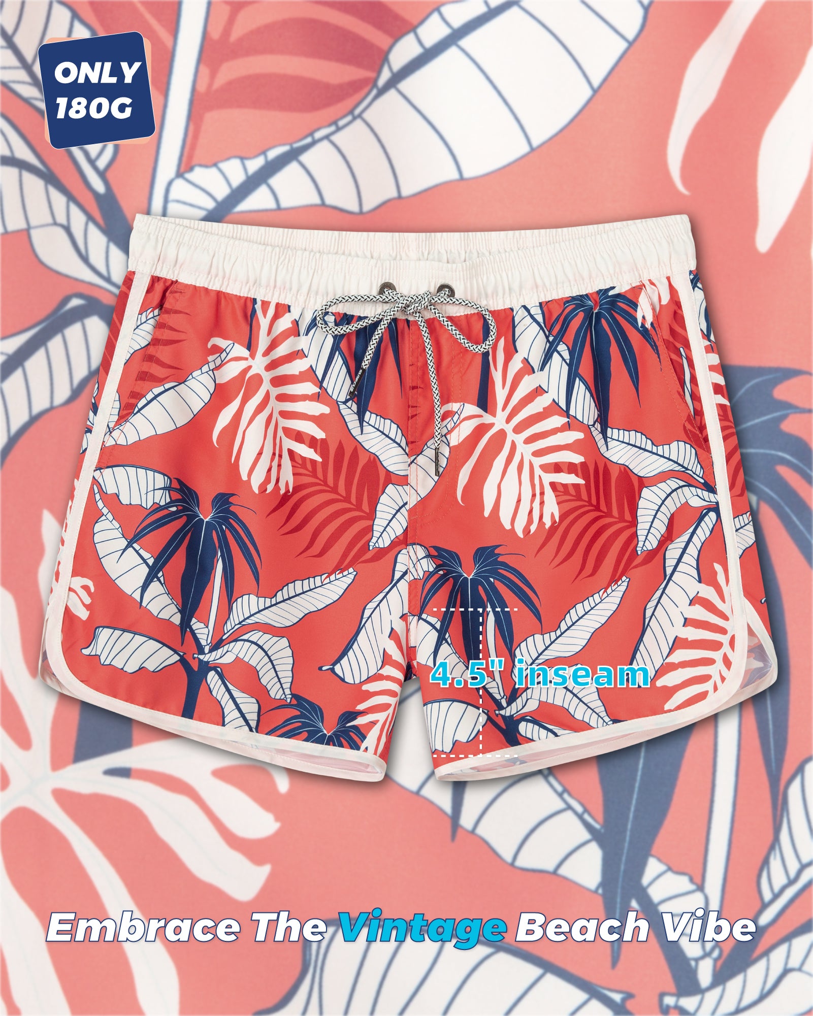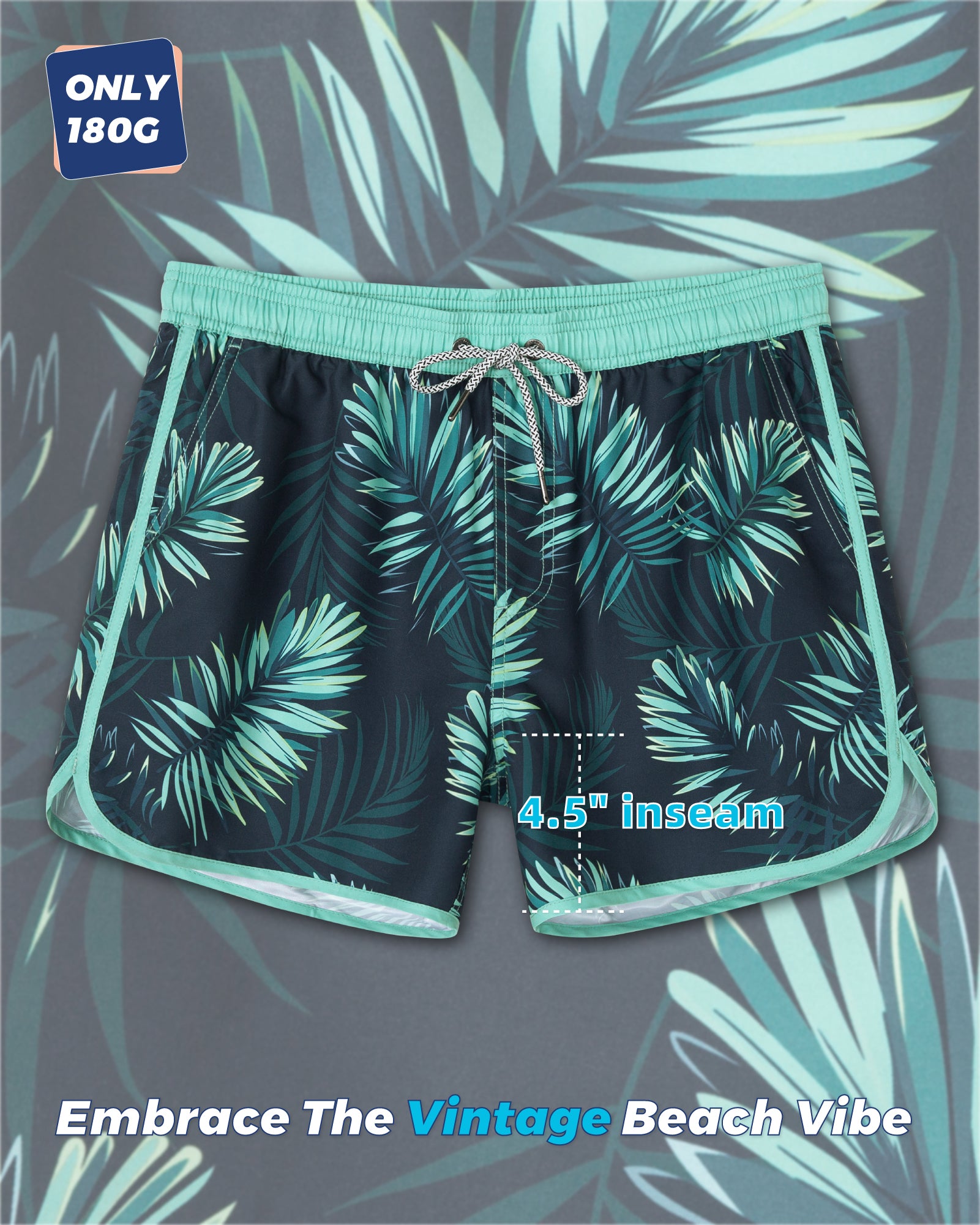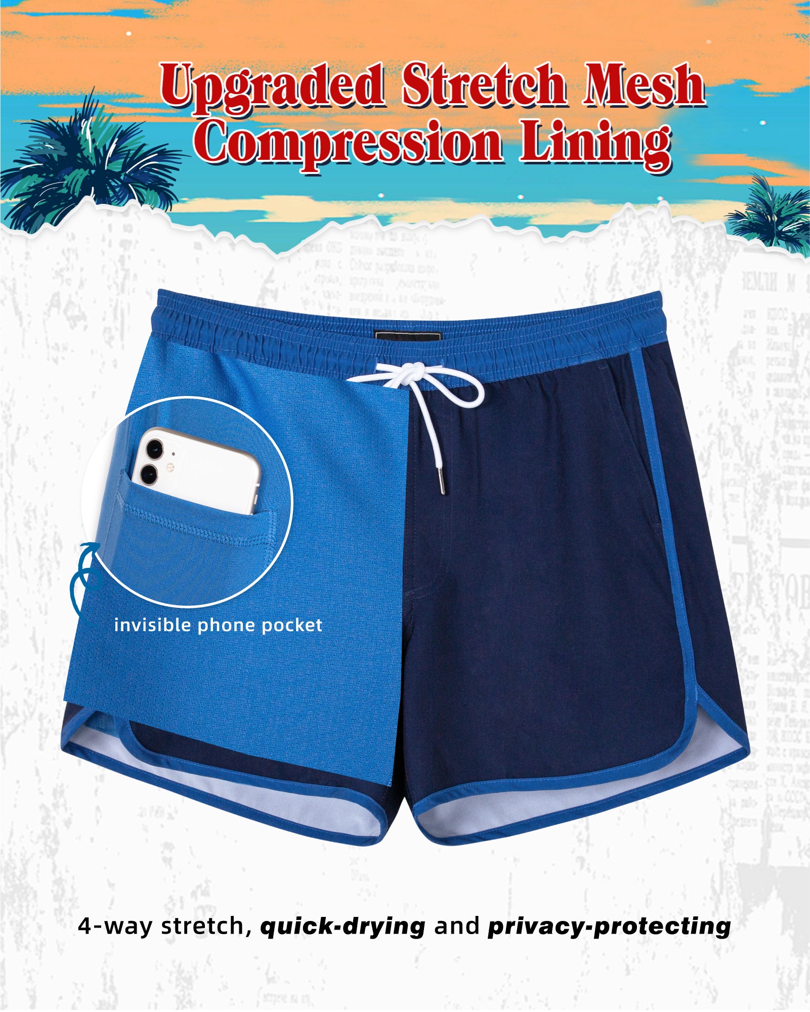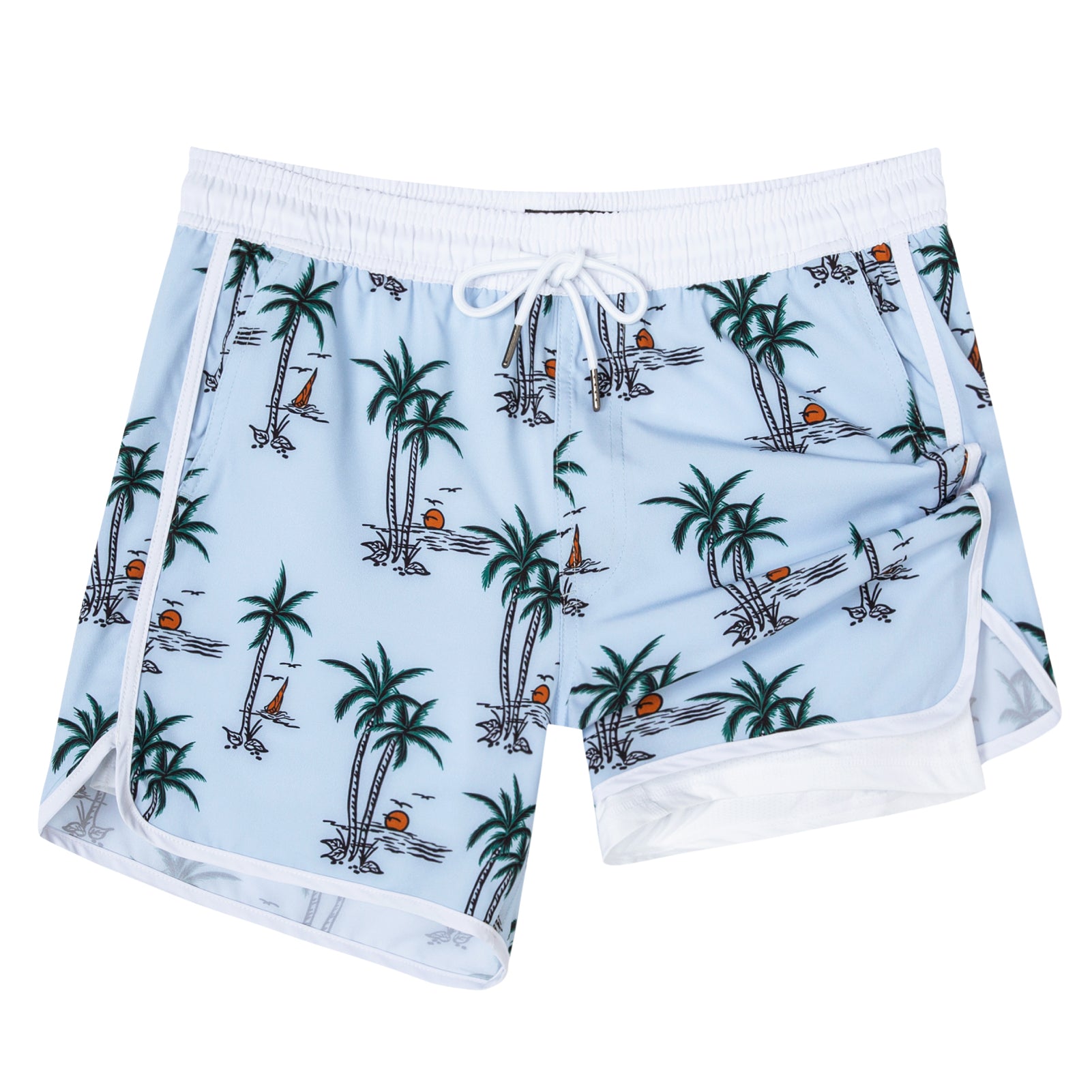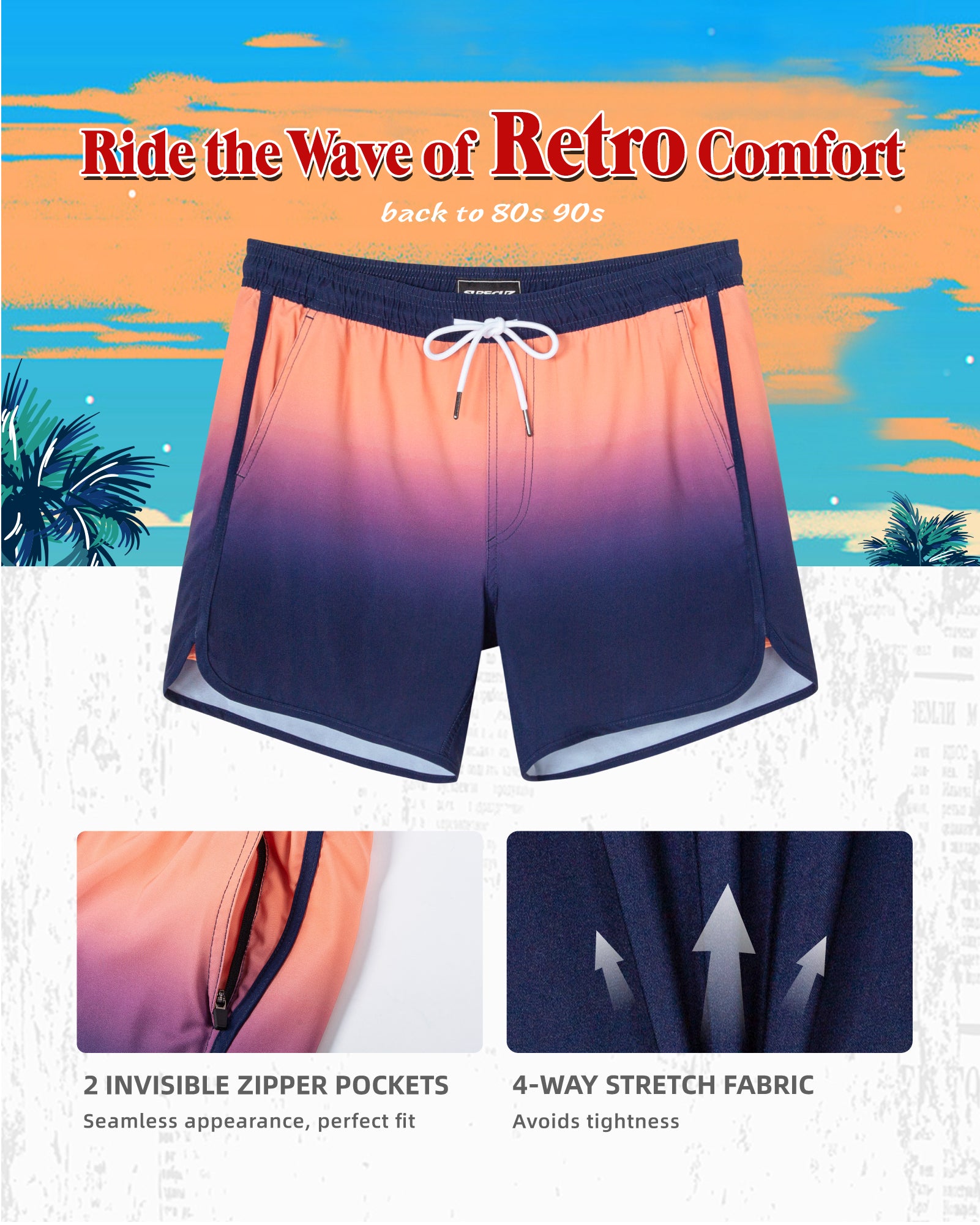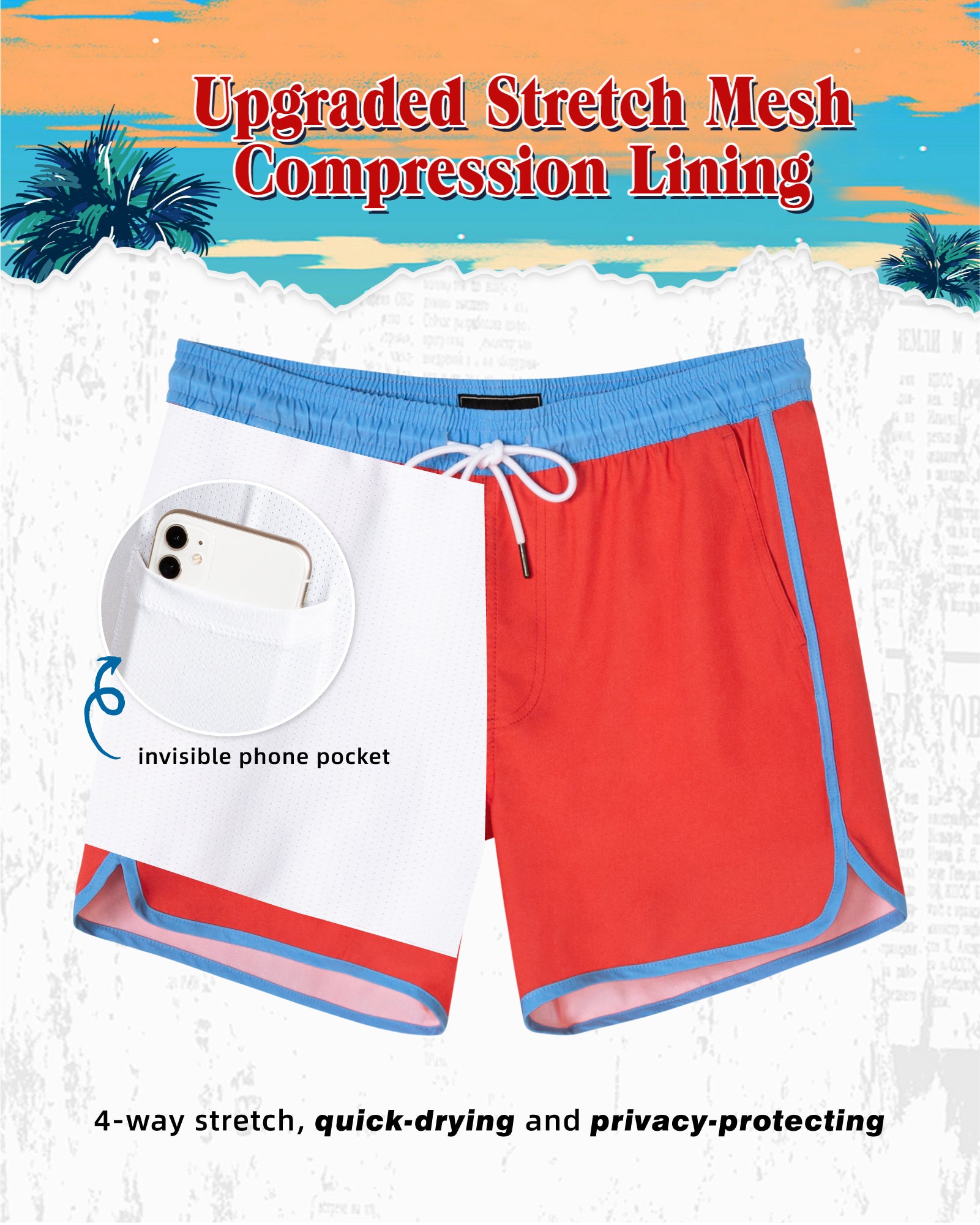 Men‘s Inseam Vintage Swim Trunks With Mesh Lining
