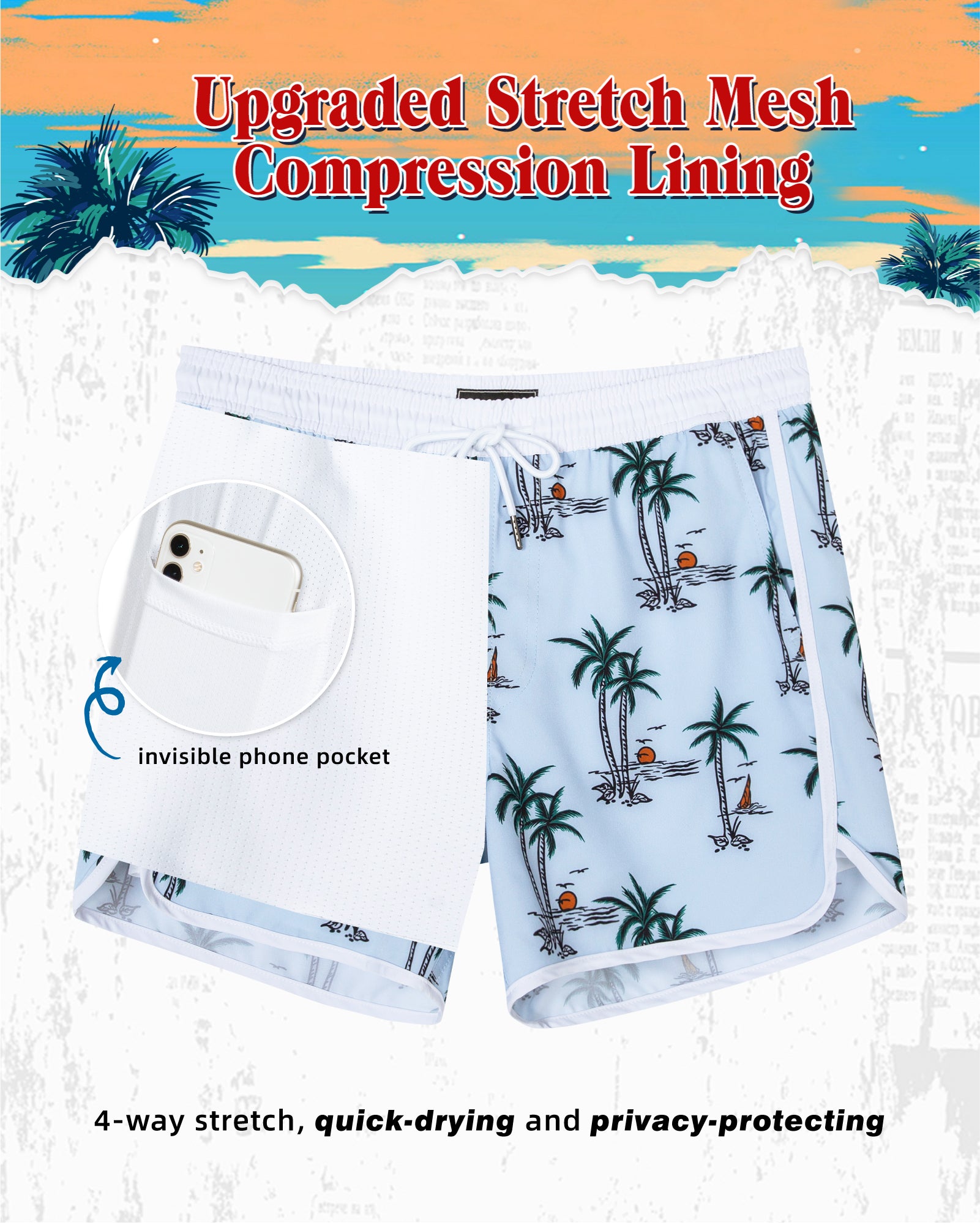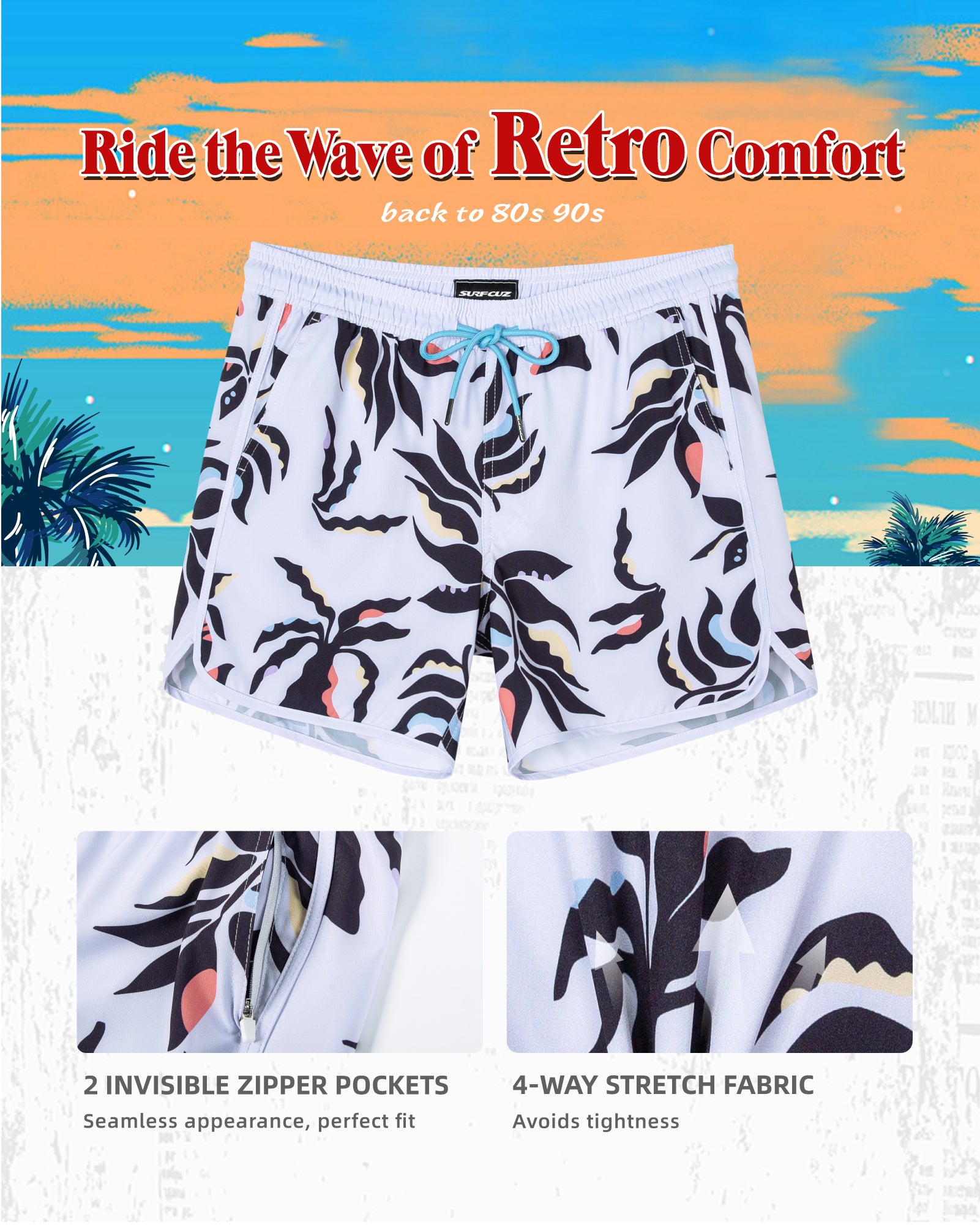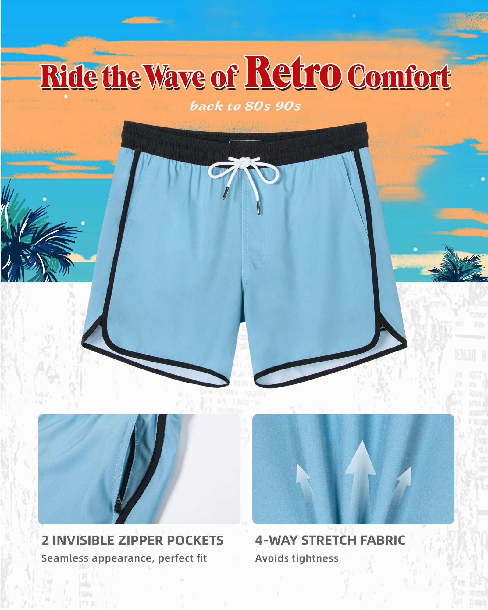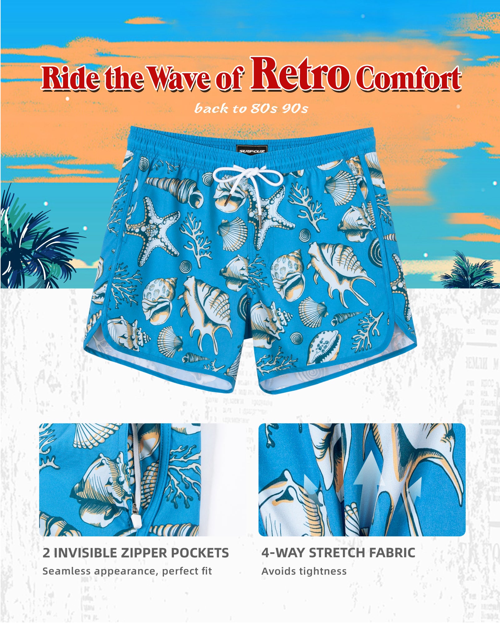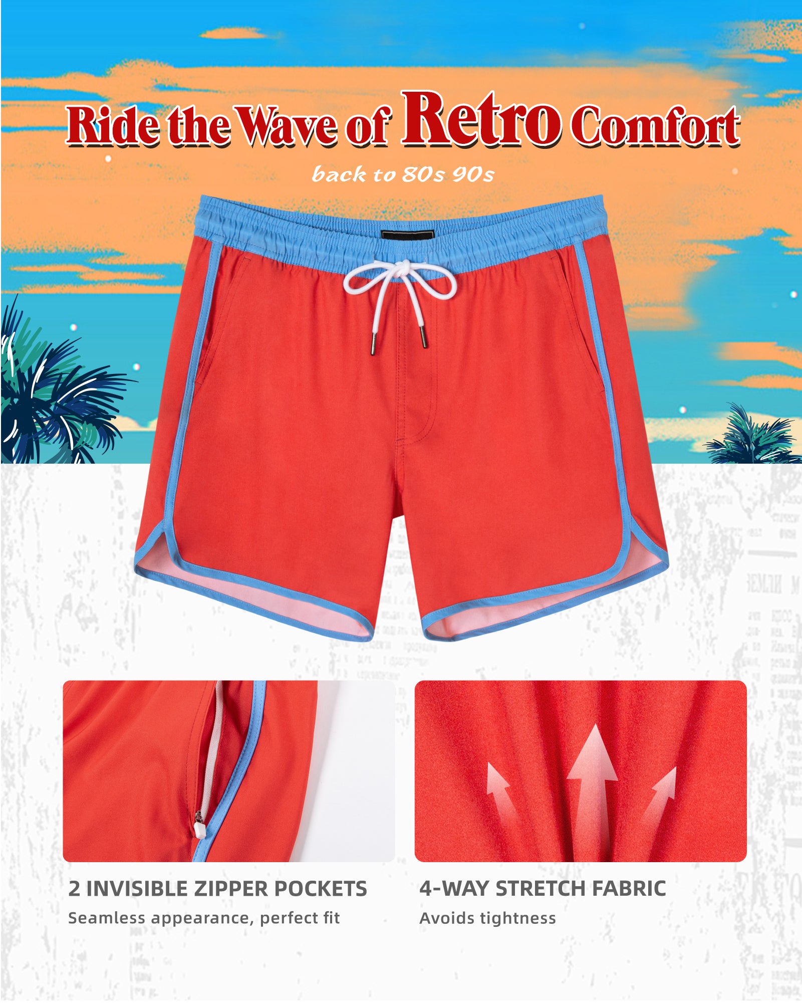 Men‘s Inseam Vintage Swim Trunks With Mesh Lining