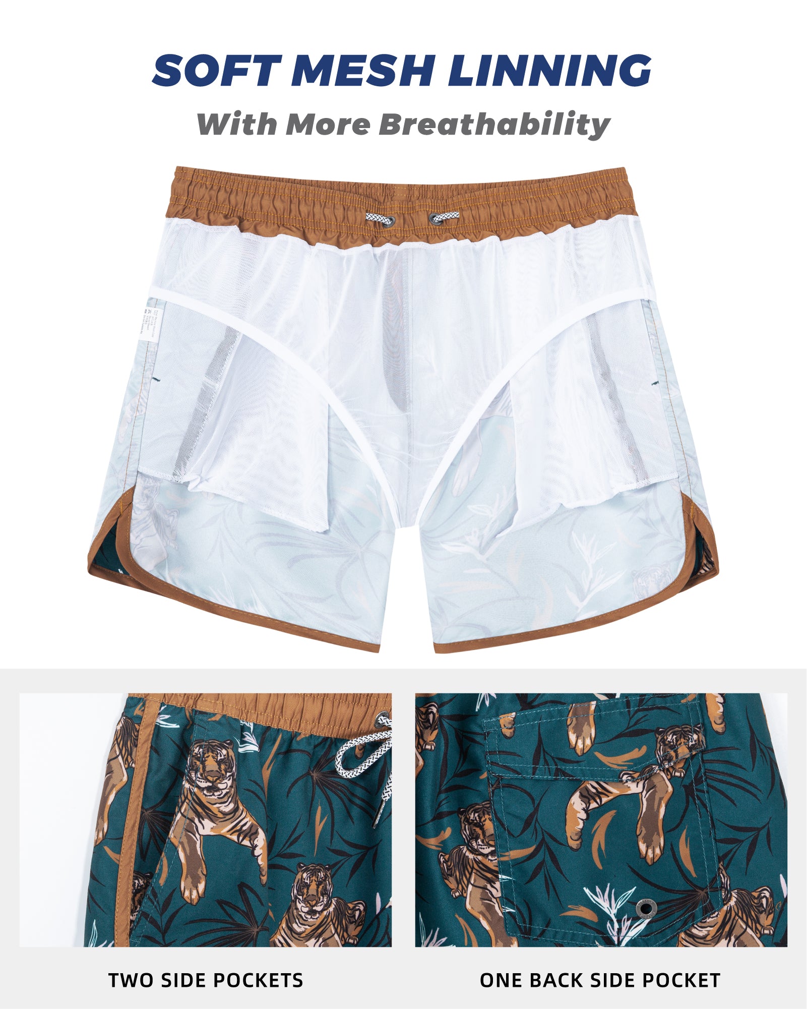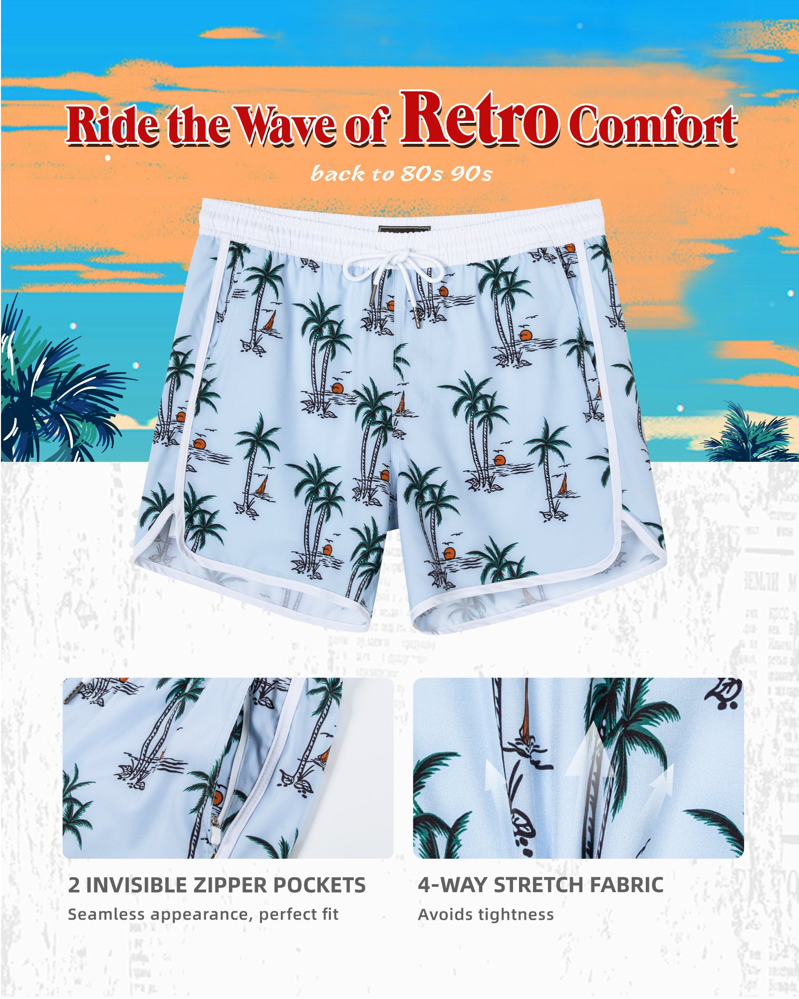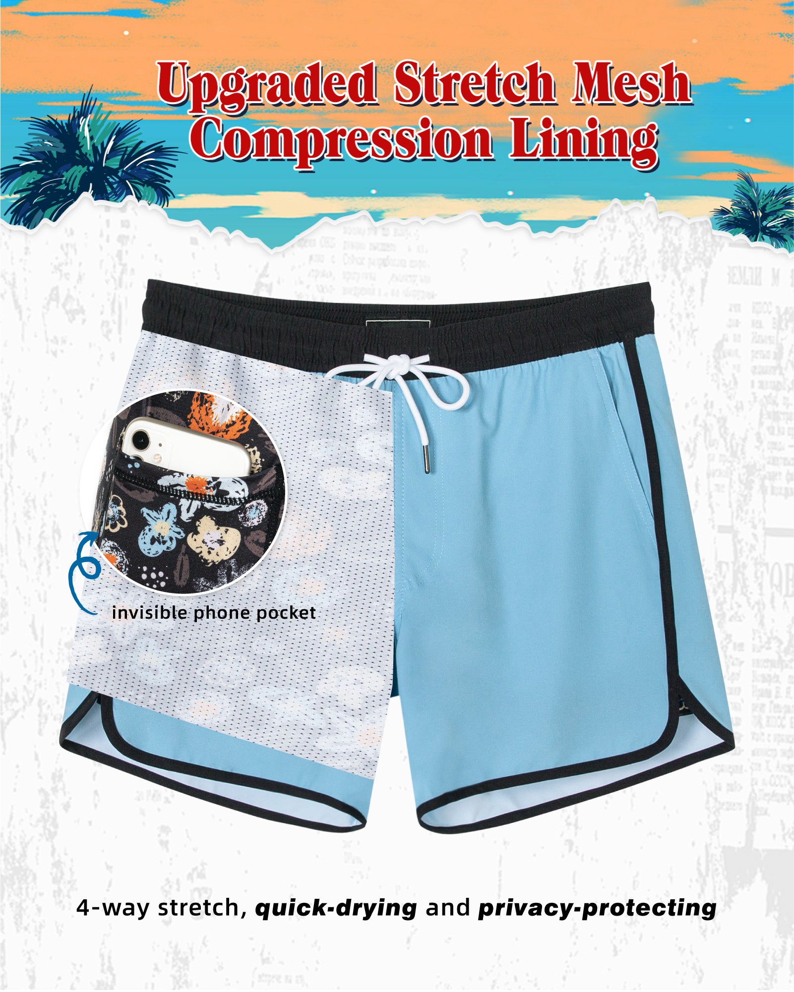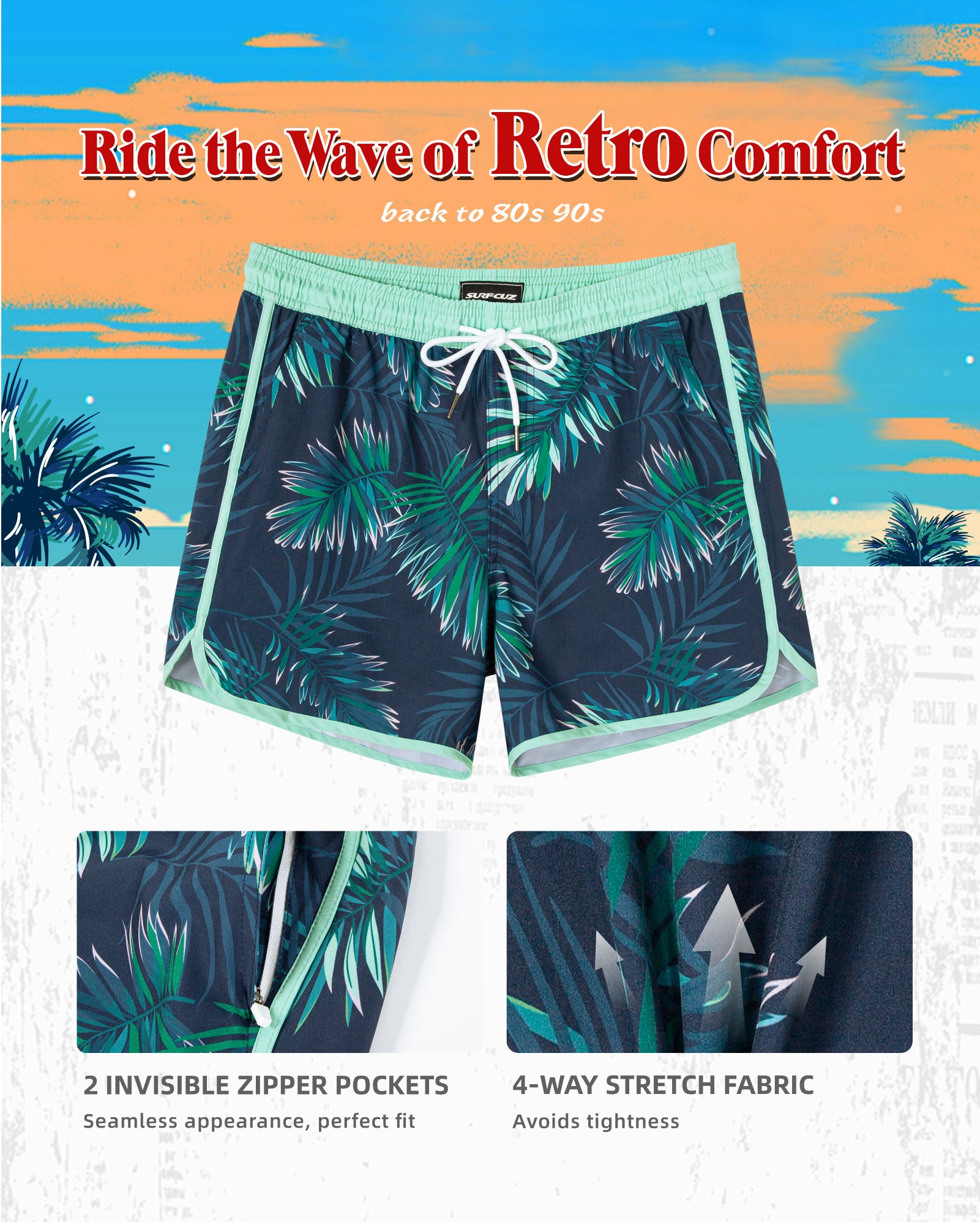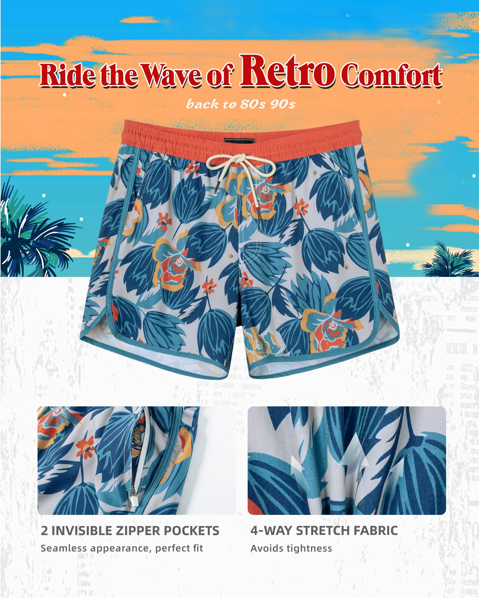 Men‘s Inseam Vintage Swim Trunks With Mesh Lining