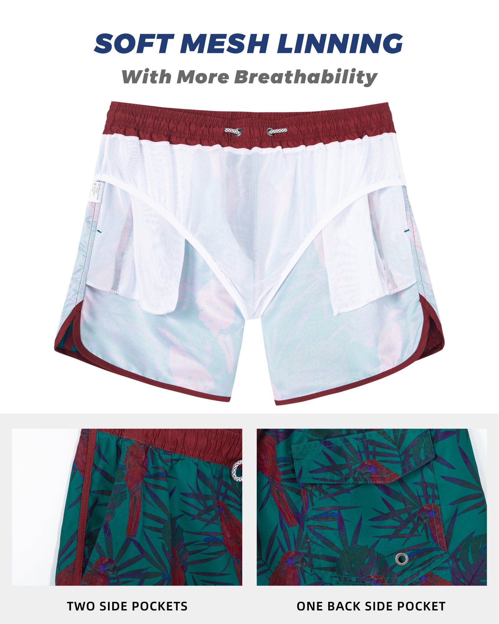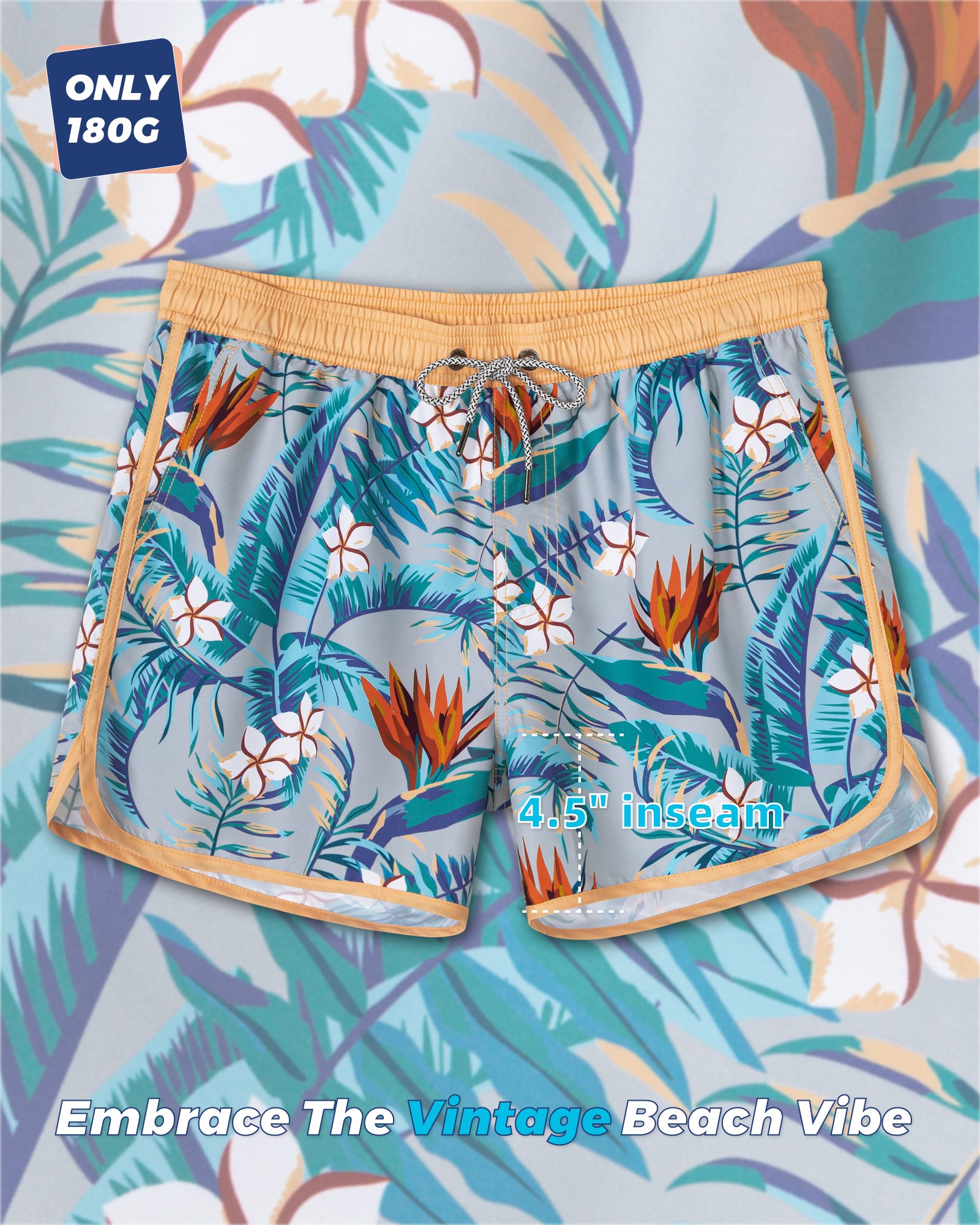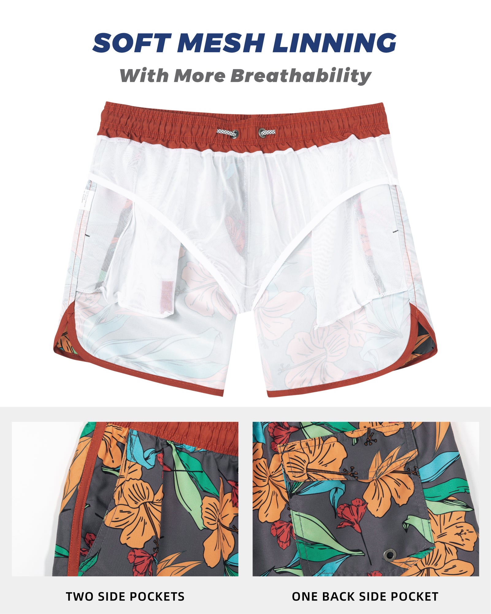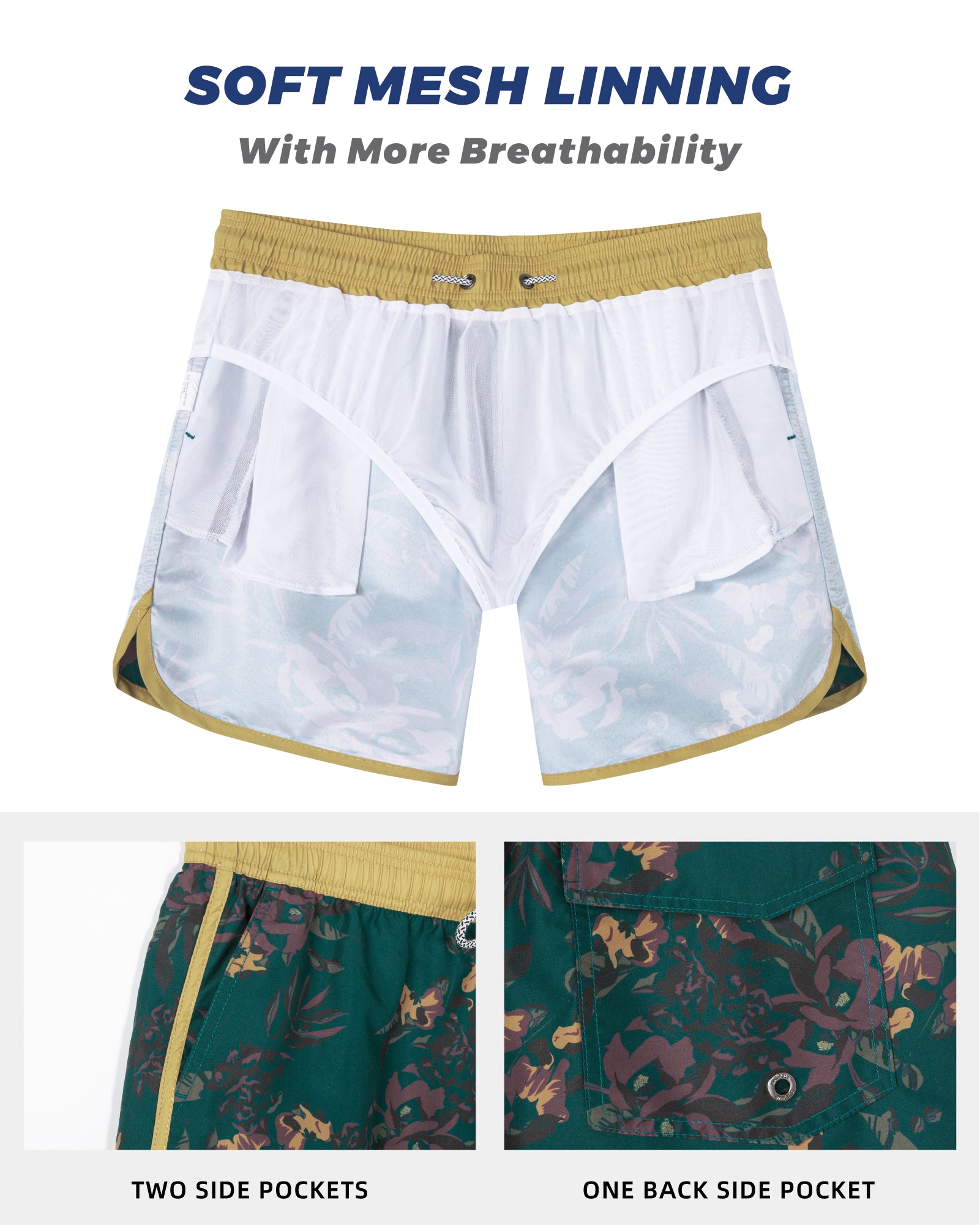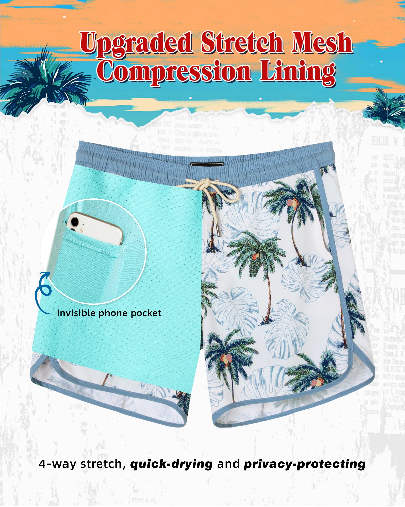 Men‘s Inseam Vintage Swim Trunks With Mesh Lining