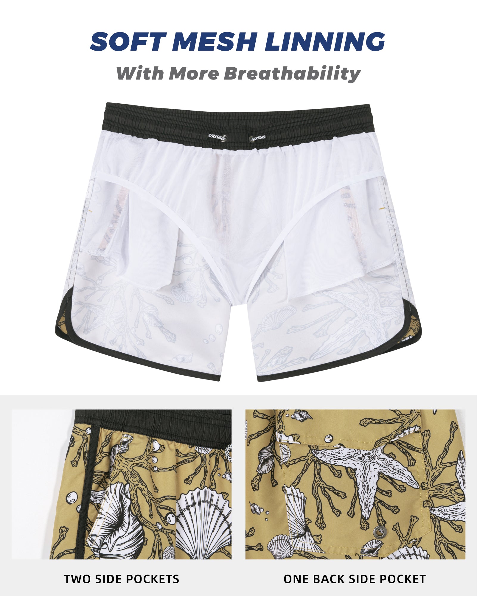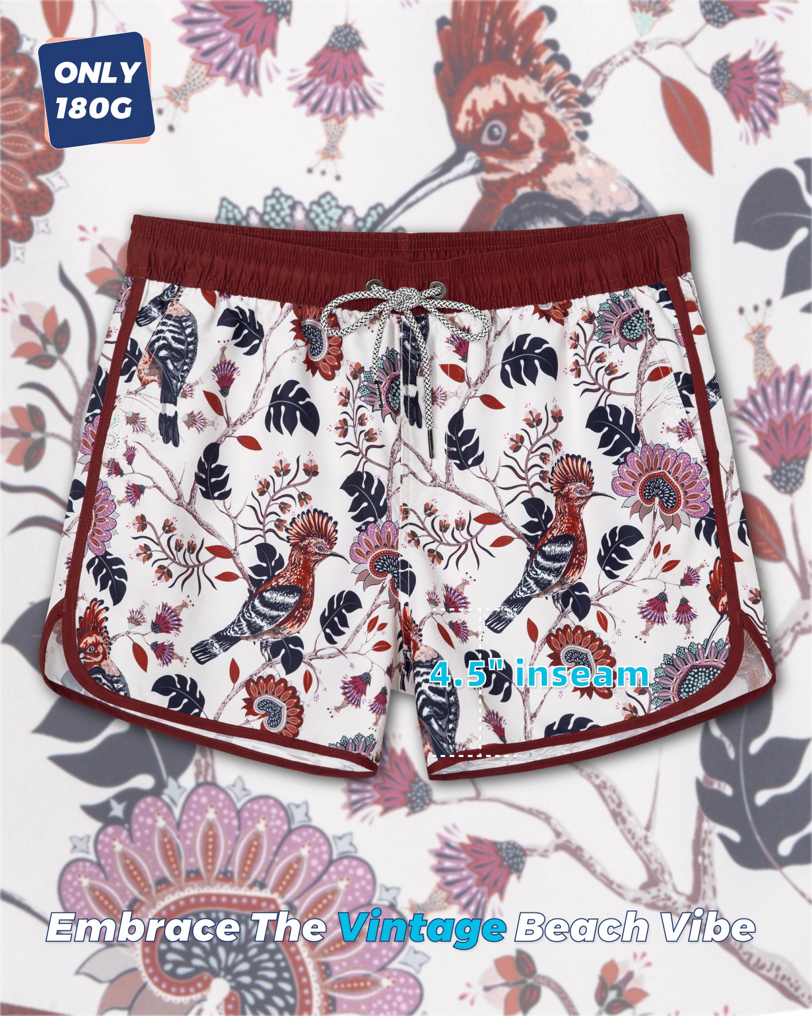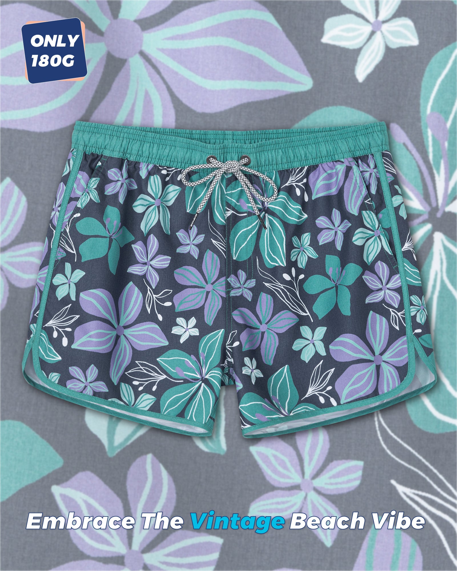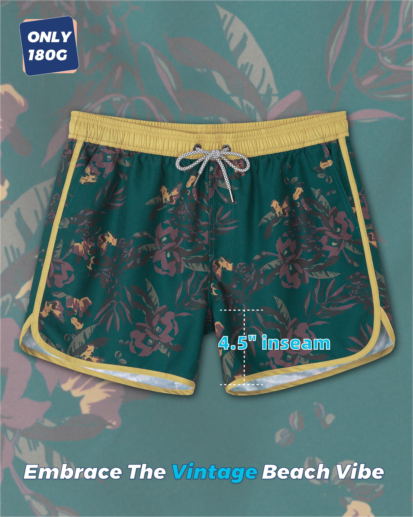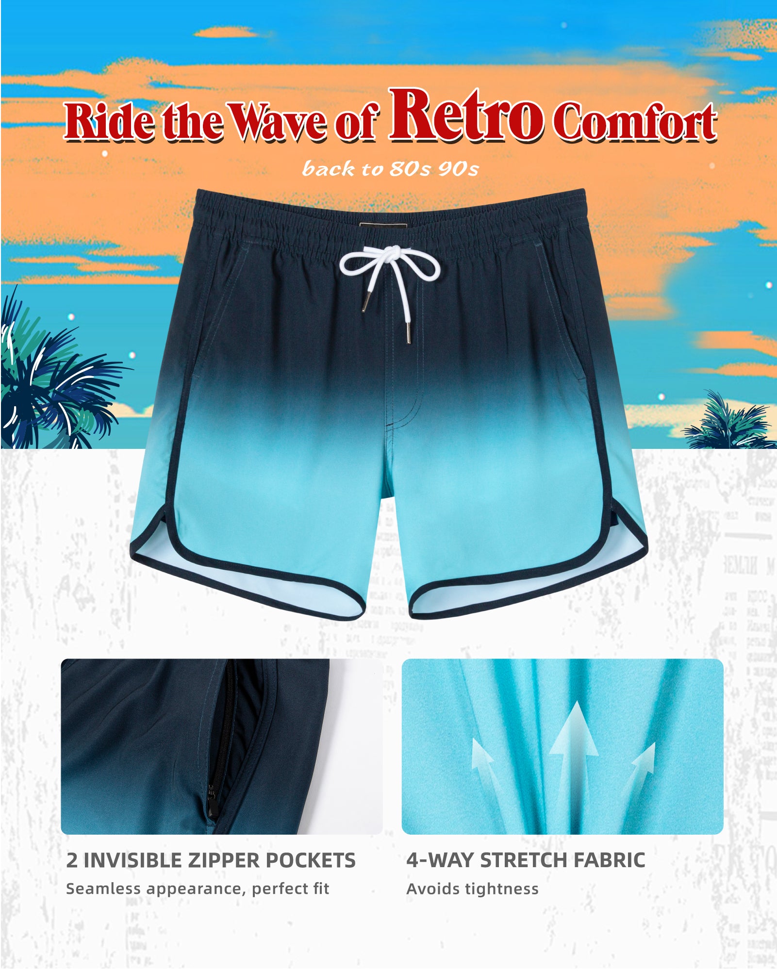 Men‘s Inseam Vintage Swim Trunks With Mesh Lining