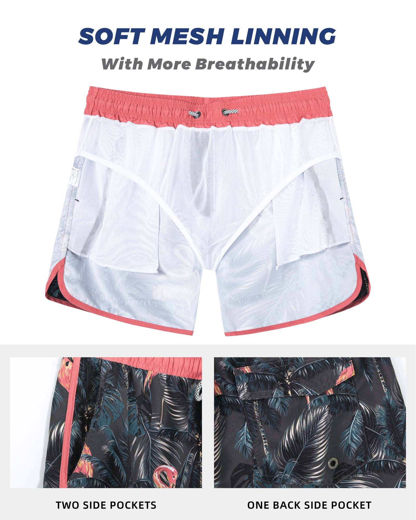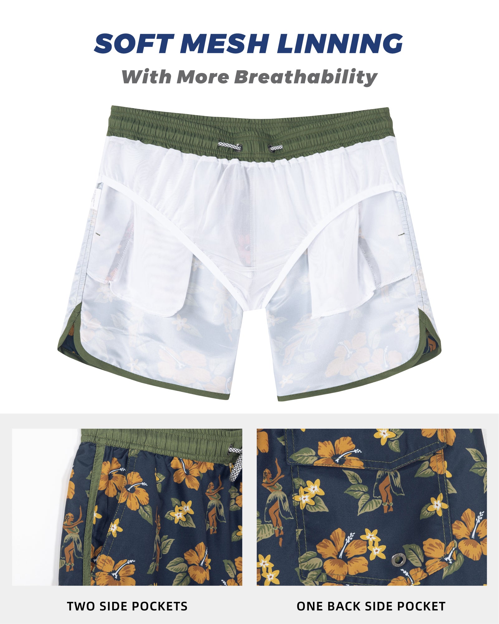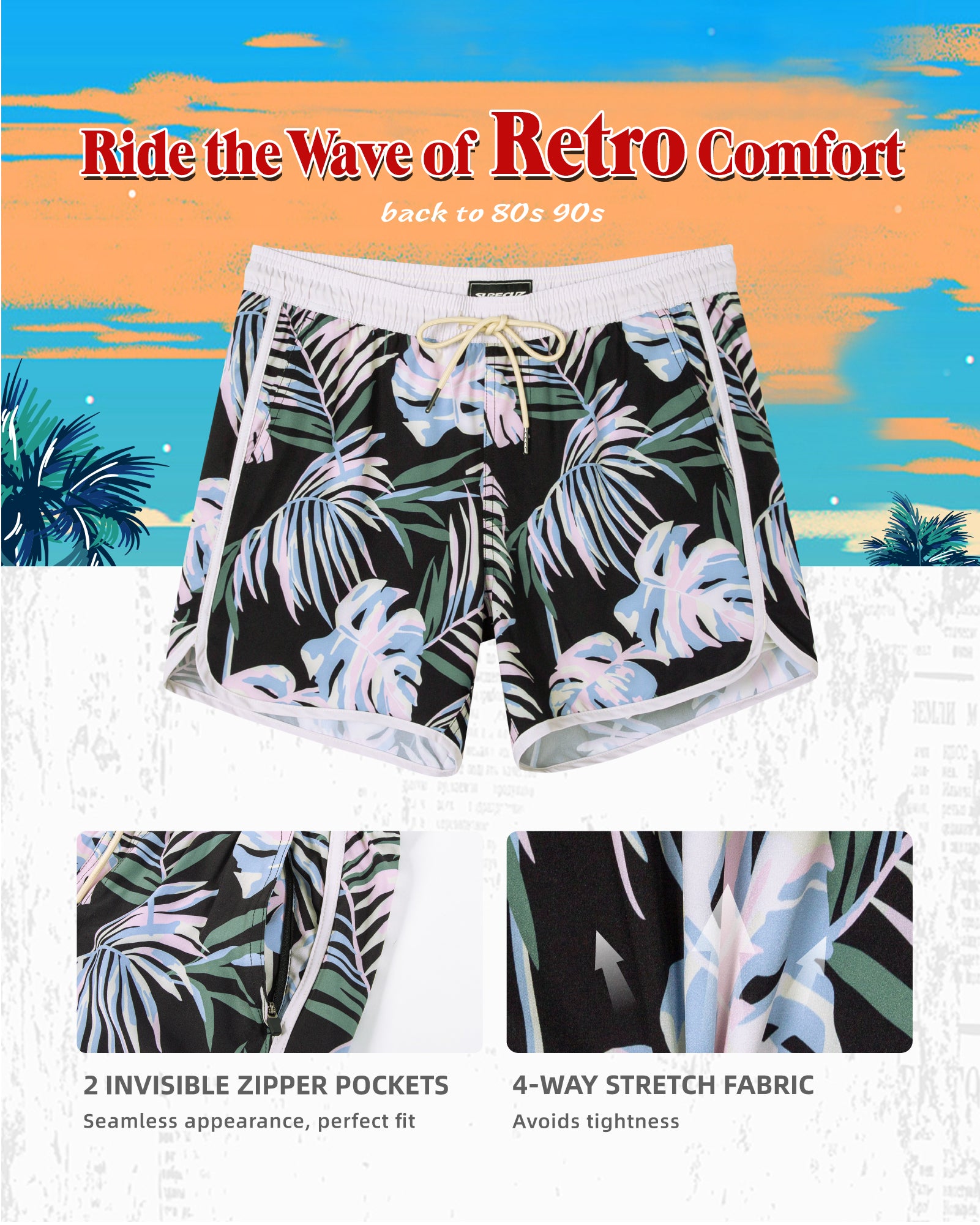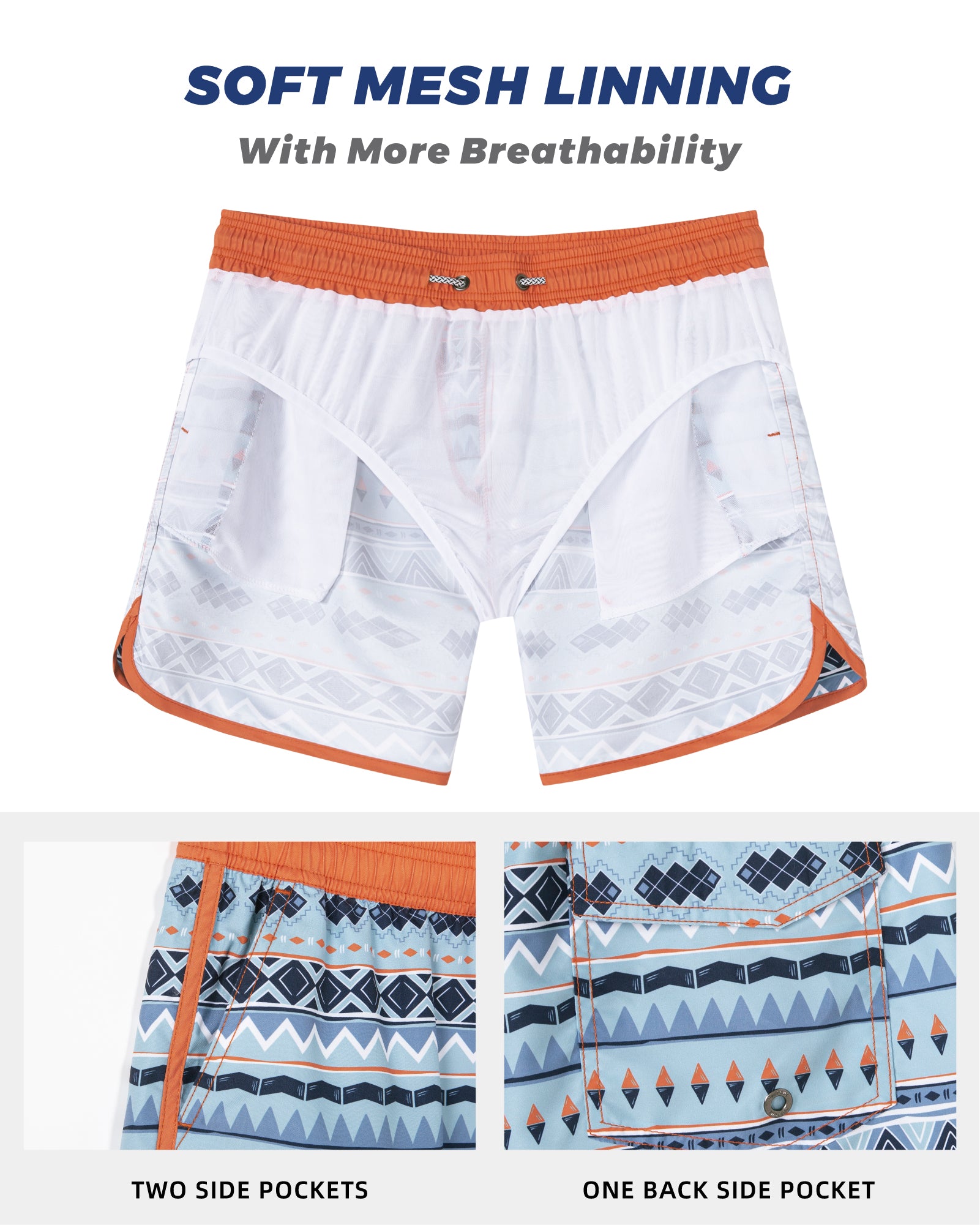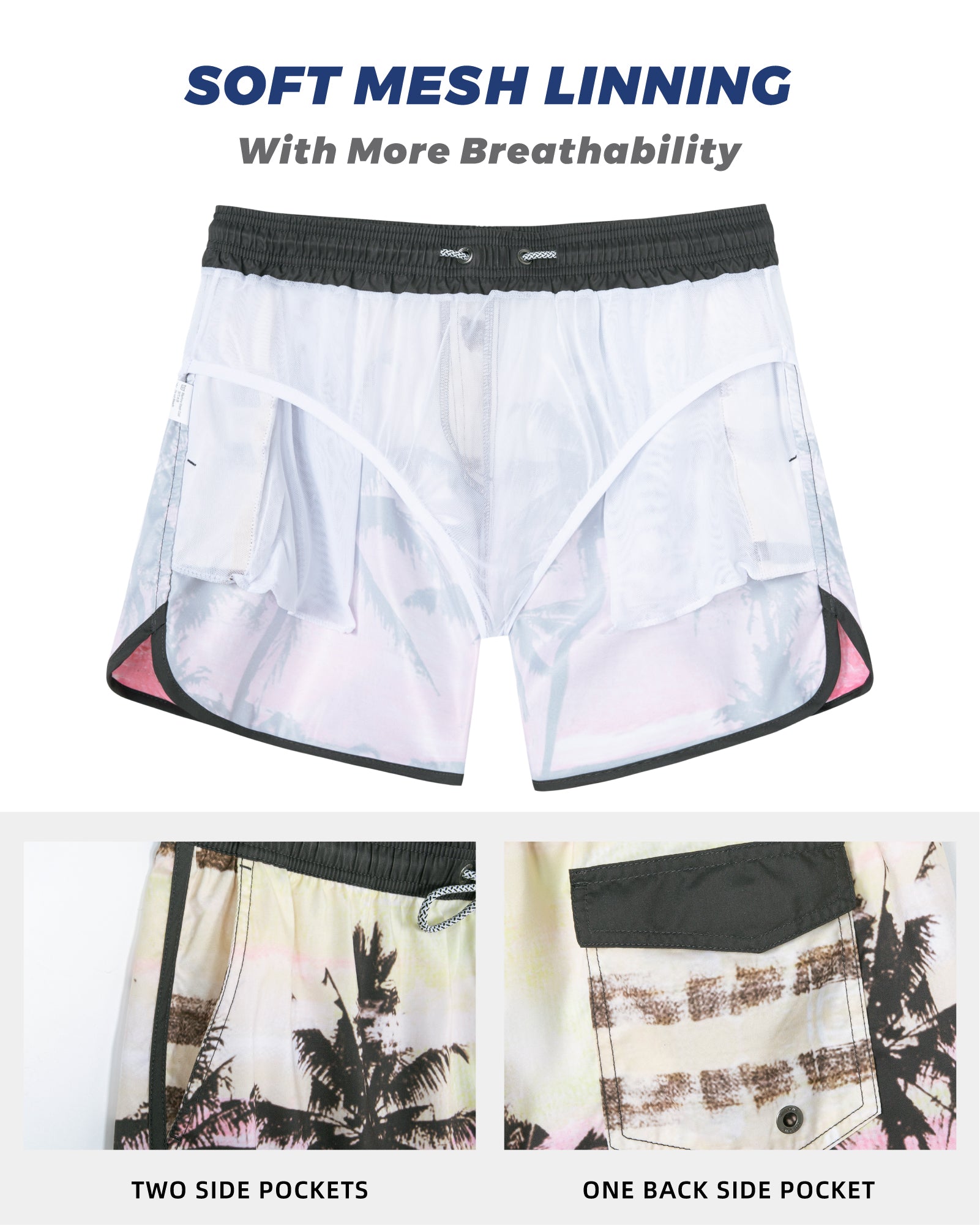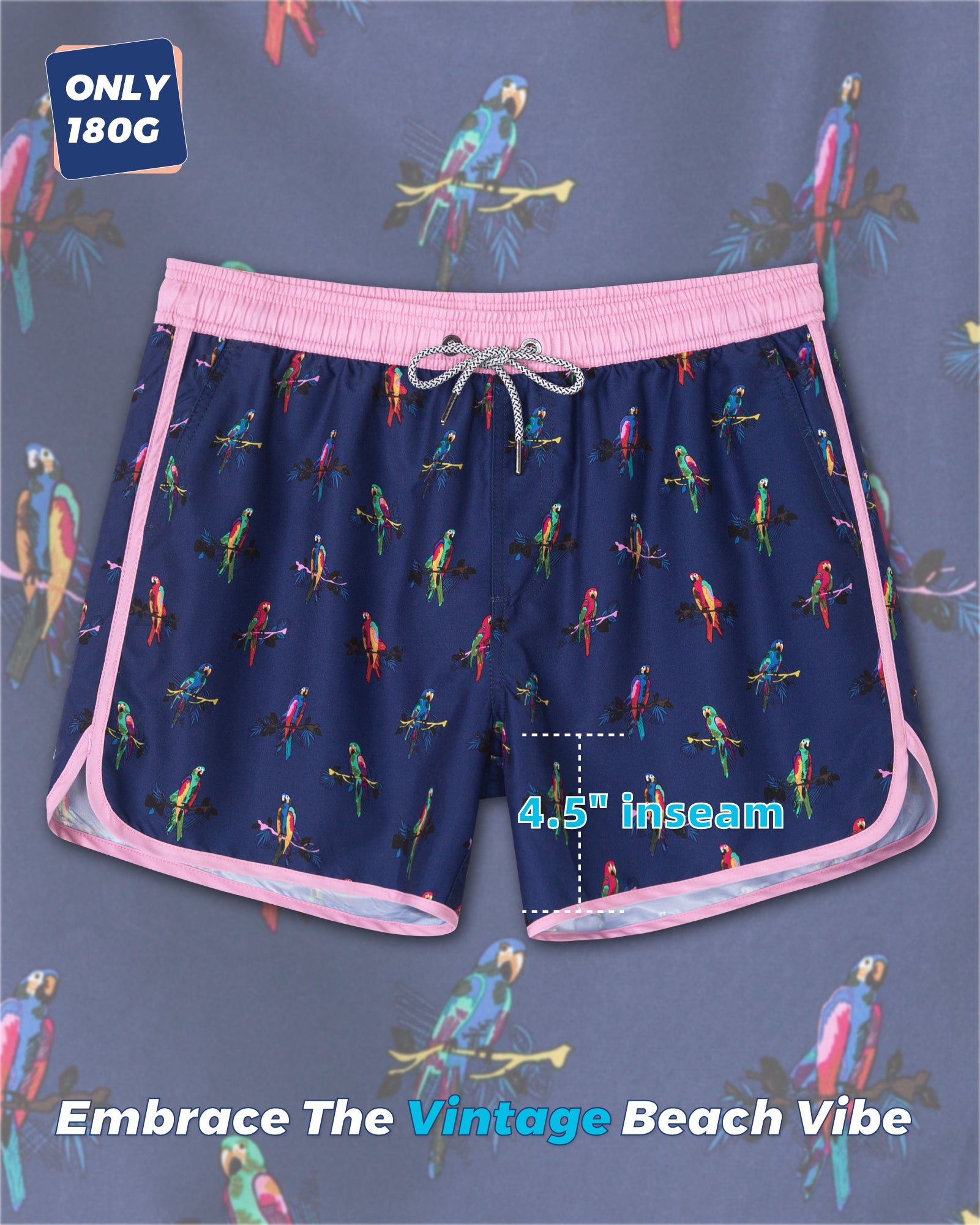 Men‘s Inseam Vintage Swim Trunks With Mesh Lining