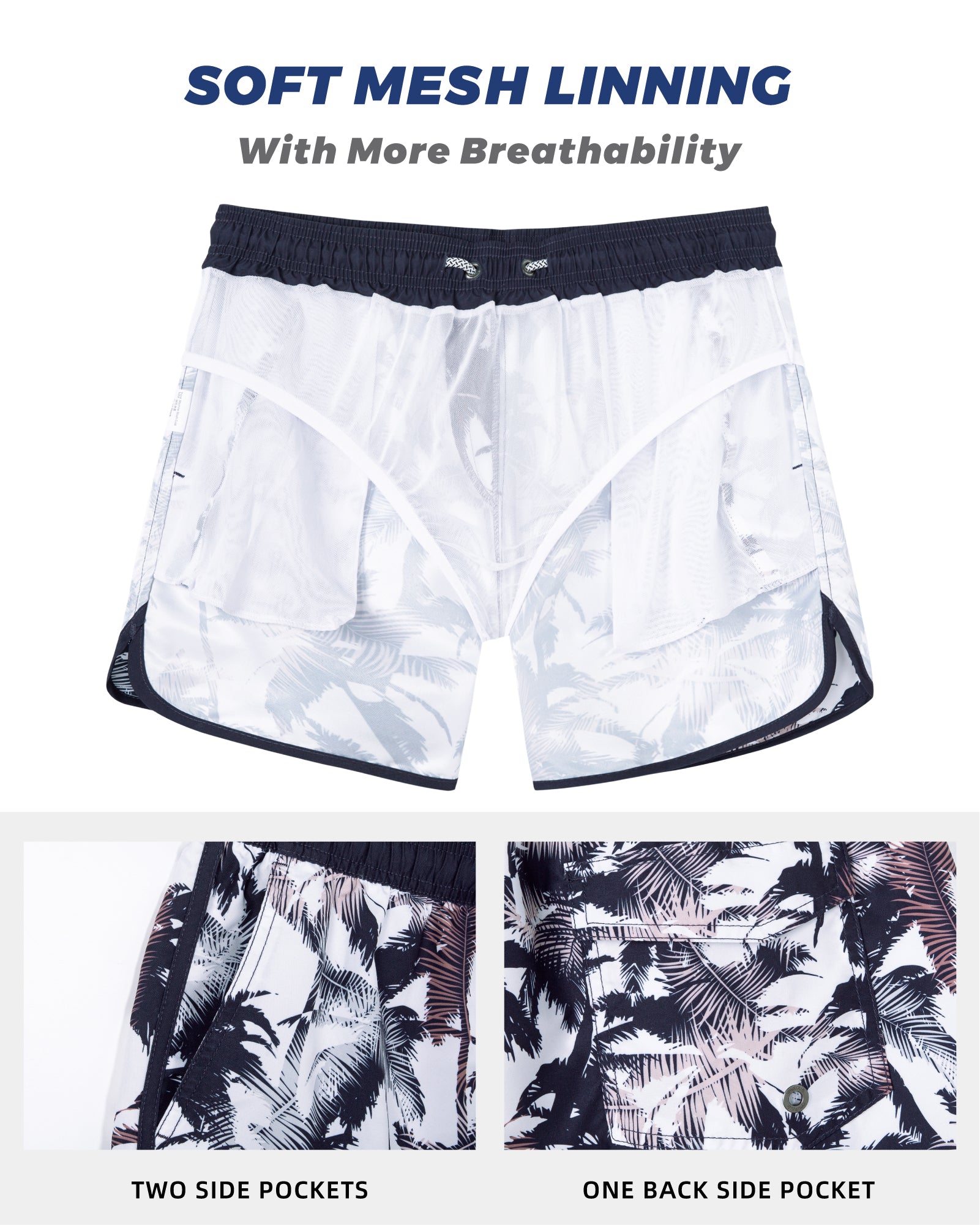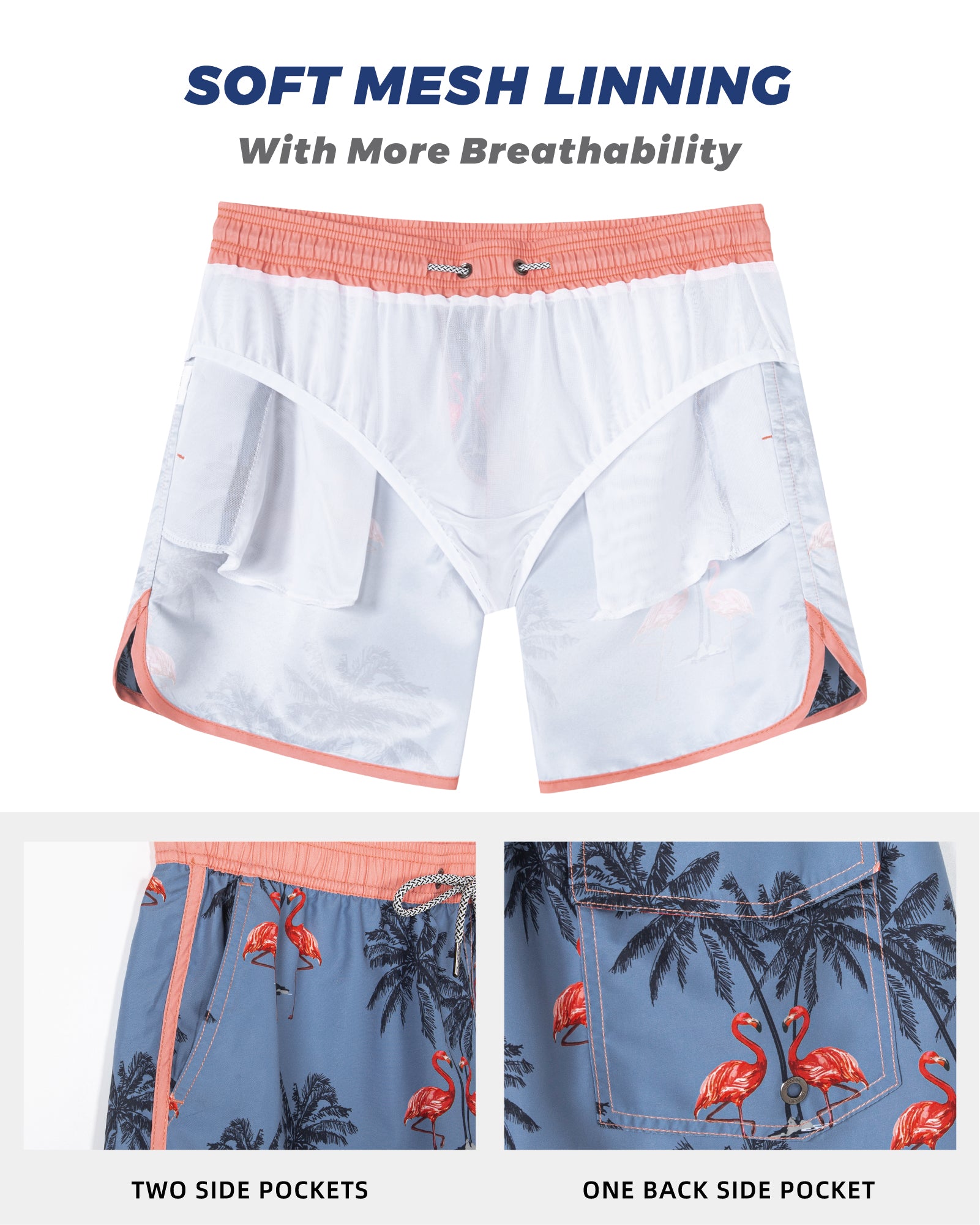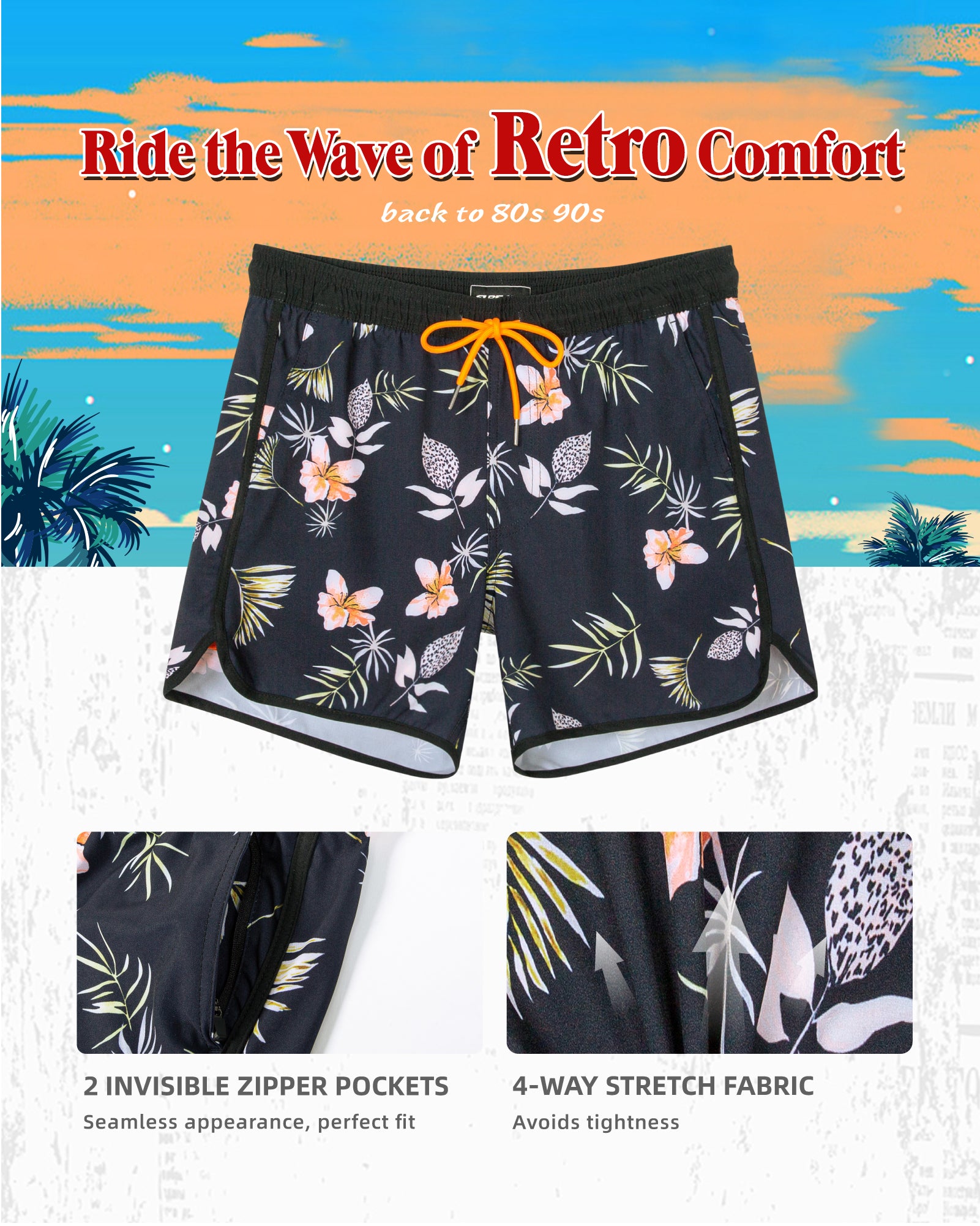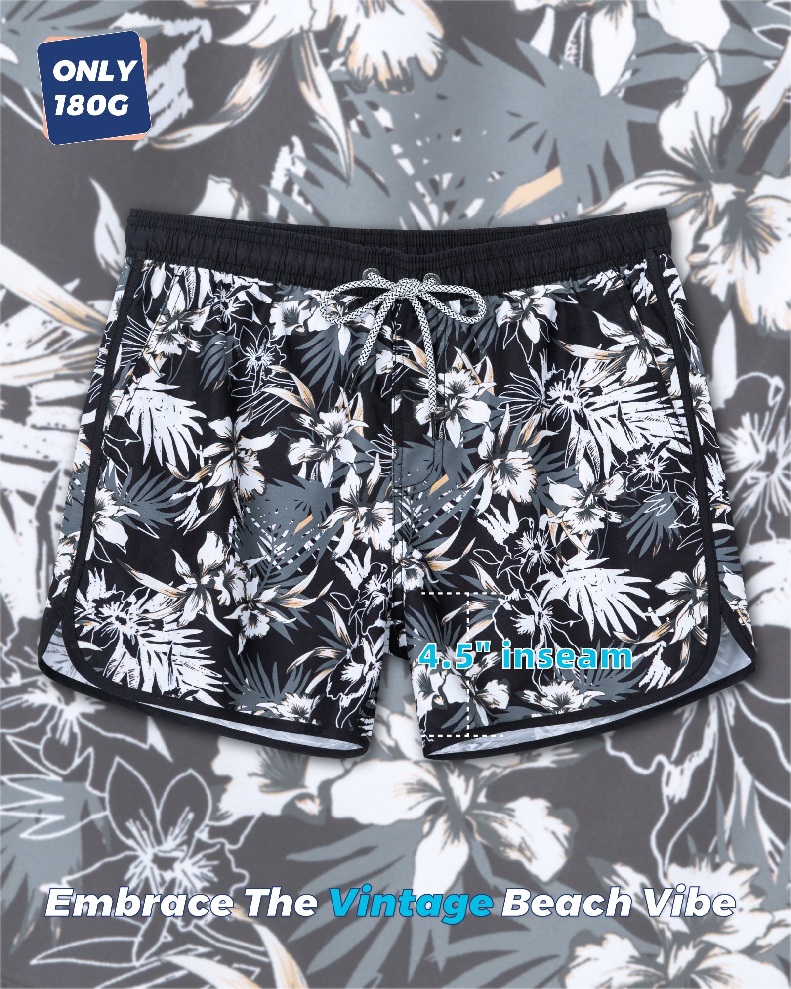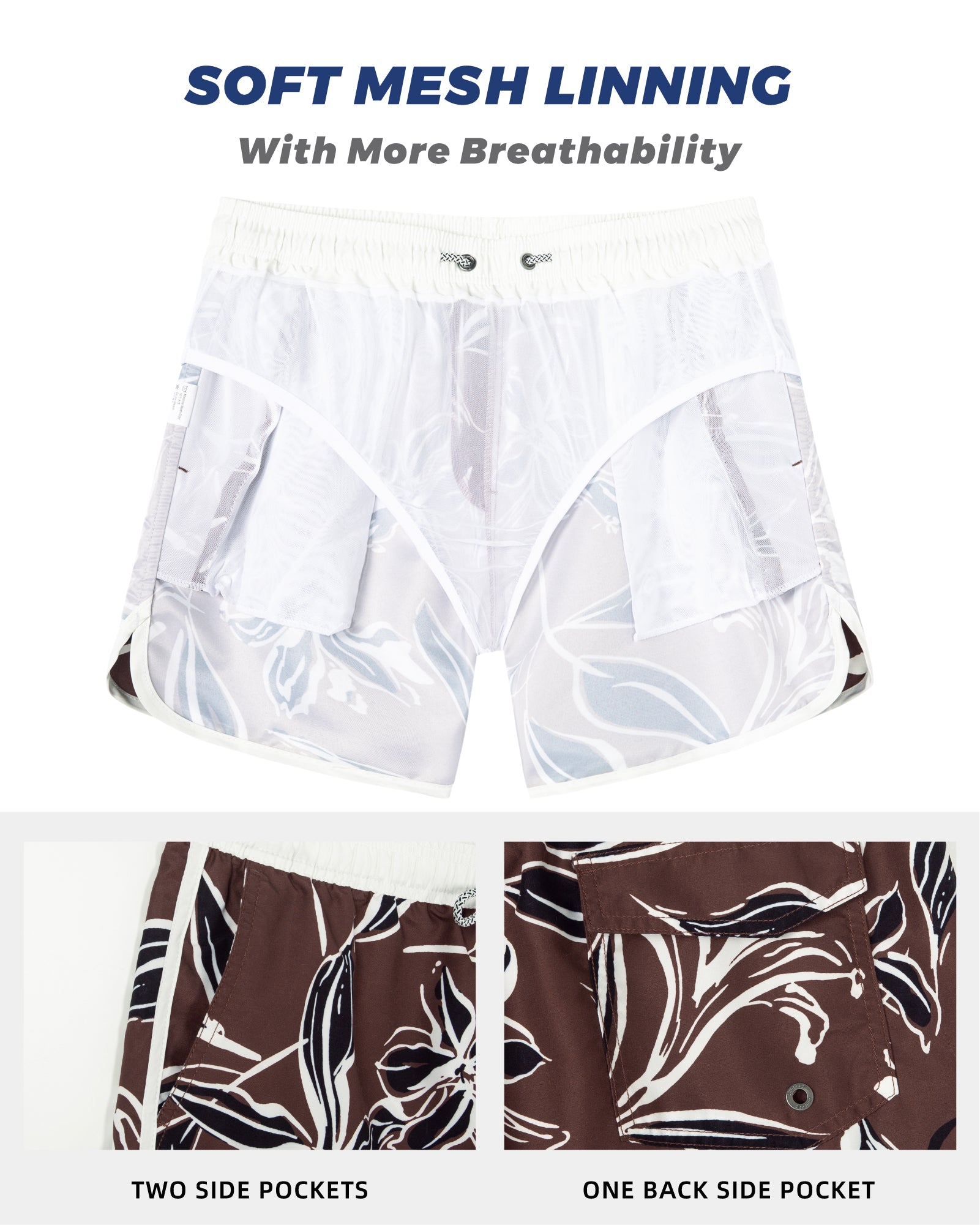 Men‘s Inseam Vintage Swim Trunks With Mesh Lining
