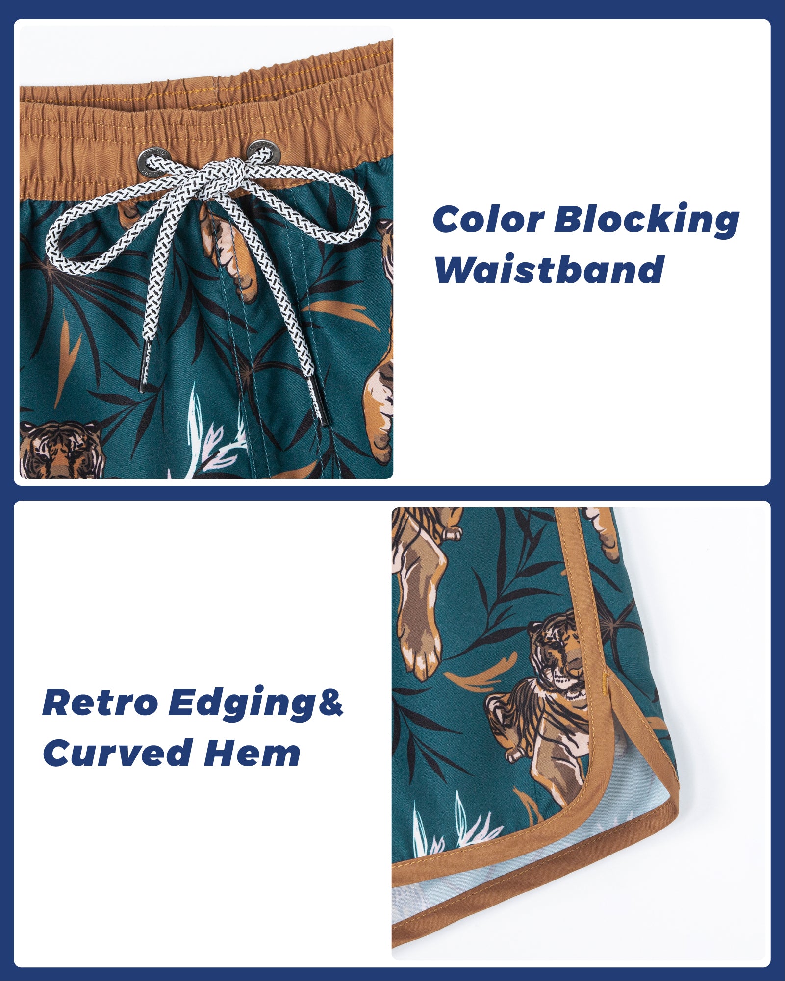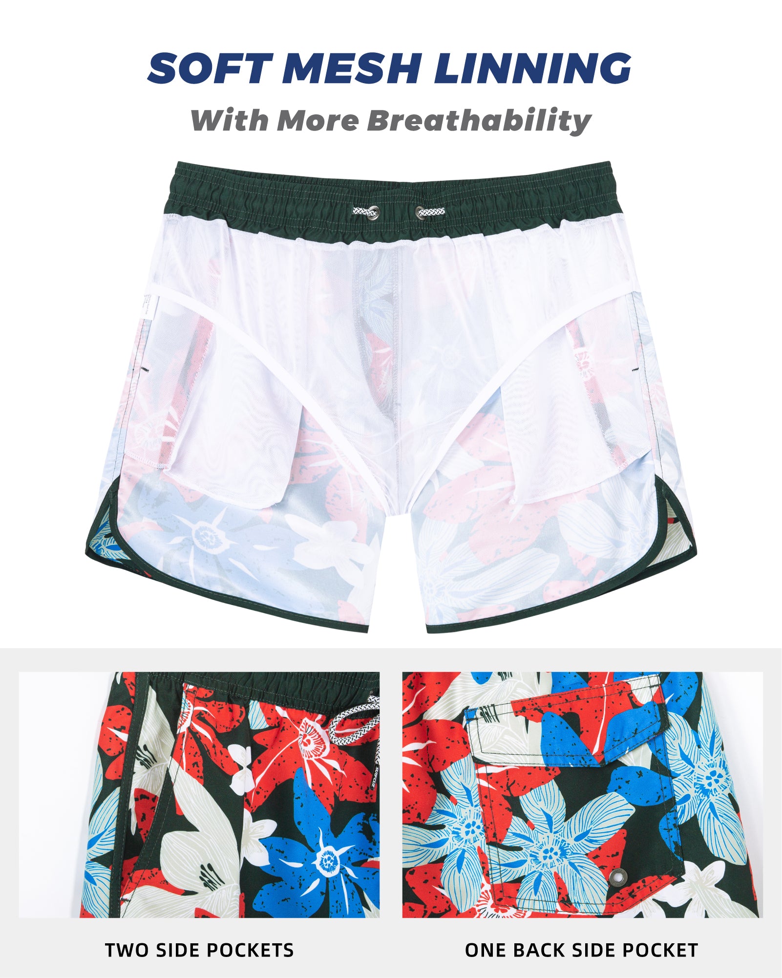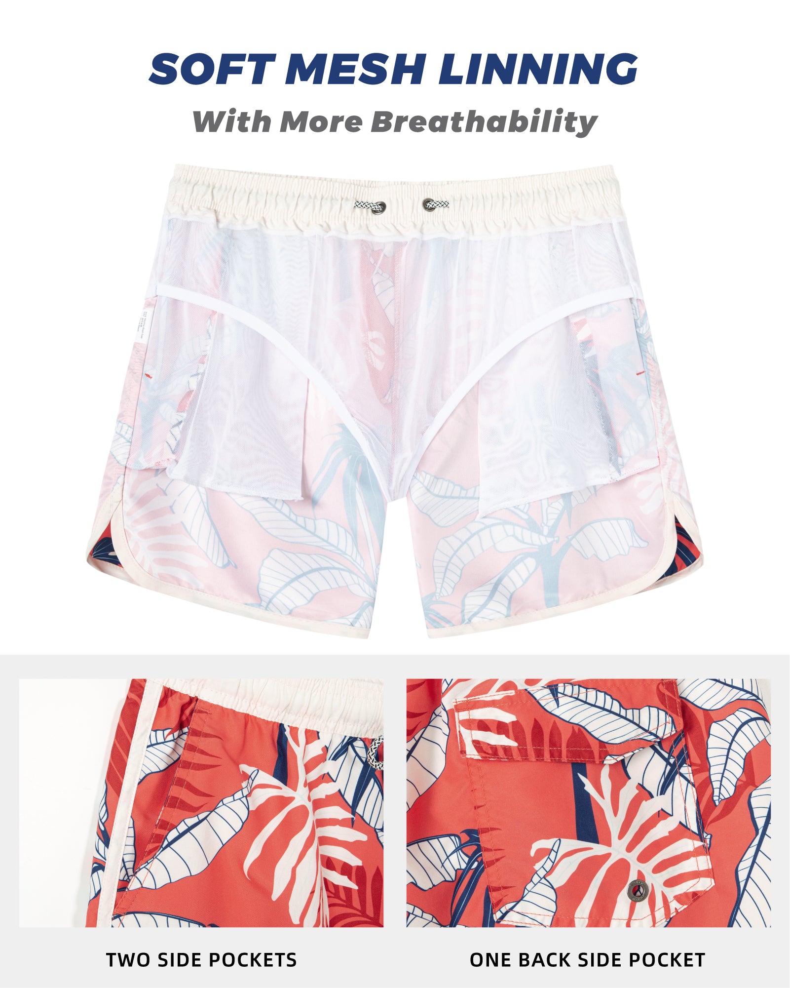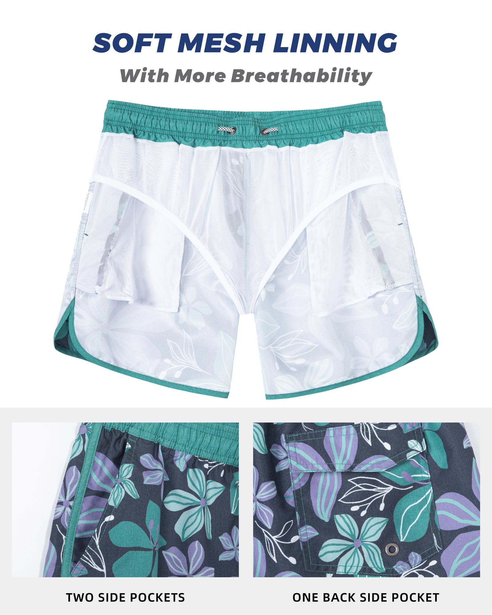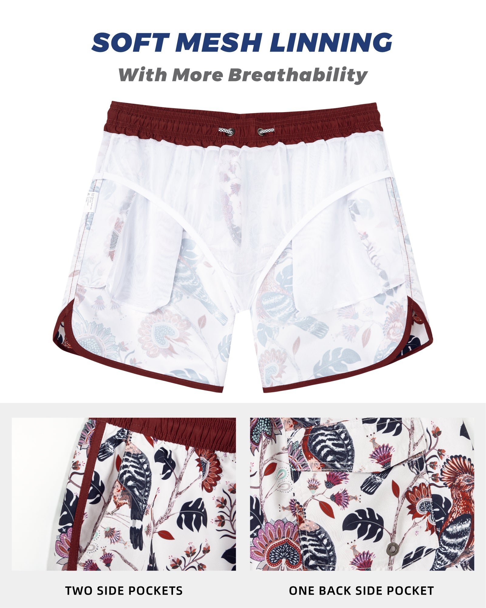 Men‘s Inseam Vintage Swim Trunks With Mesh Lining