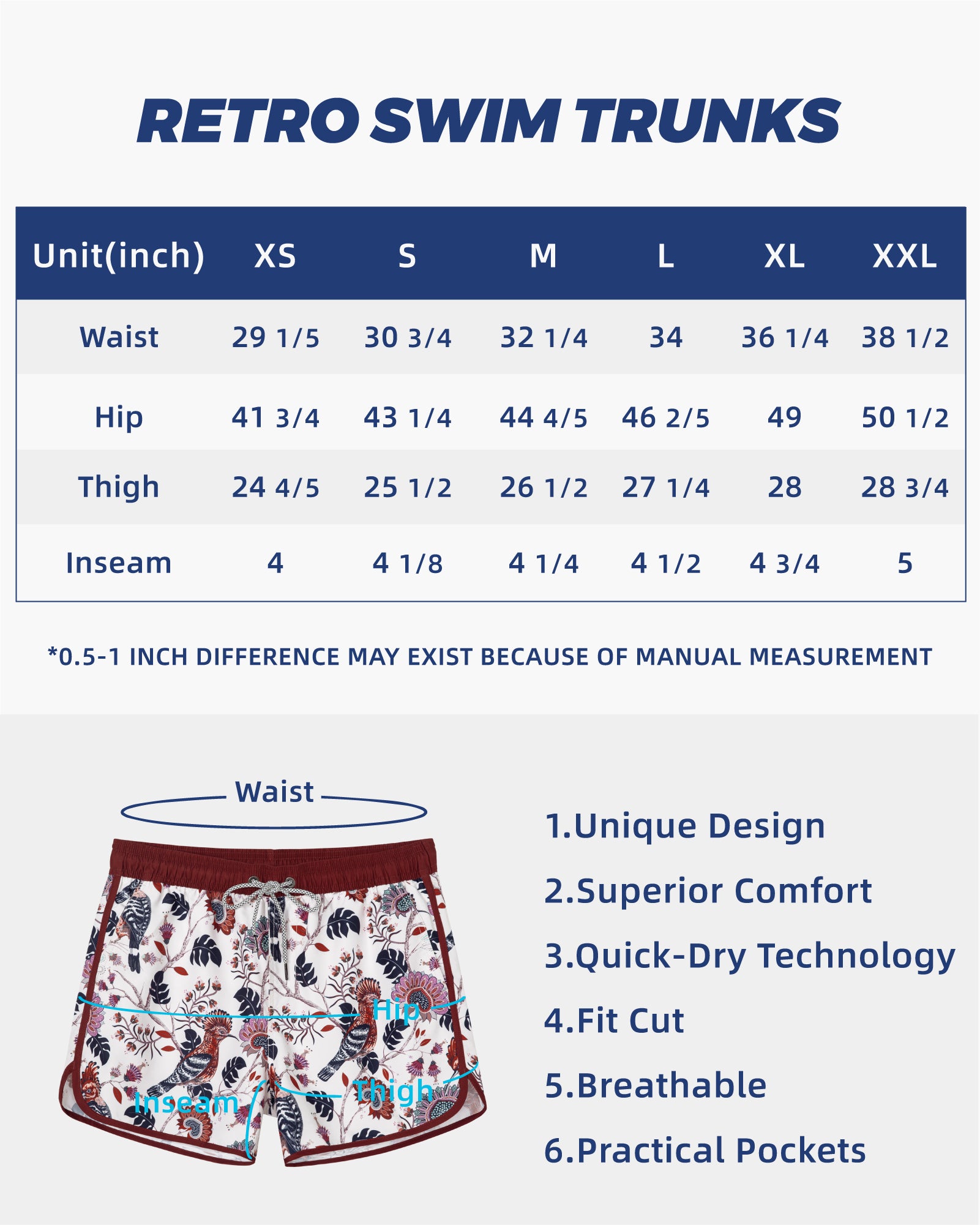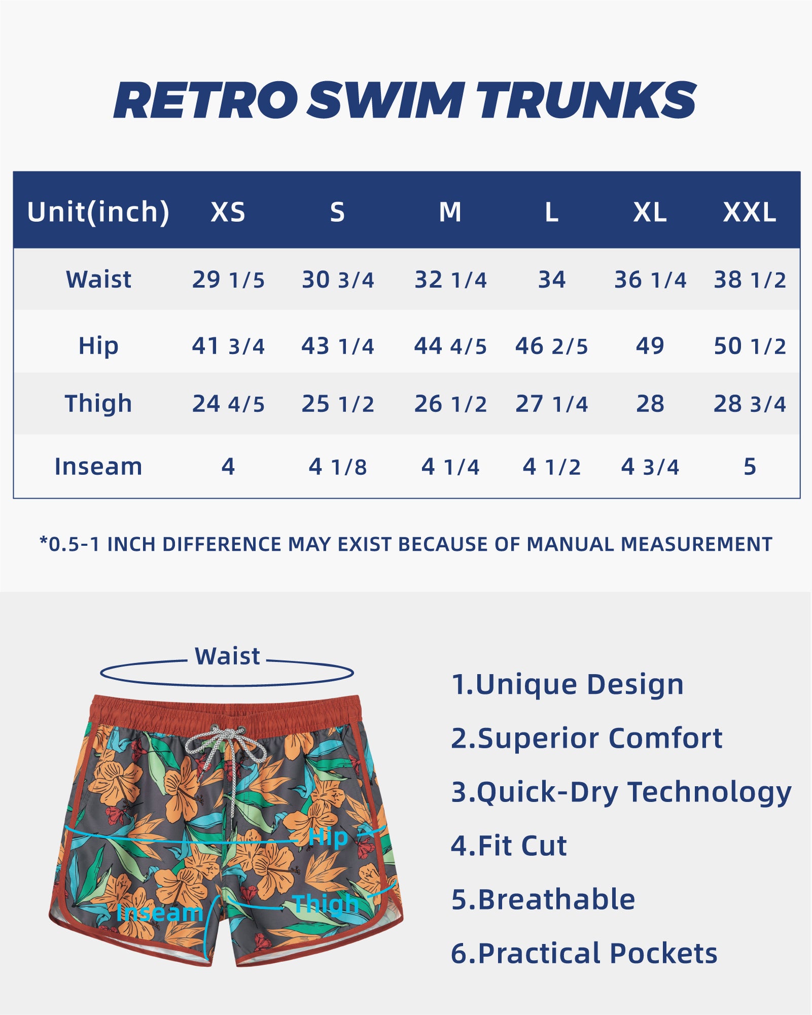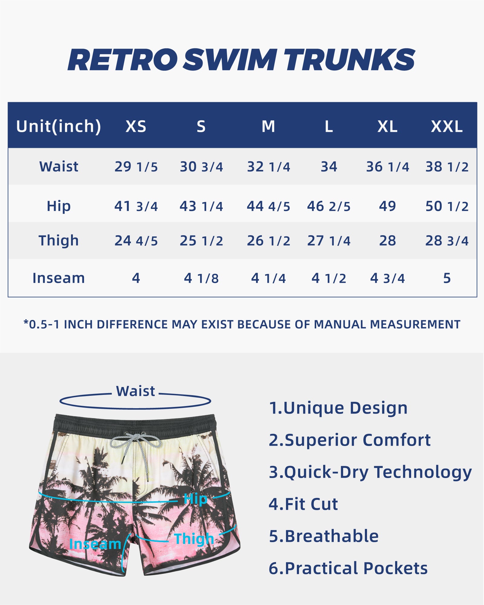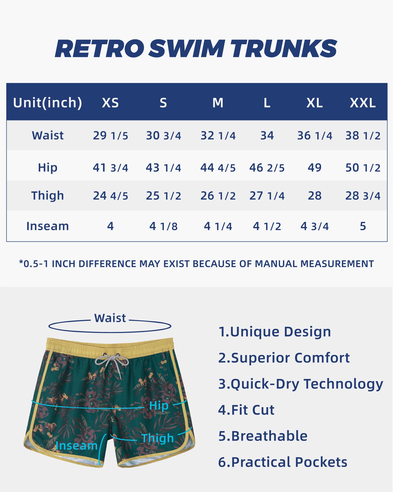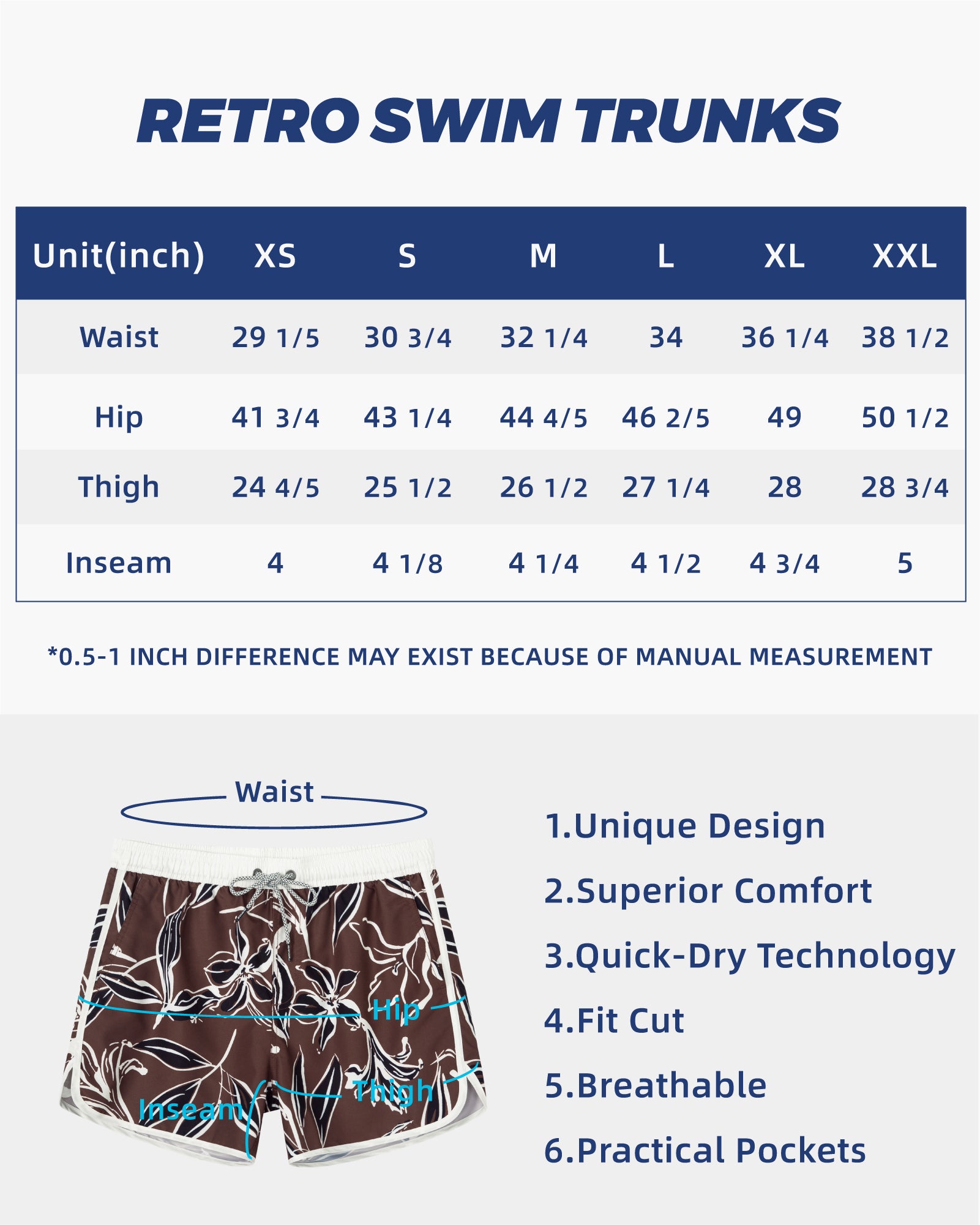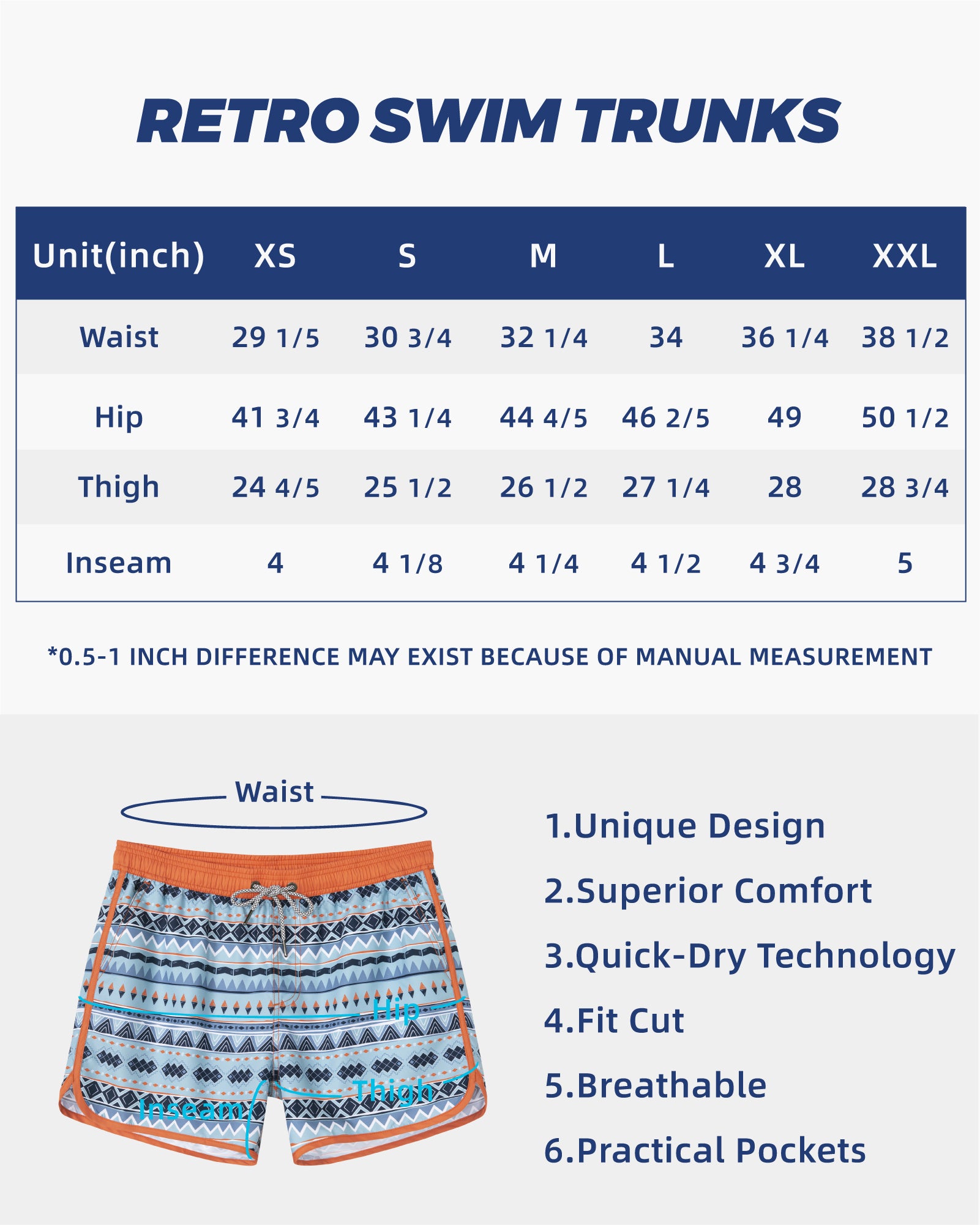 Men‘s Inseam Vintage Swim Trunks With Mesh Lining