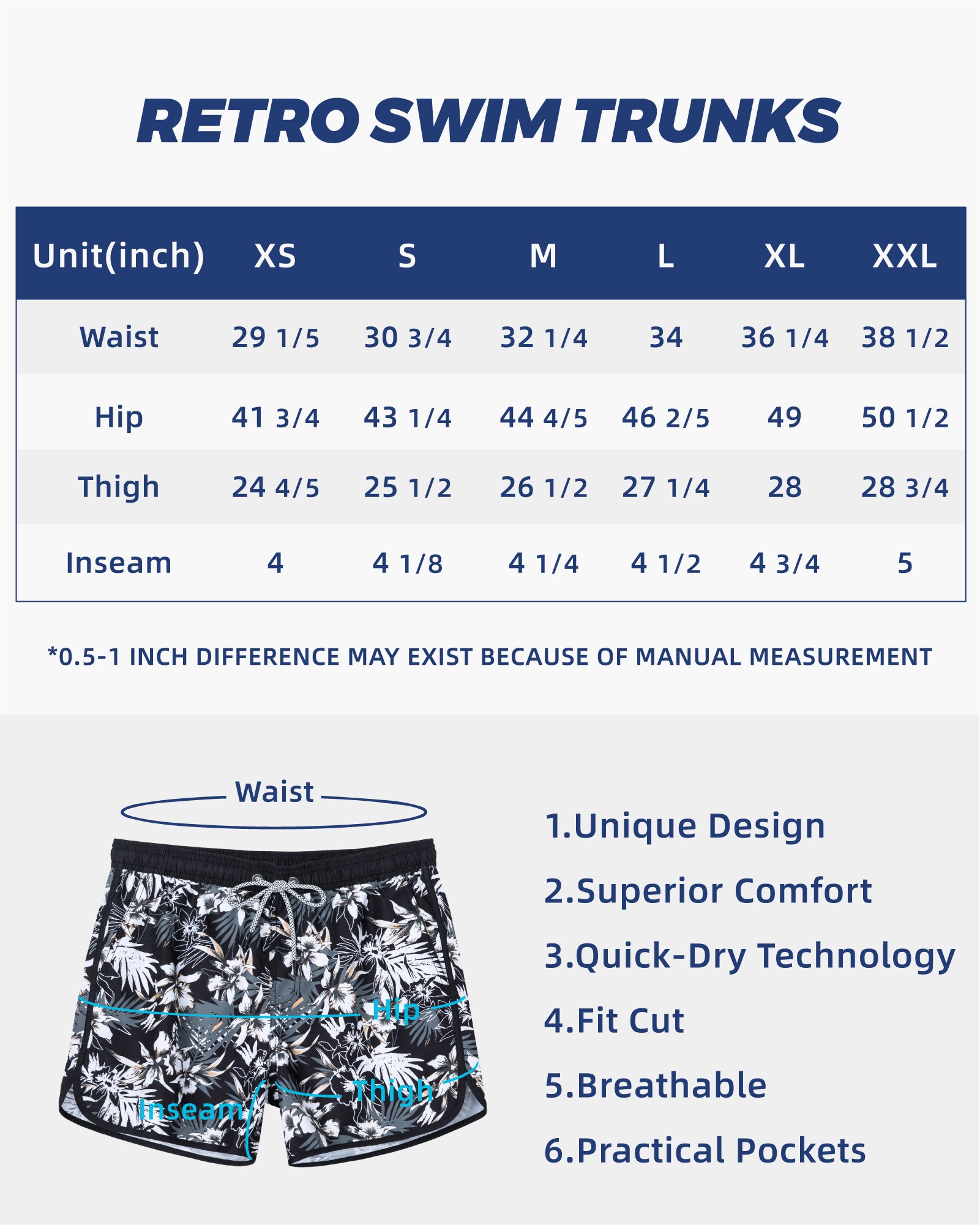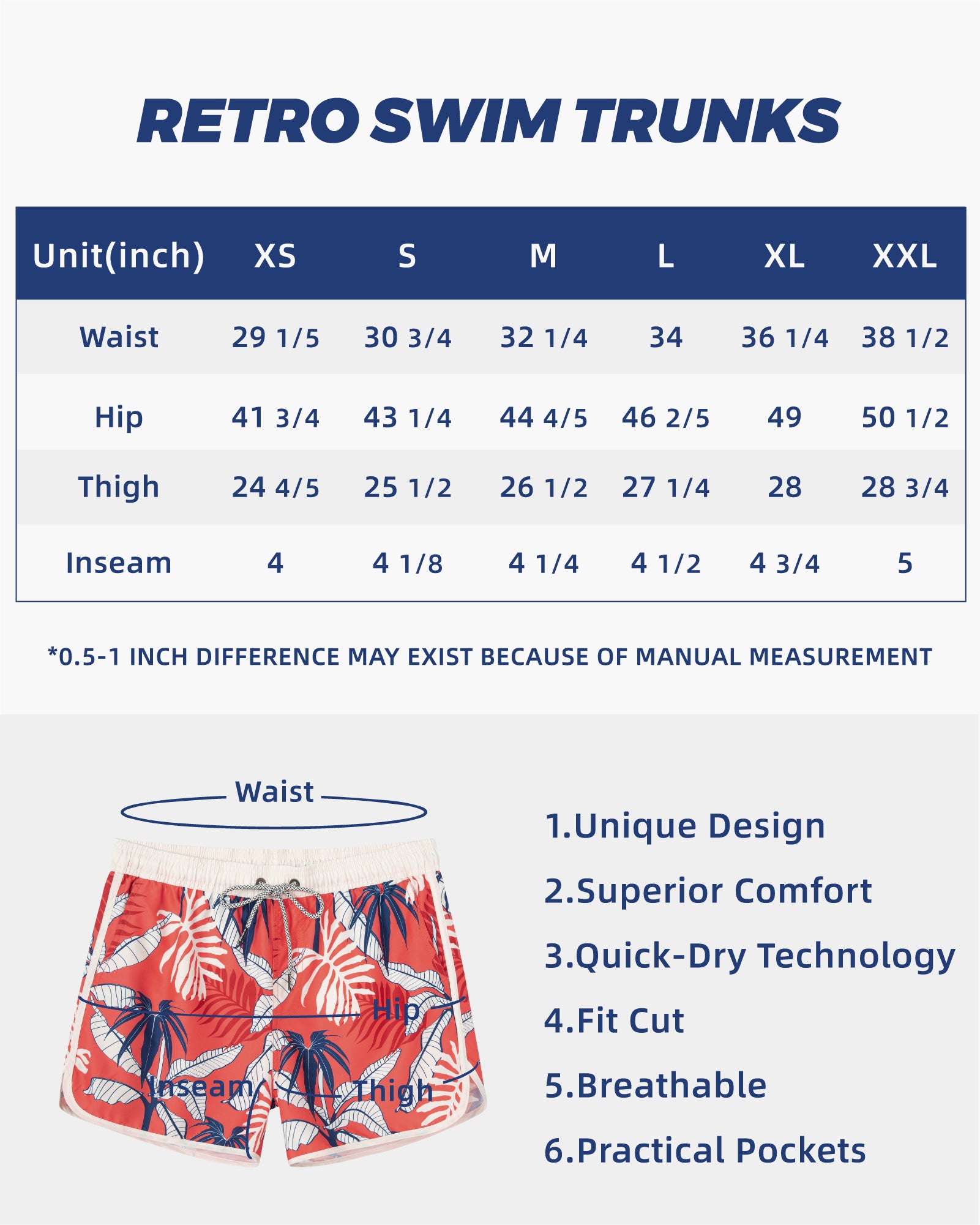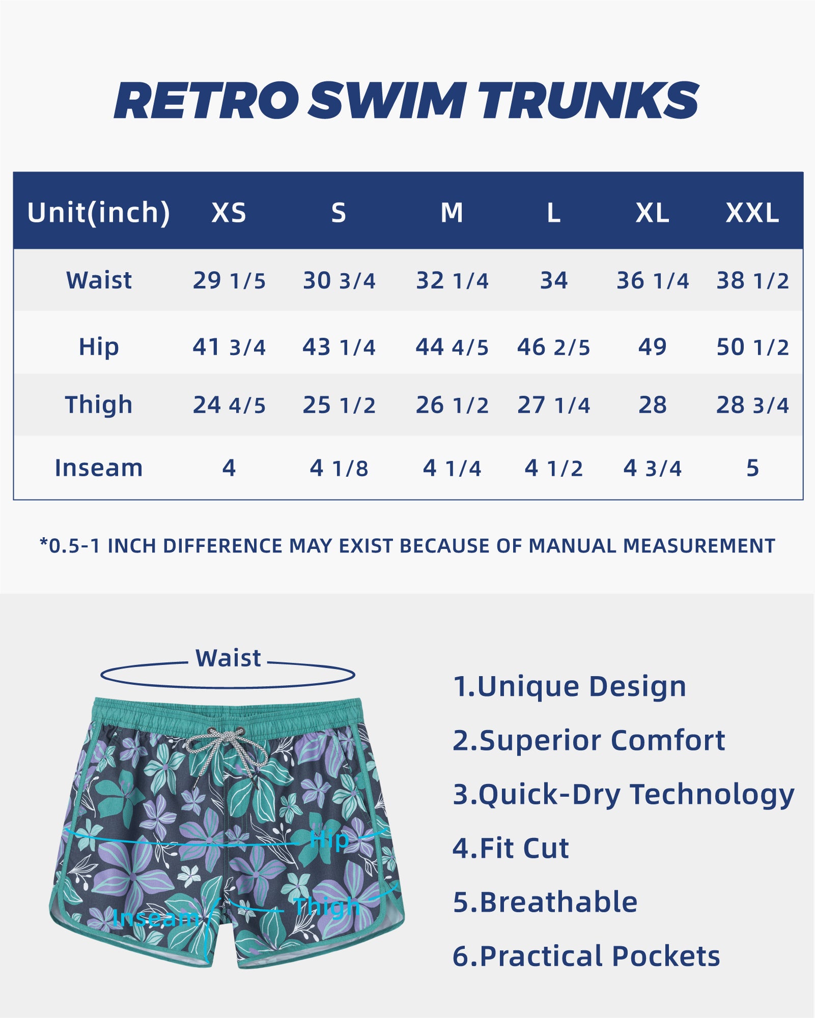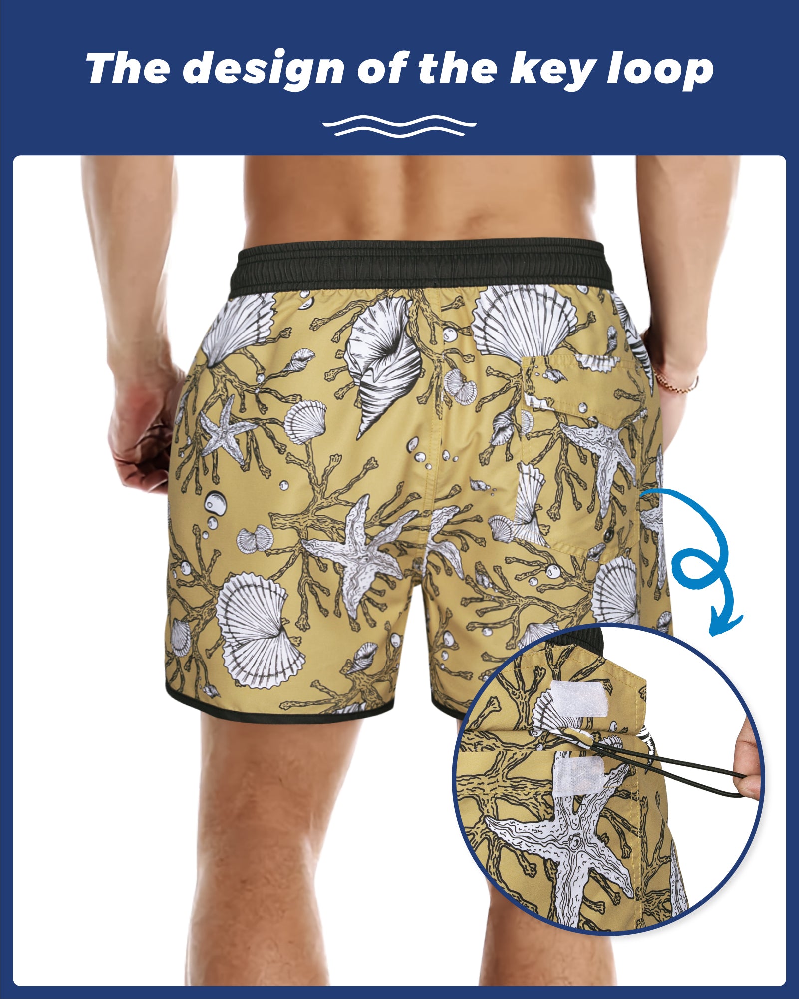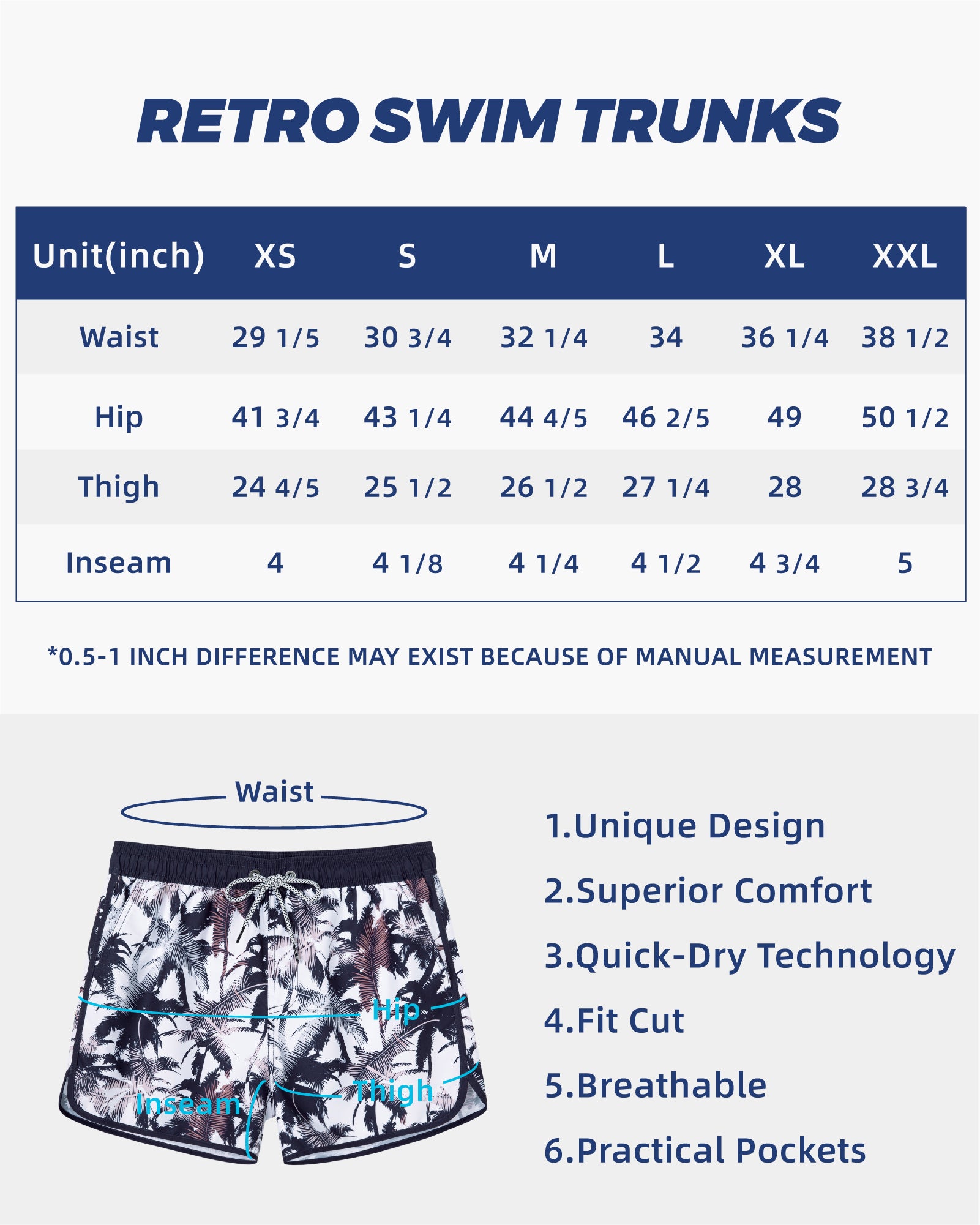 Men‘s Inseam Vintage Swim Trunks With Mesh Lining