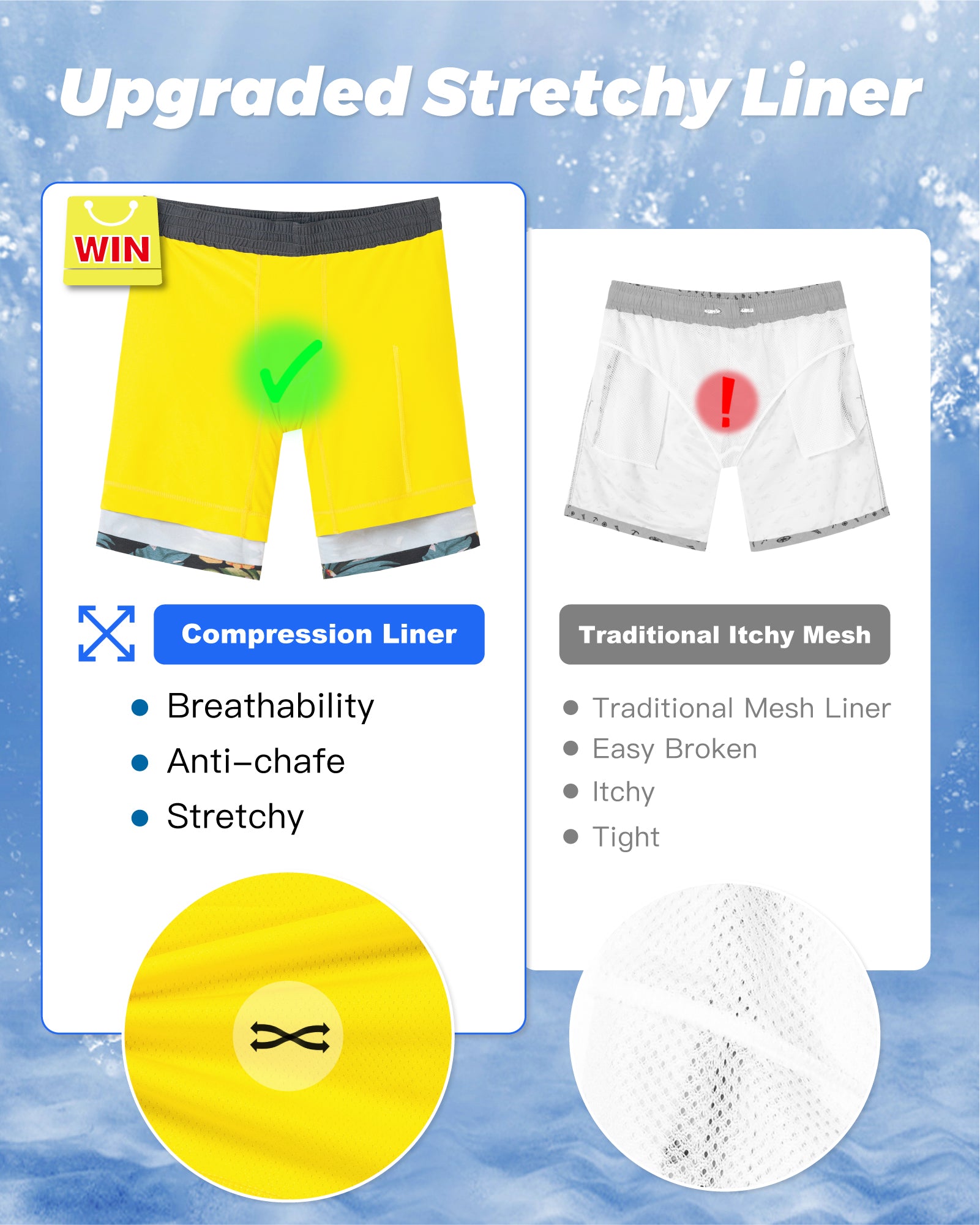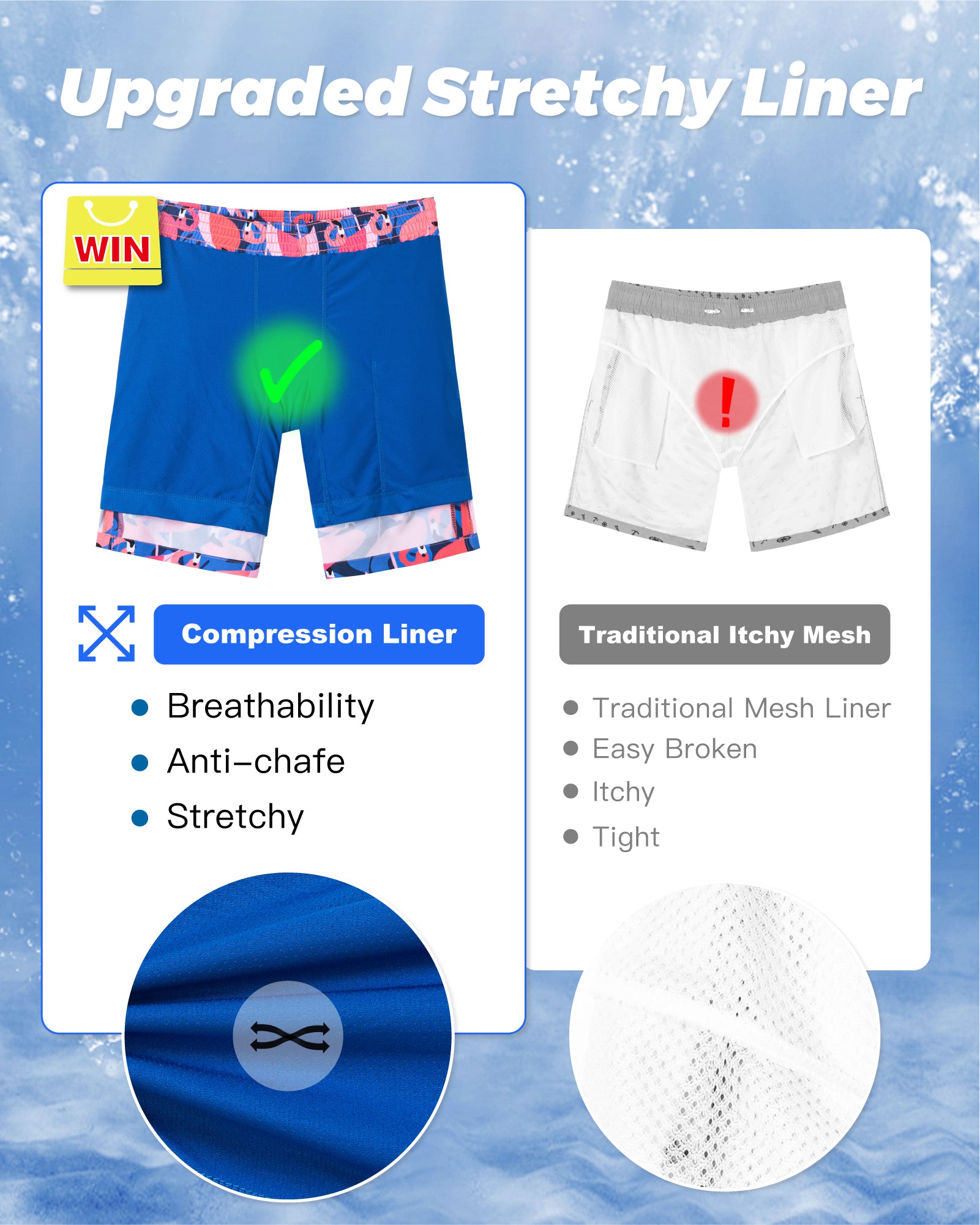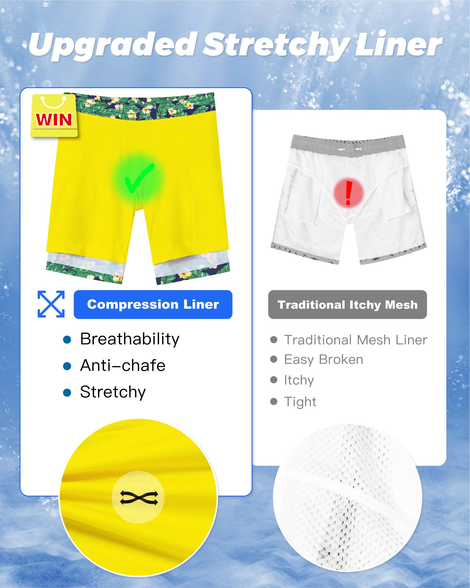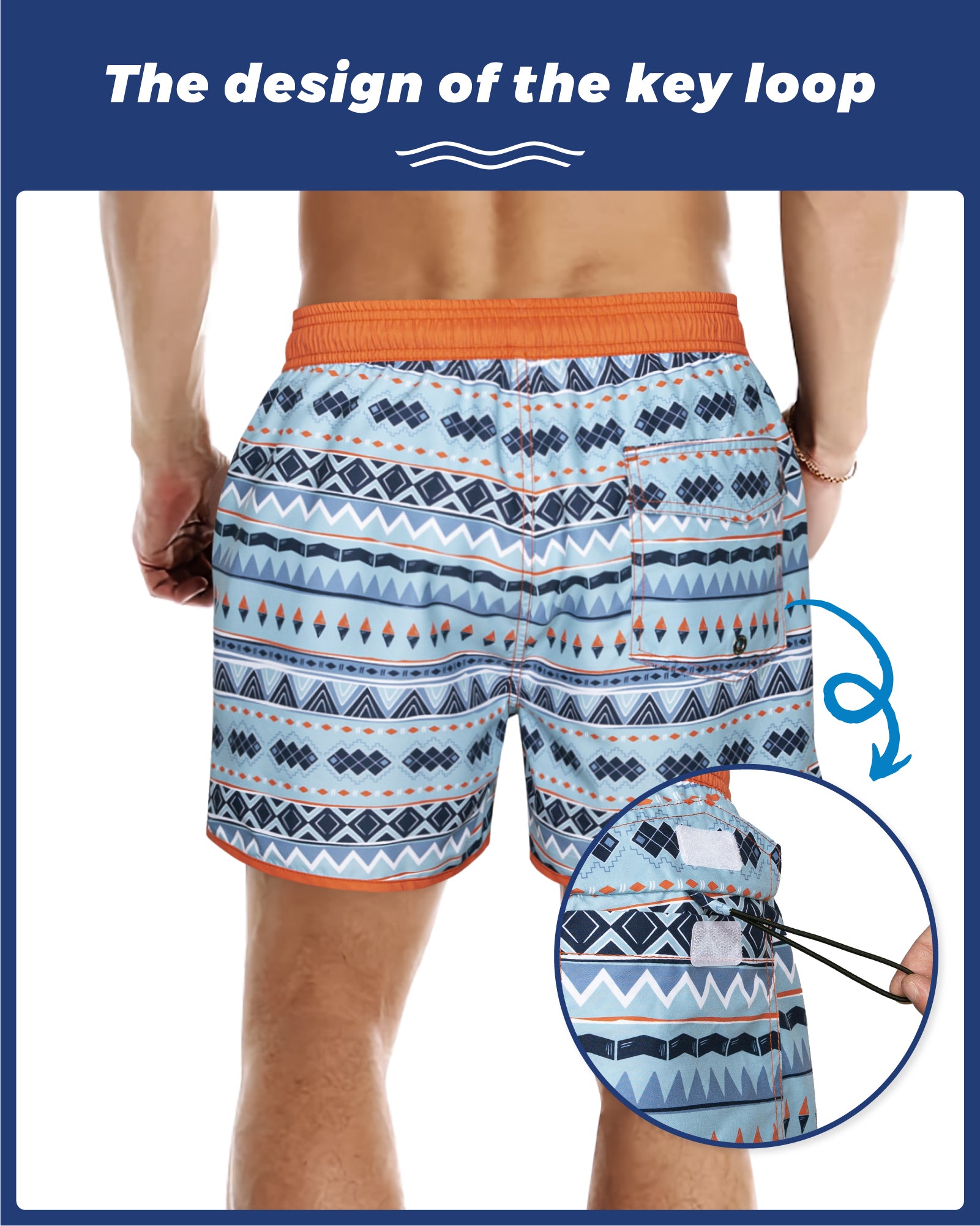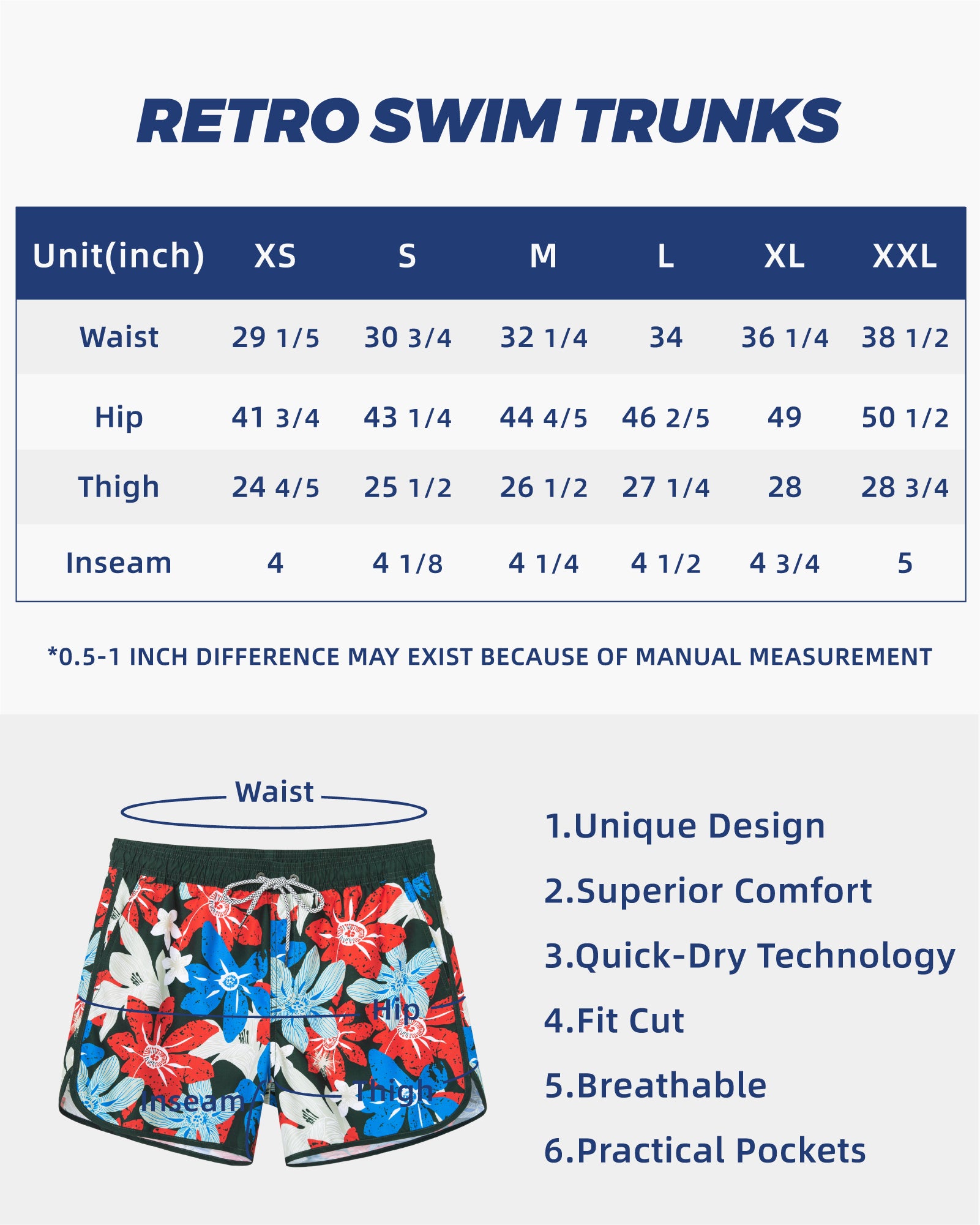 Men‘s Inseam Vintage Swim Trunks With Mesh Lining