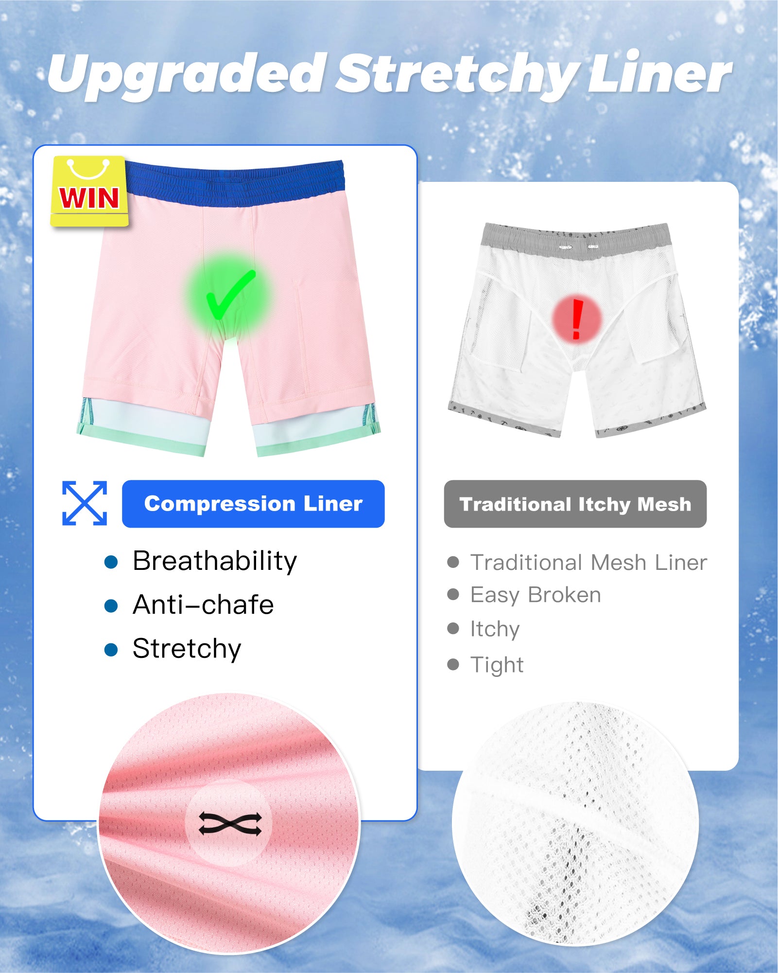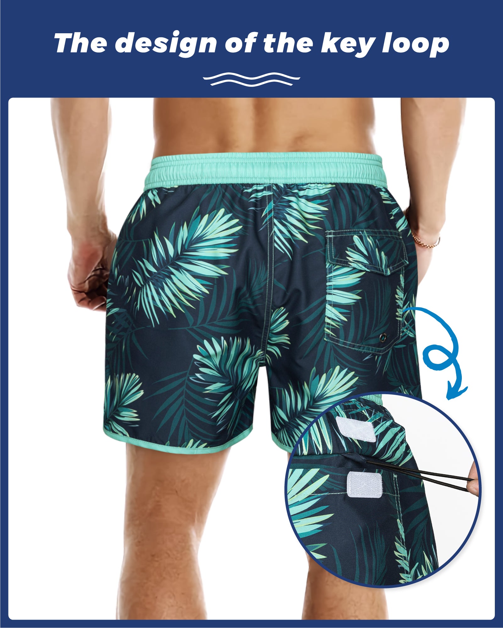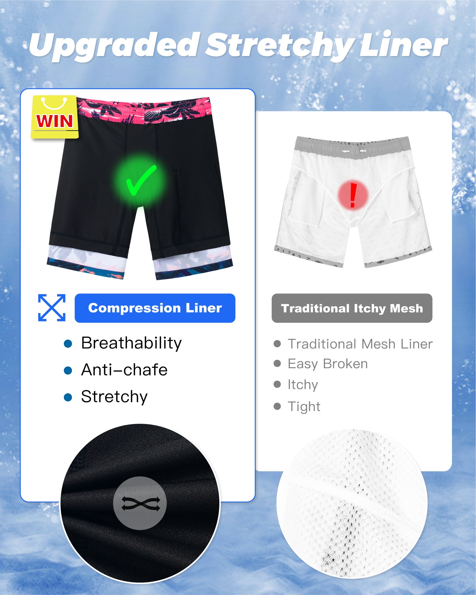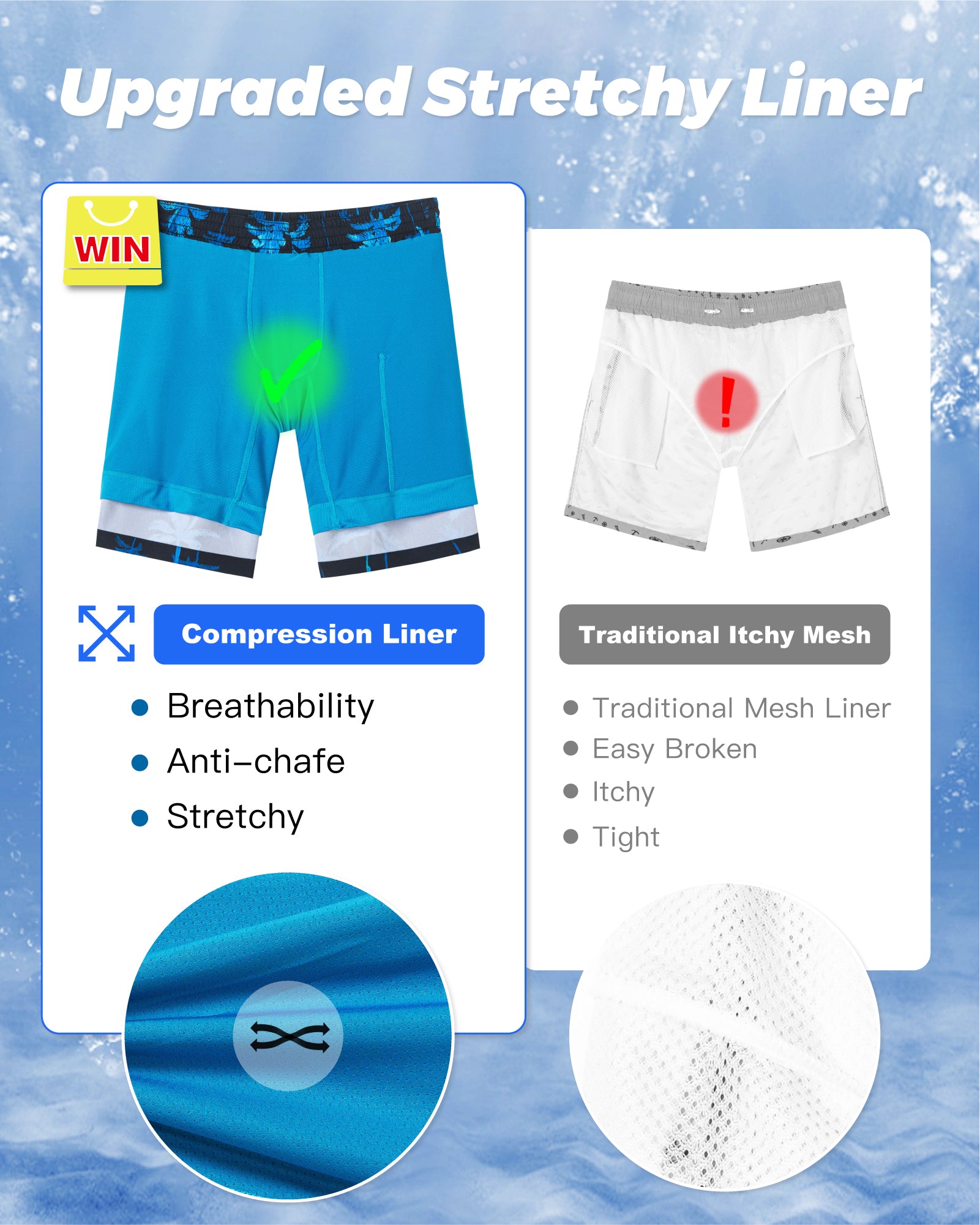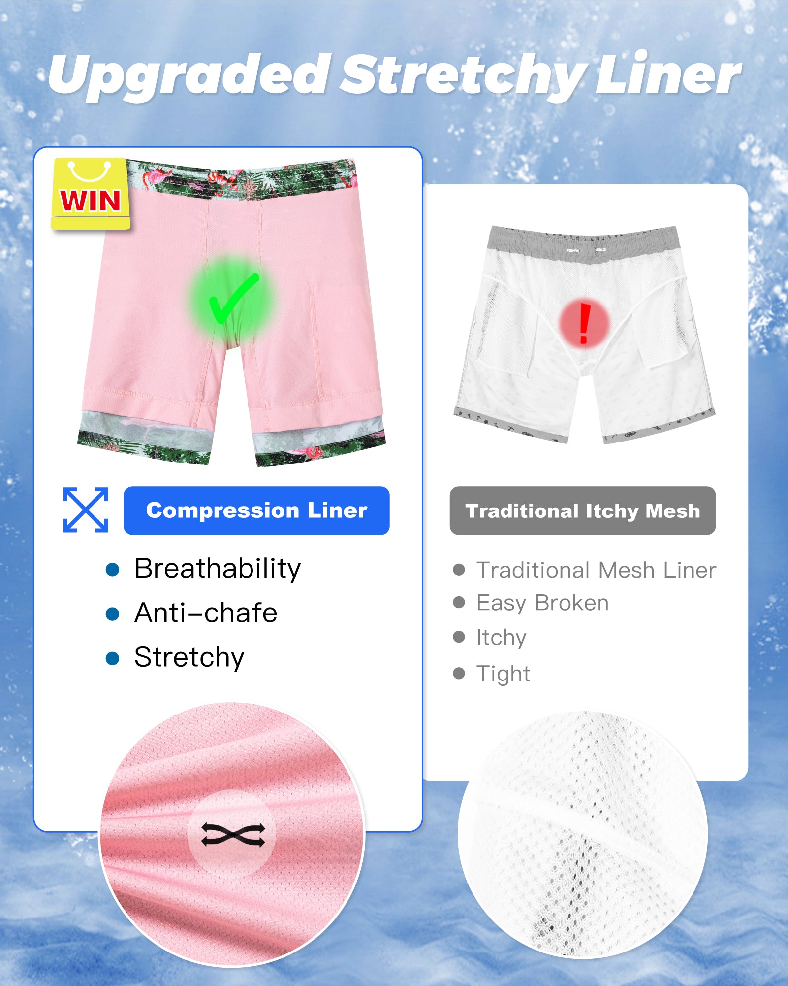 Men‘s Inseam Vintage Swim Trunks With Mesh Lining