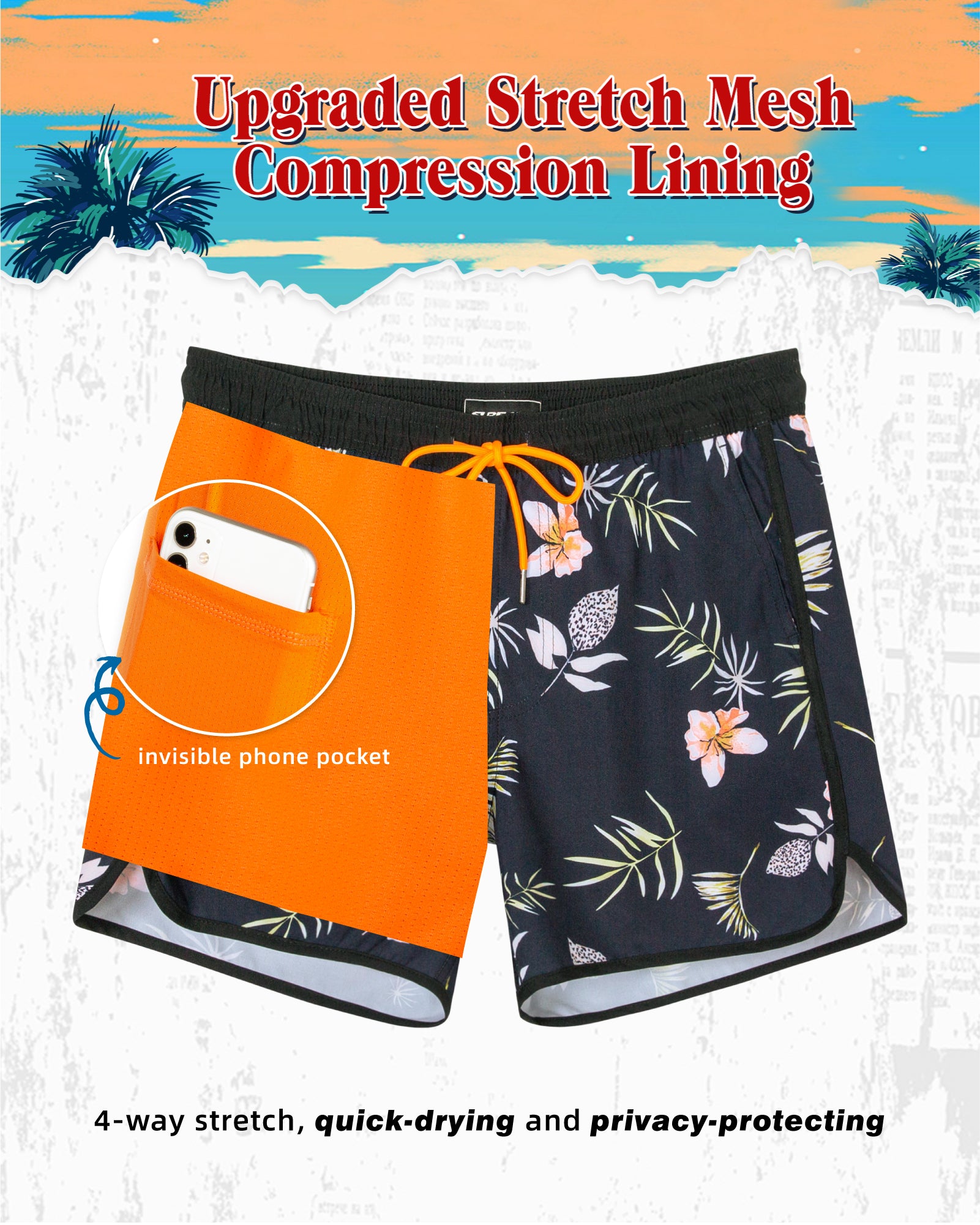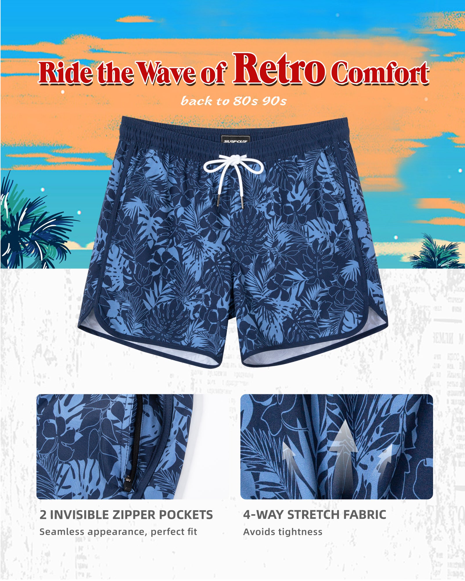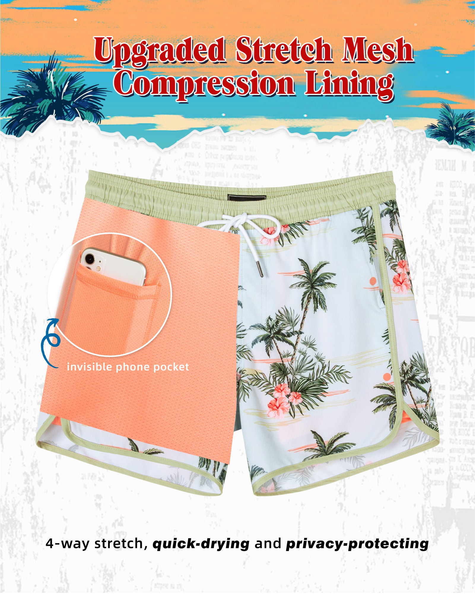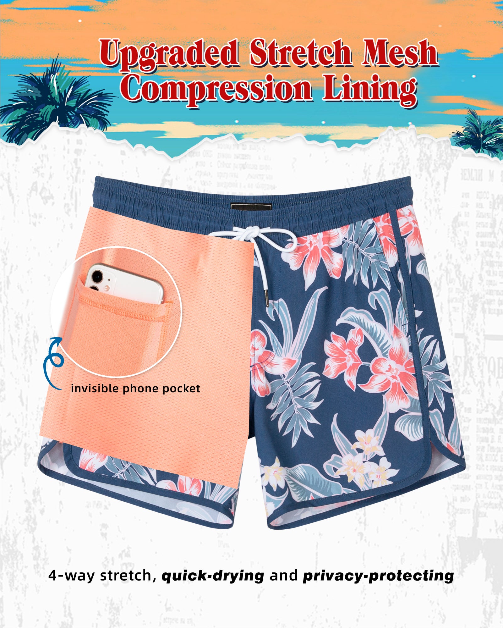 Men's 5 Inch Stretch Lining Vintage Board Shorts