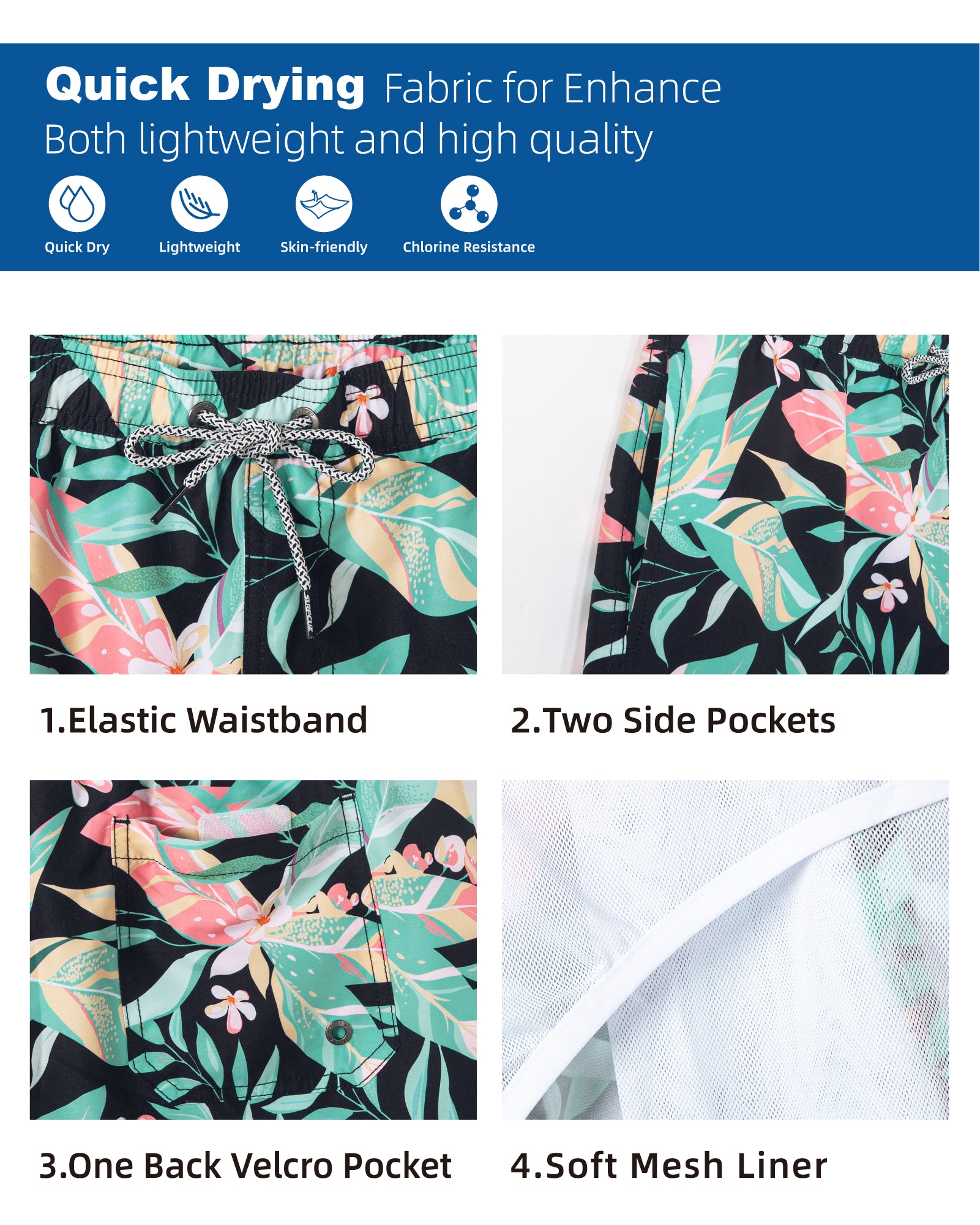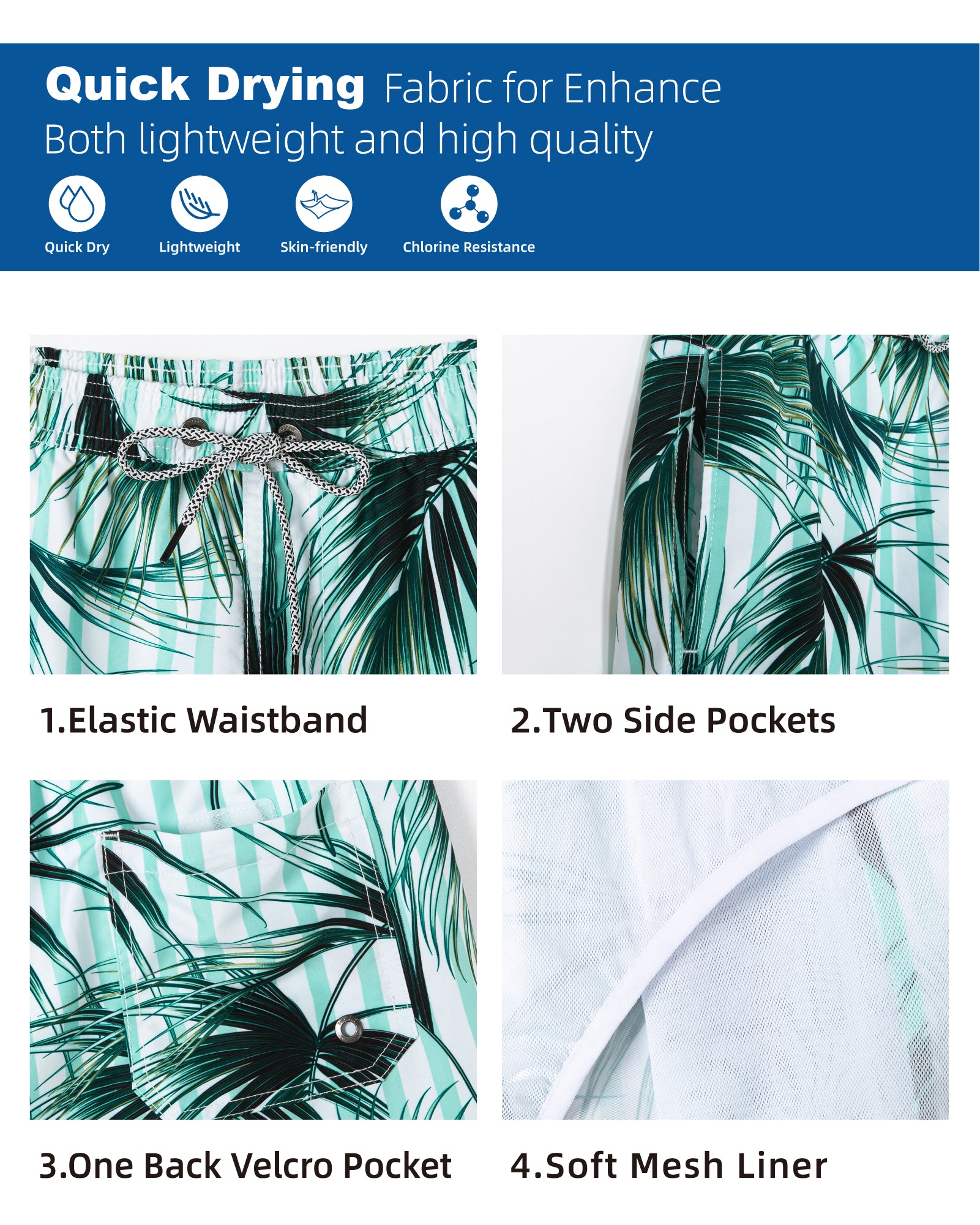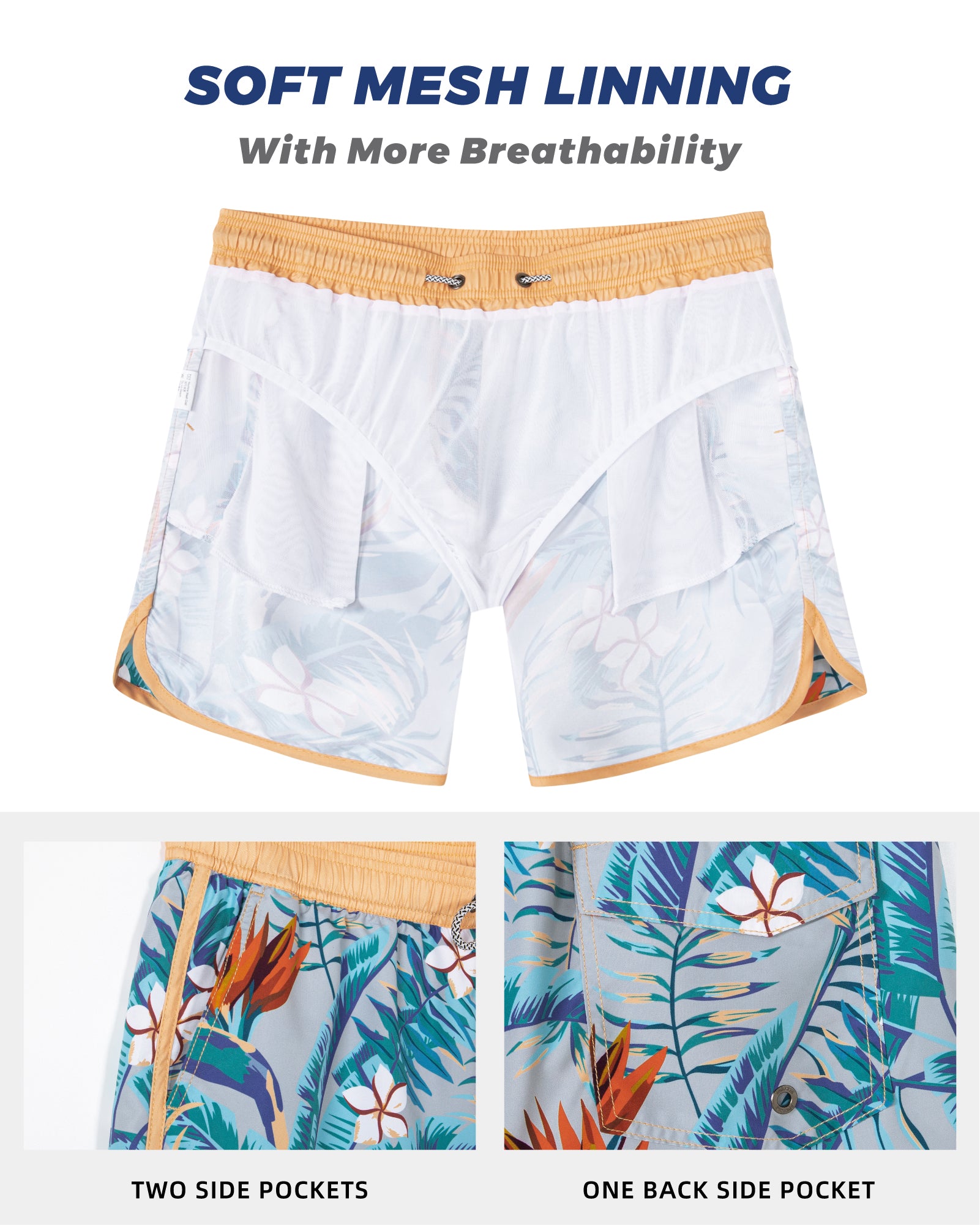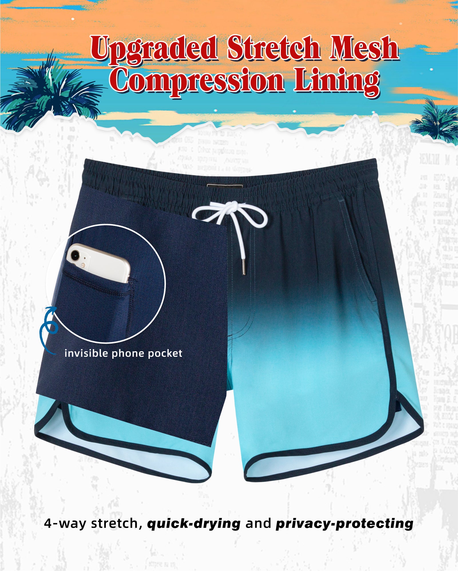 Men's Quick-Dry7 Inch Casual Swim Shorts With Soft Mesh Liner
