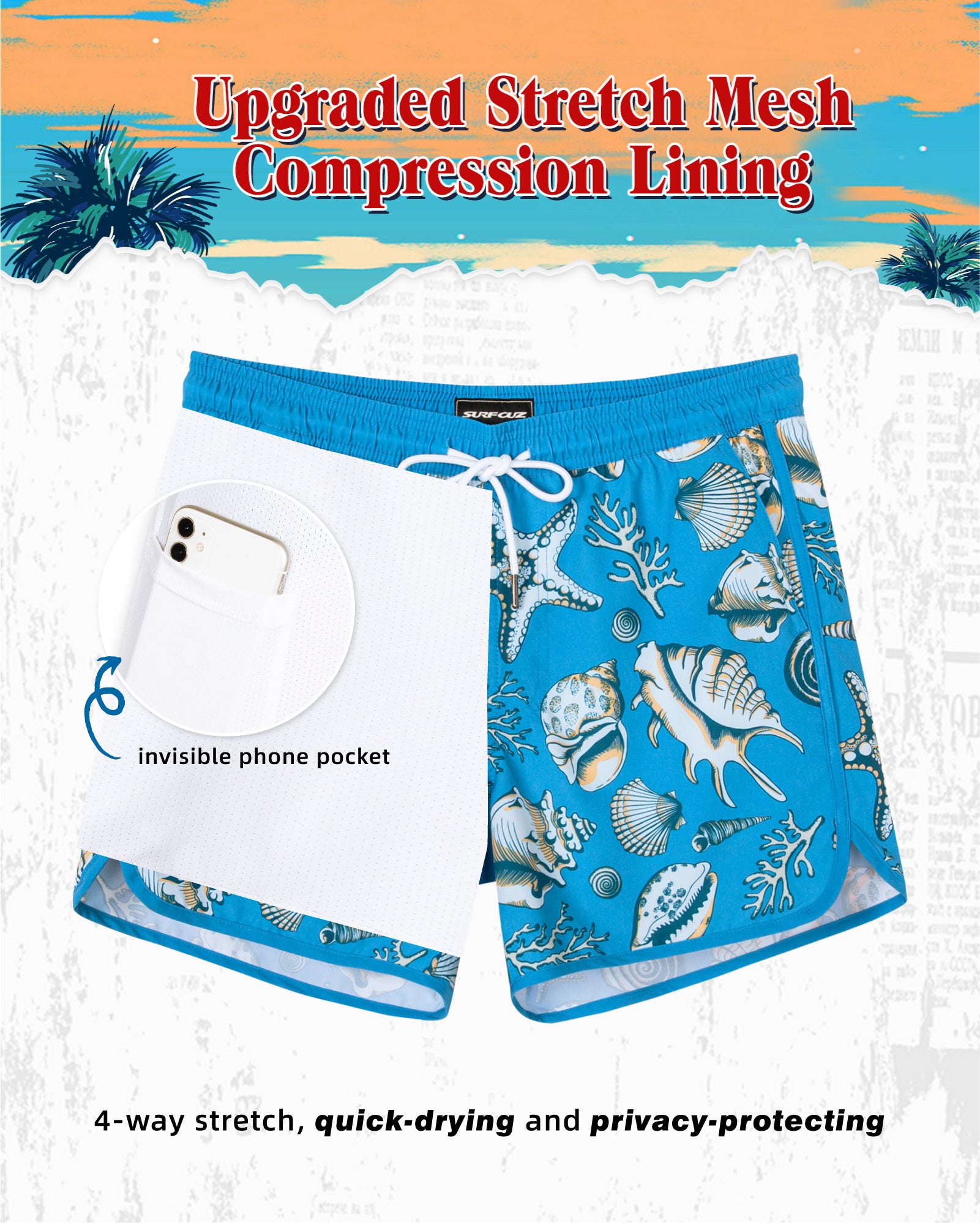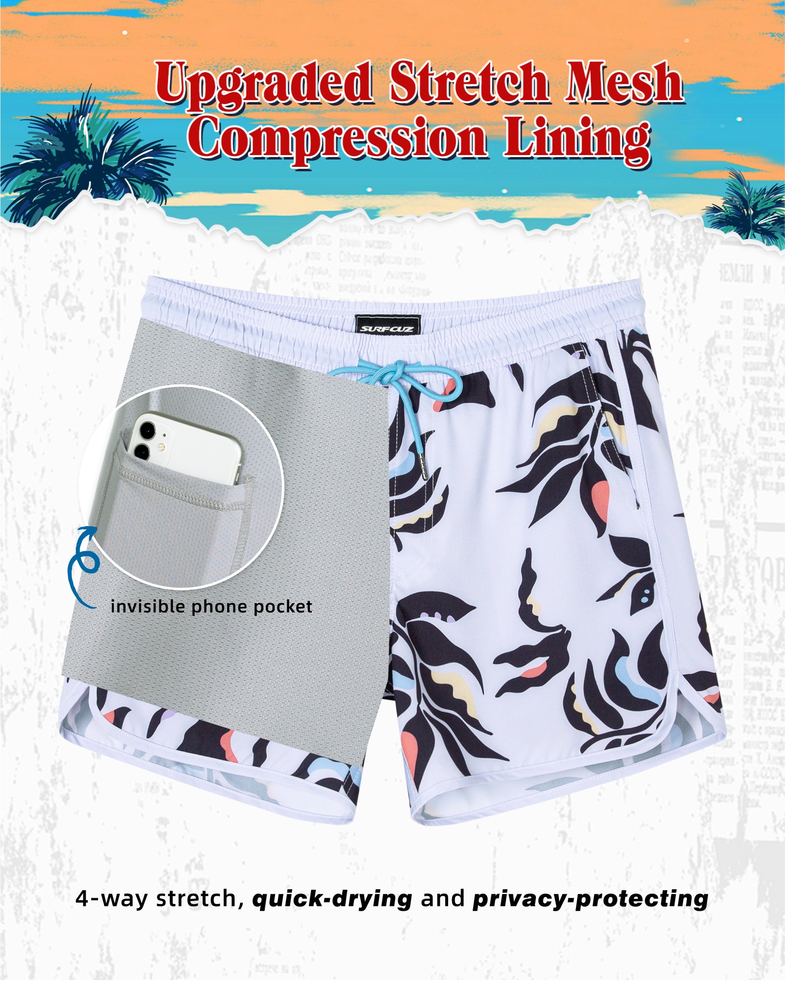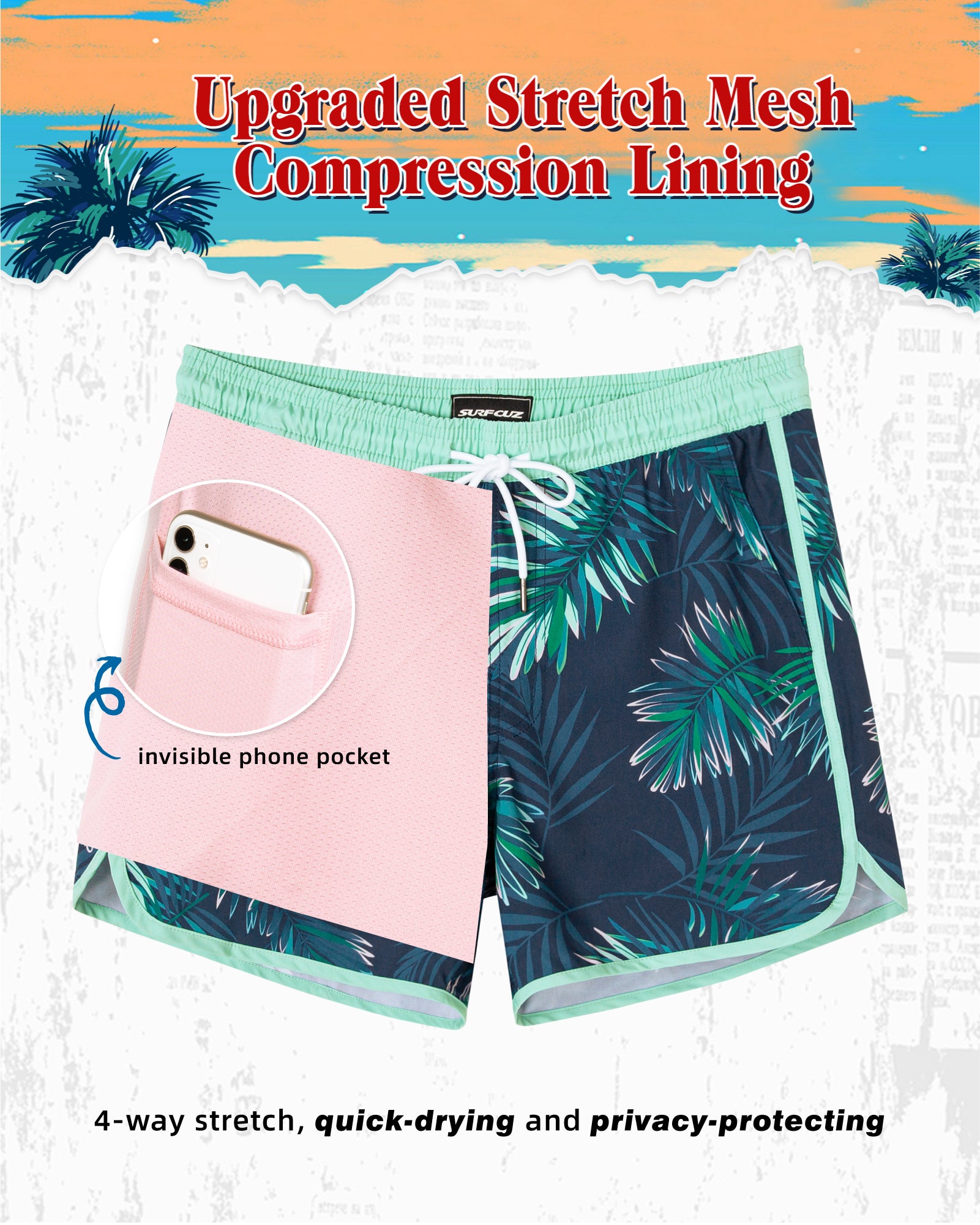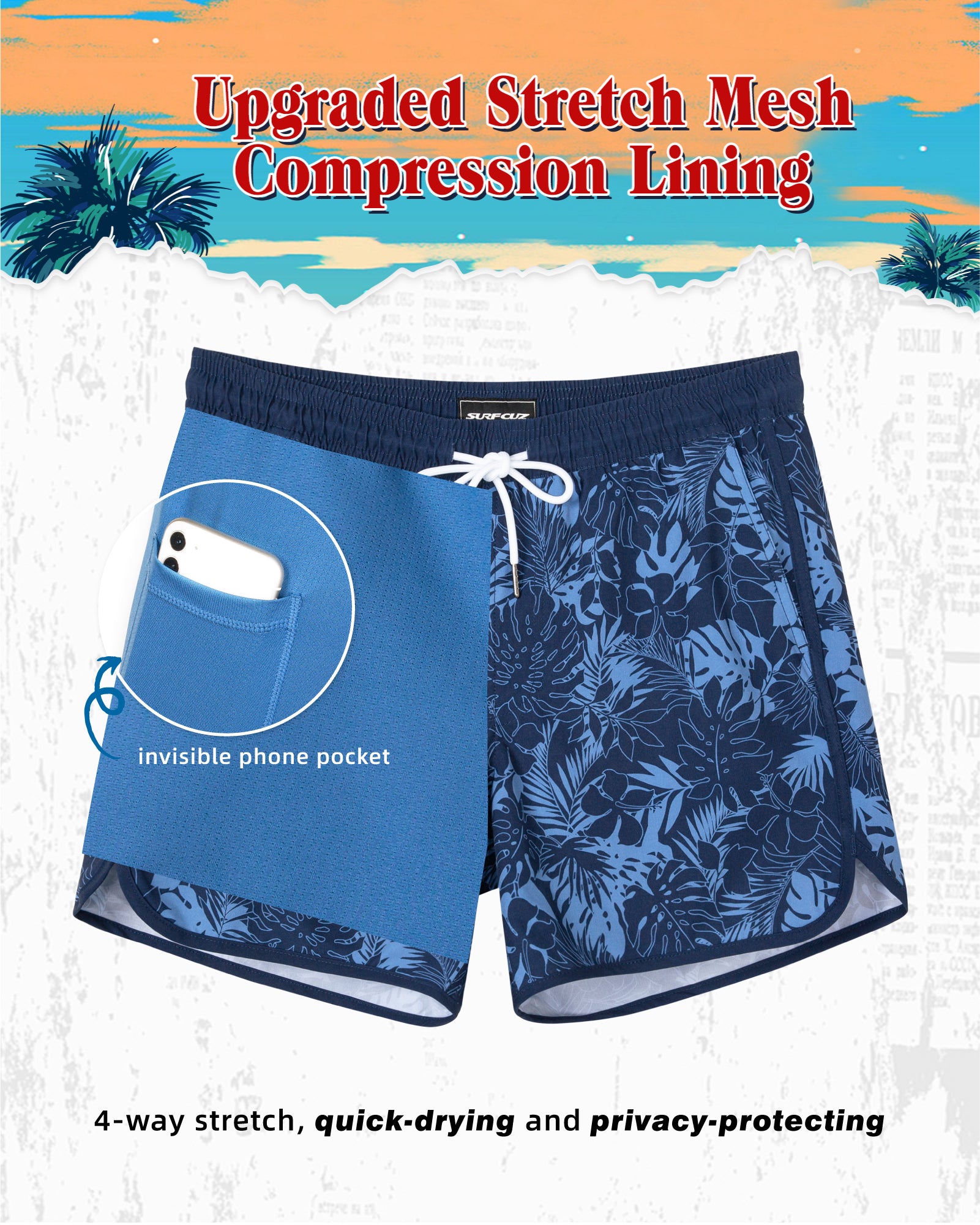 Surfcuz Men's 9" 2-in-1 Swim Trunks – Stretch Lining, Quick Dry