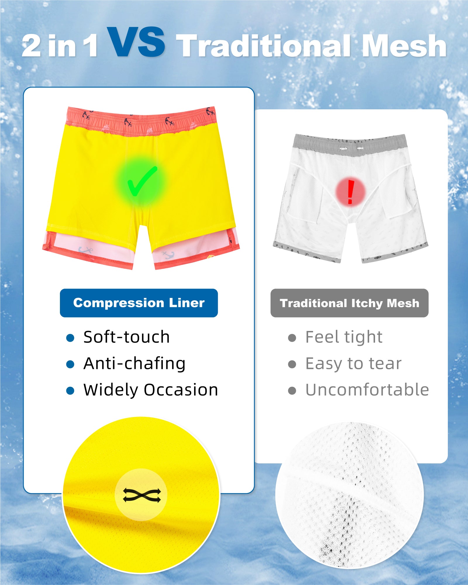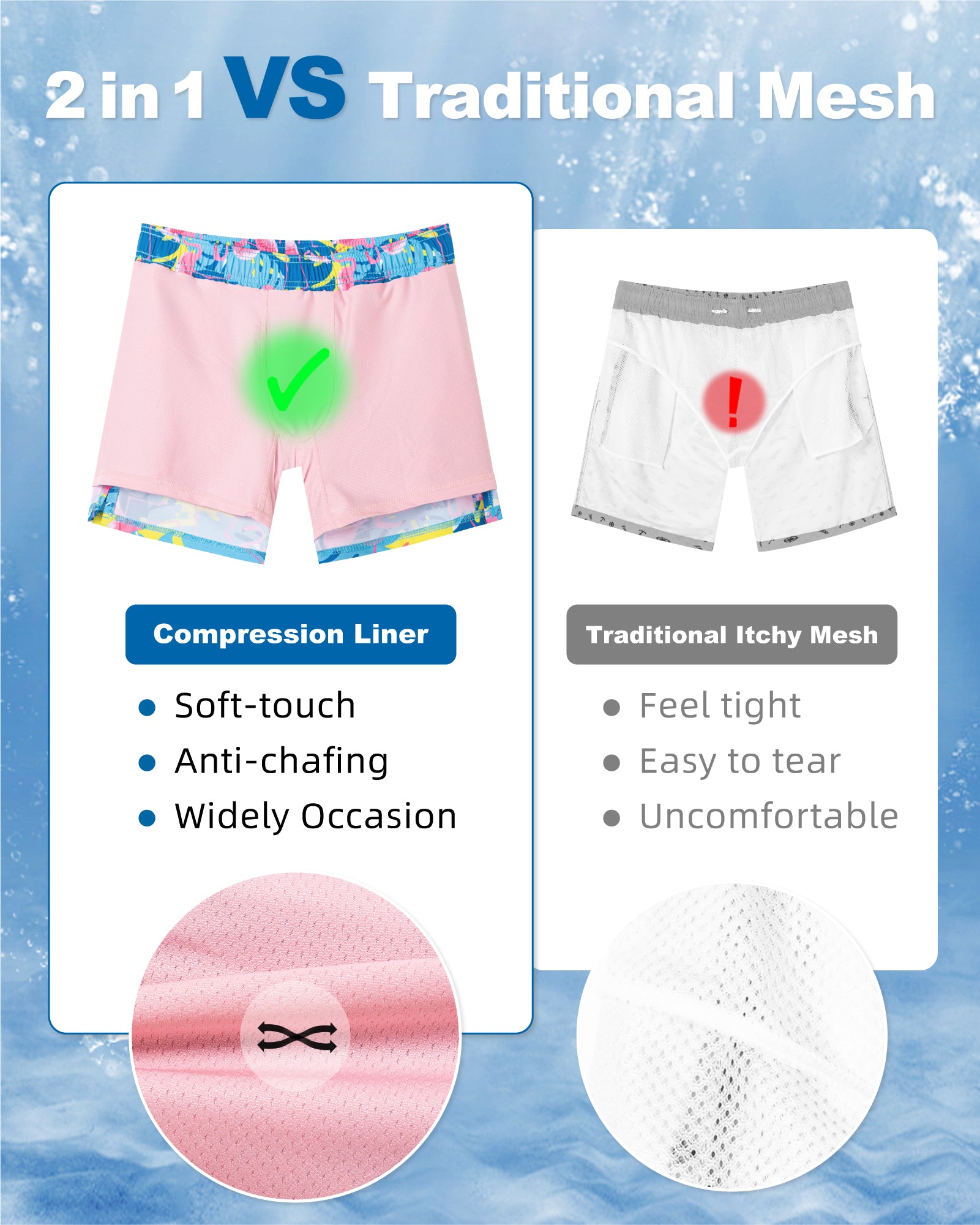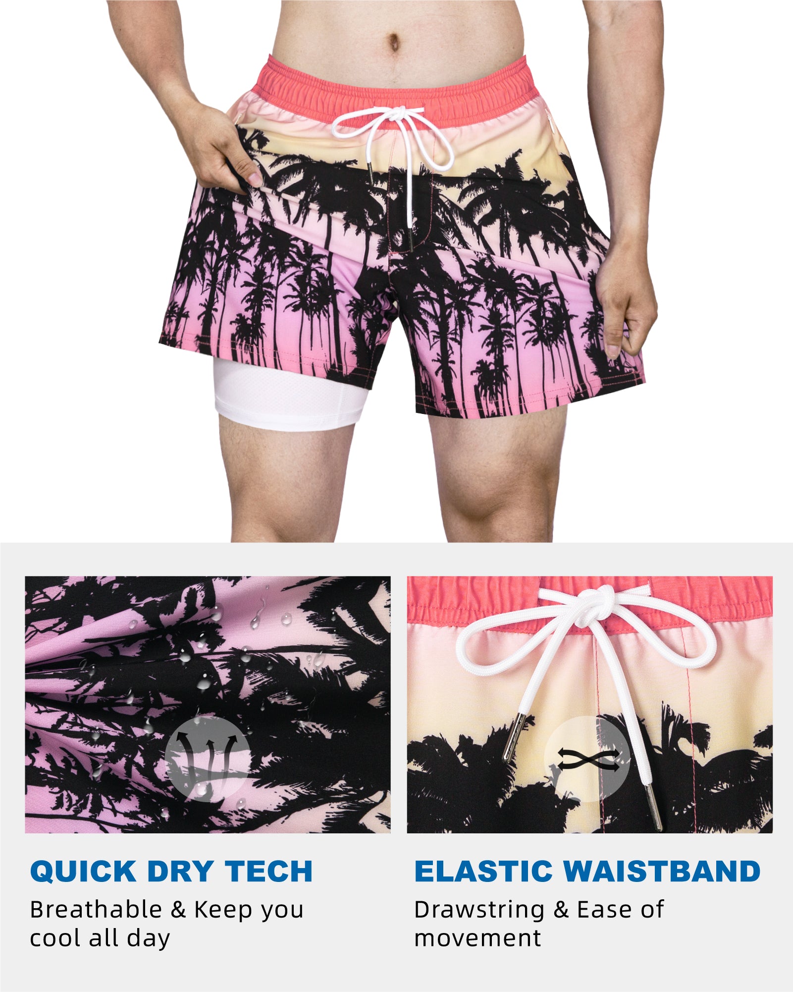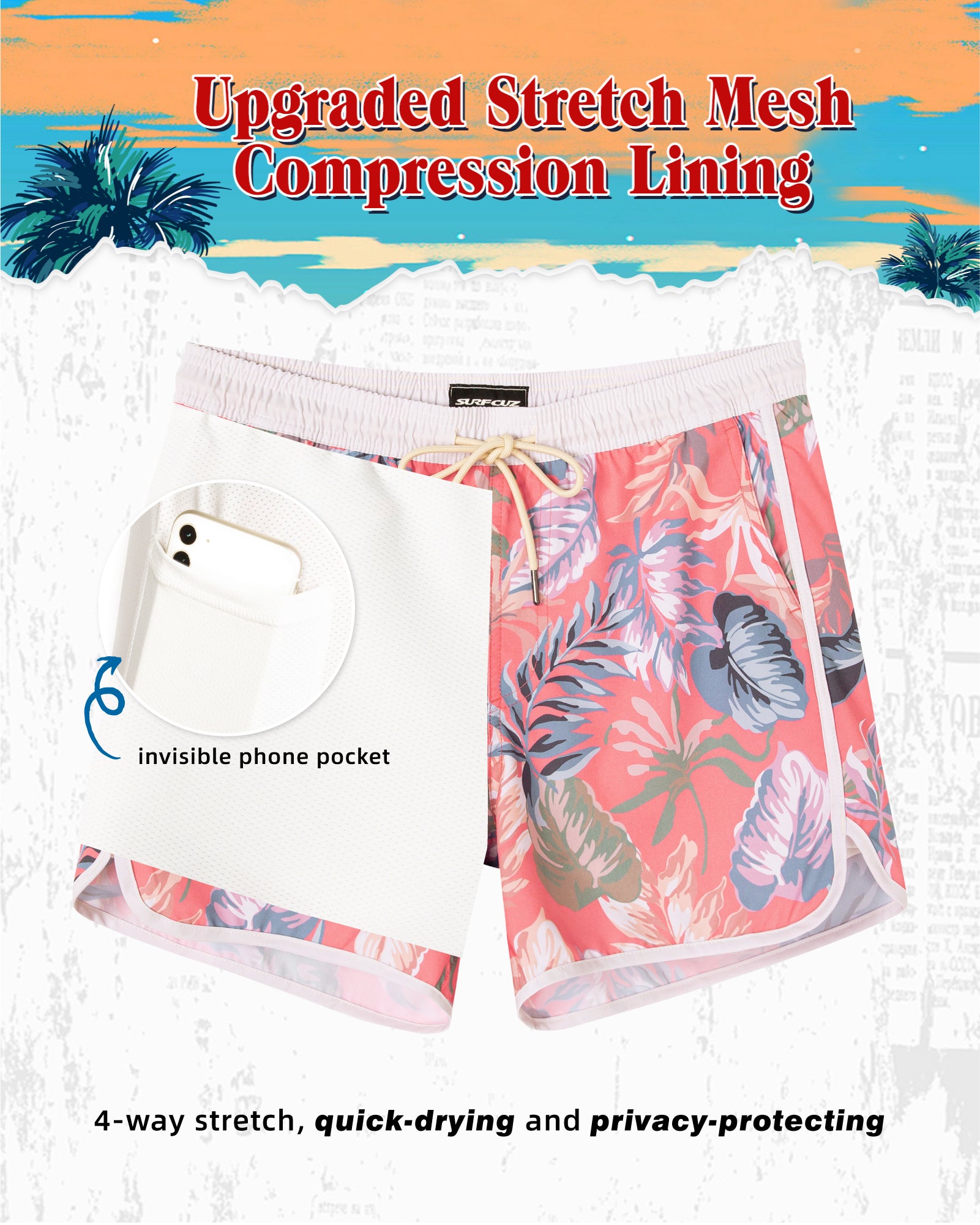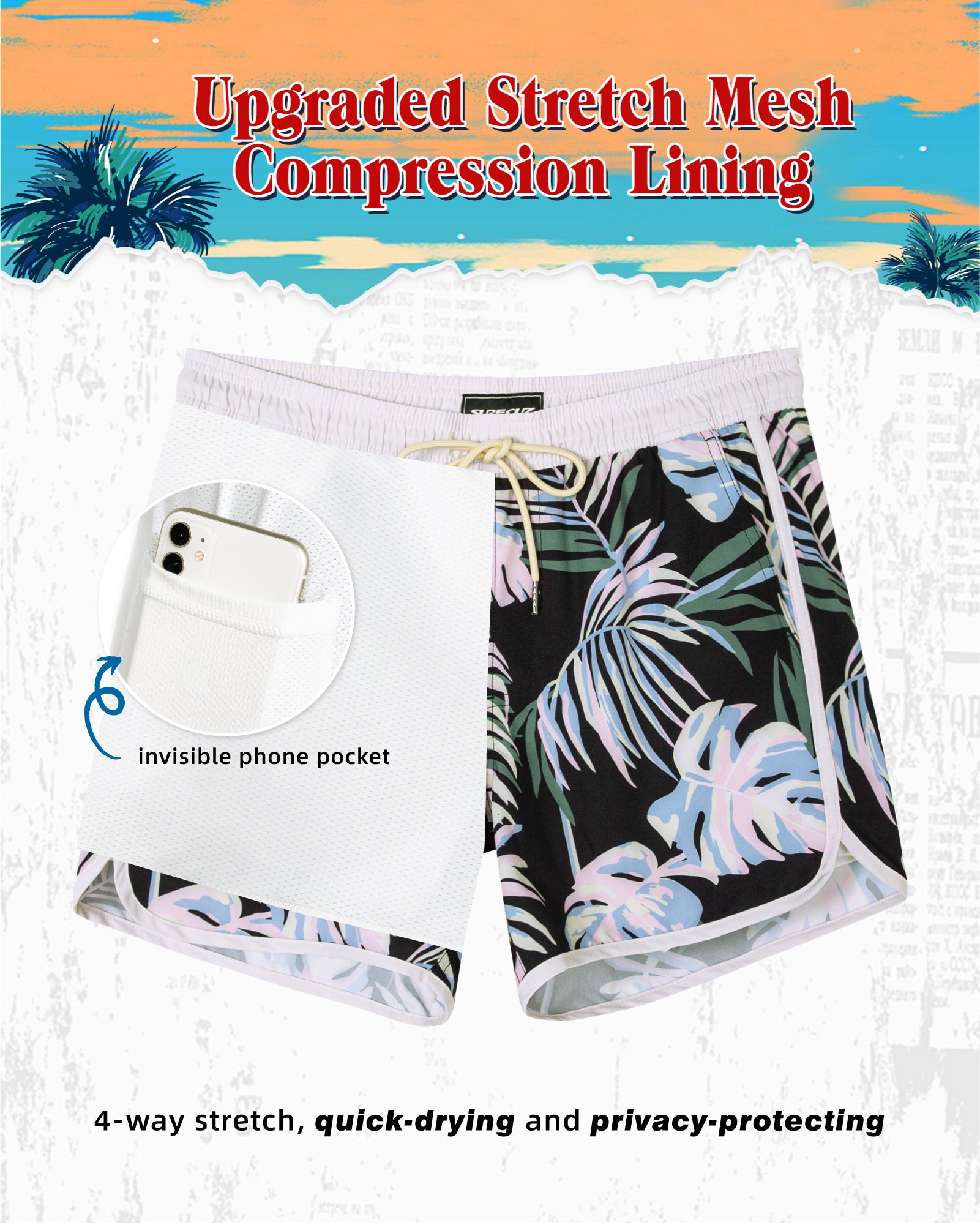 Surfcuz Men's 9" 2-in-1 Swim Trunks – Stretch Lining, Quick Dry