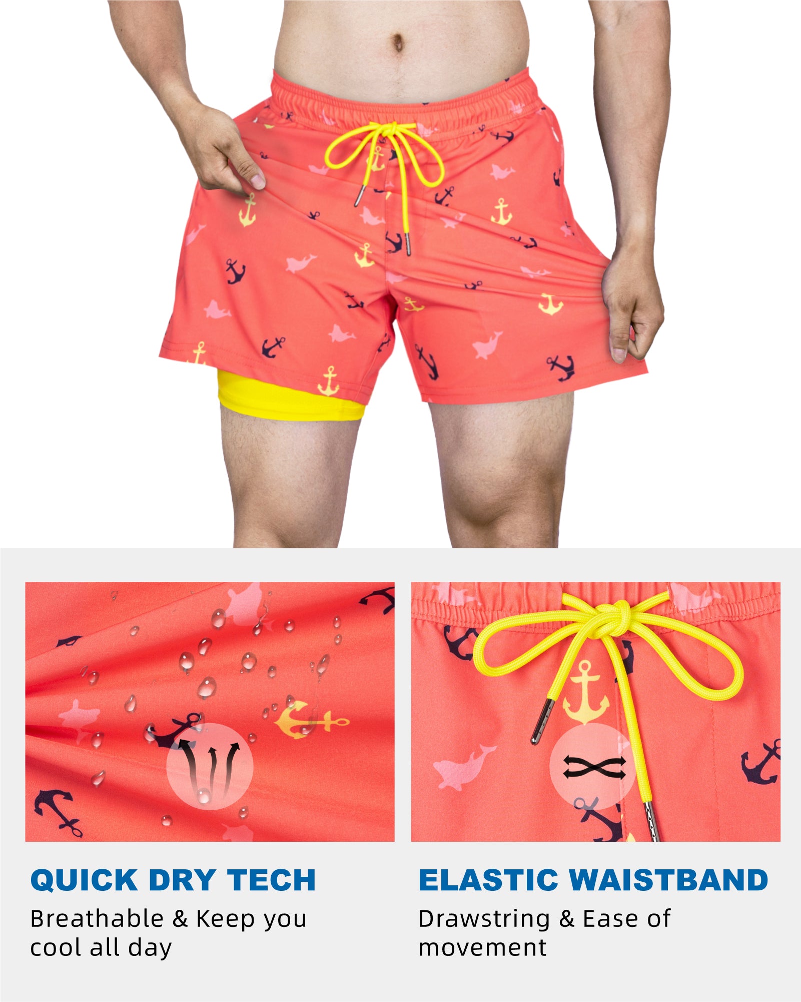 Men's Quick-Dry 5.5 Inch Swim Trunks With Stretch Lining