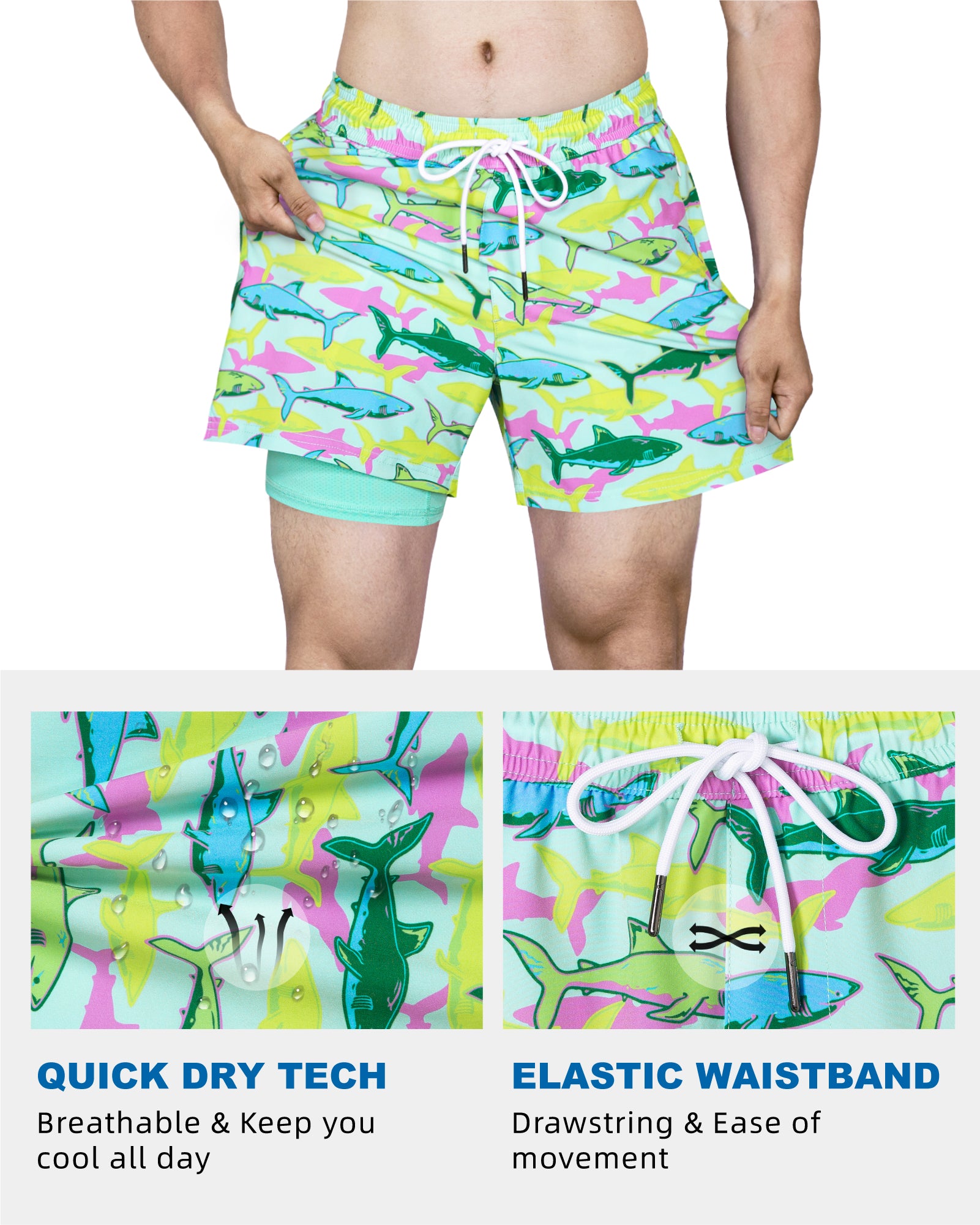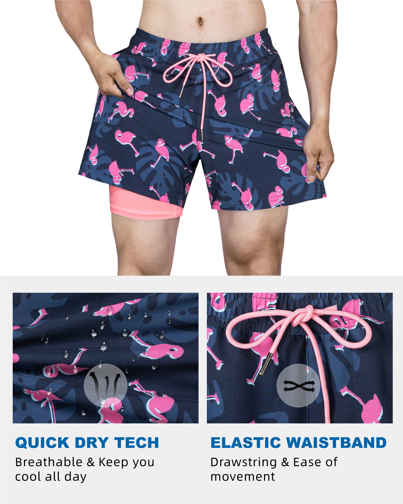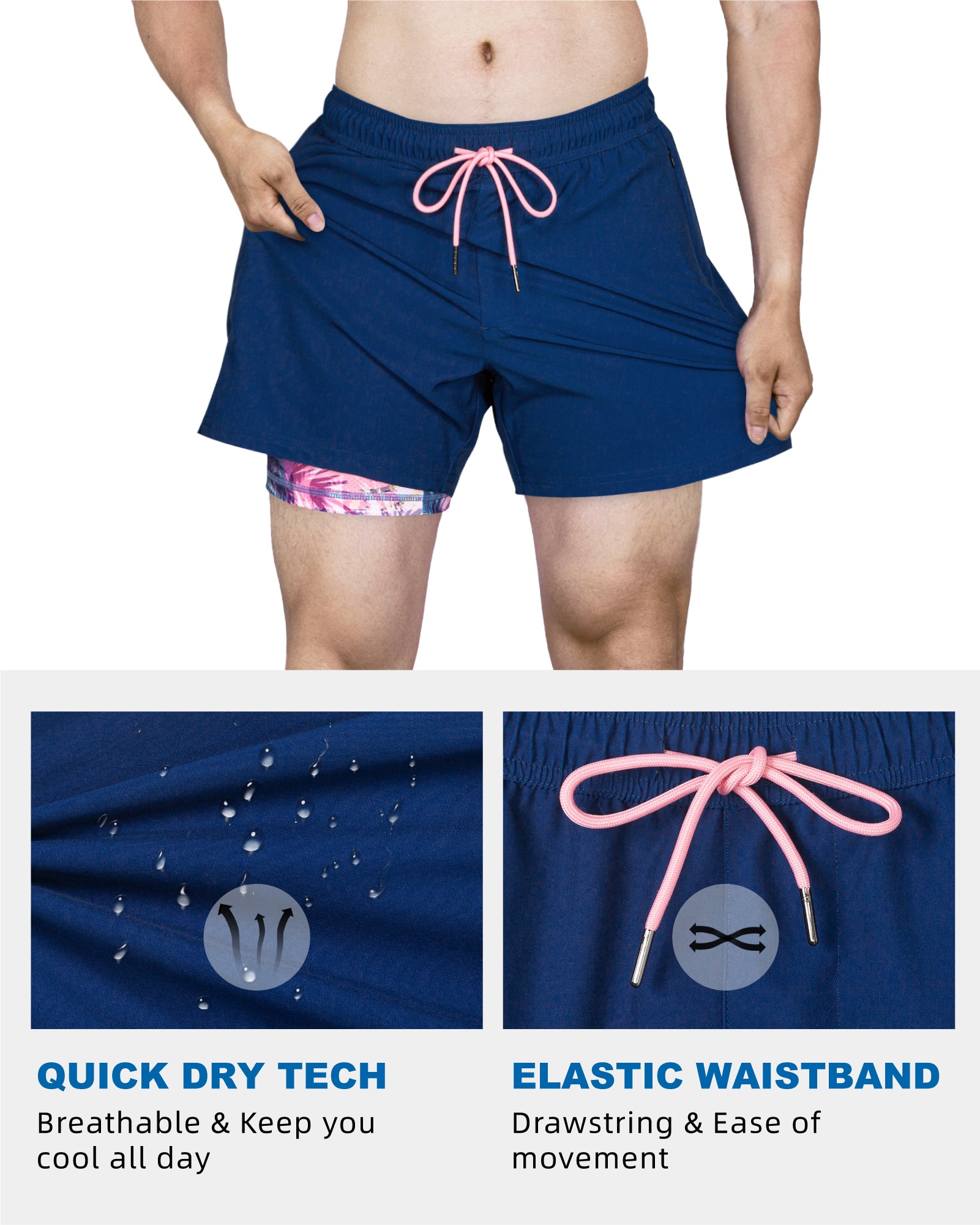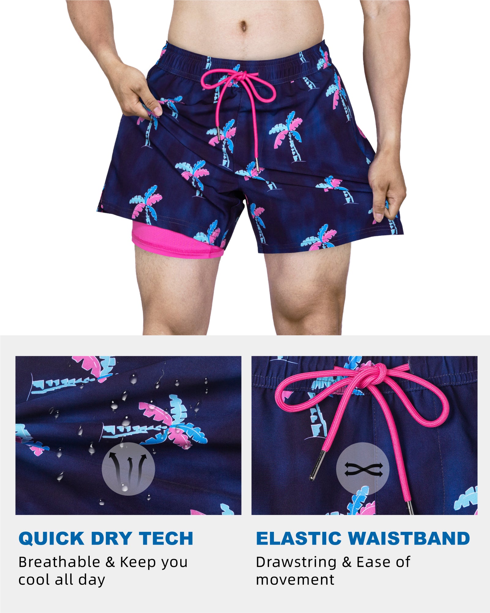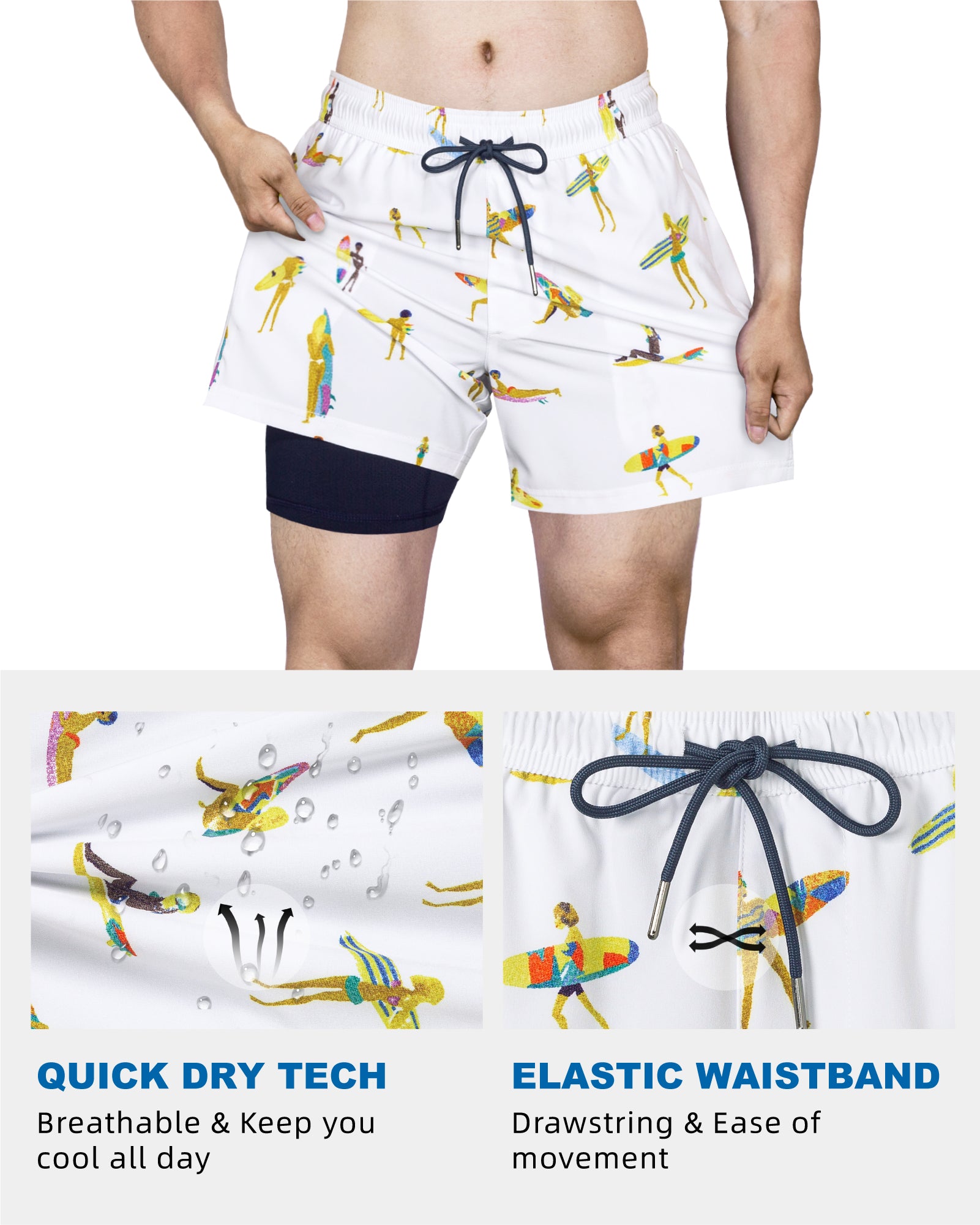 Men's 5 Inch Quick-Dry Board Shorts with Stretch Lining